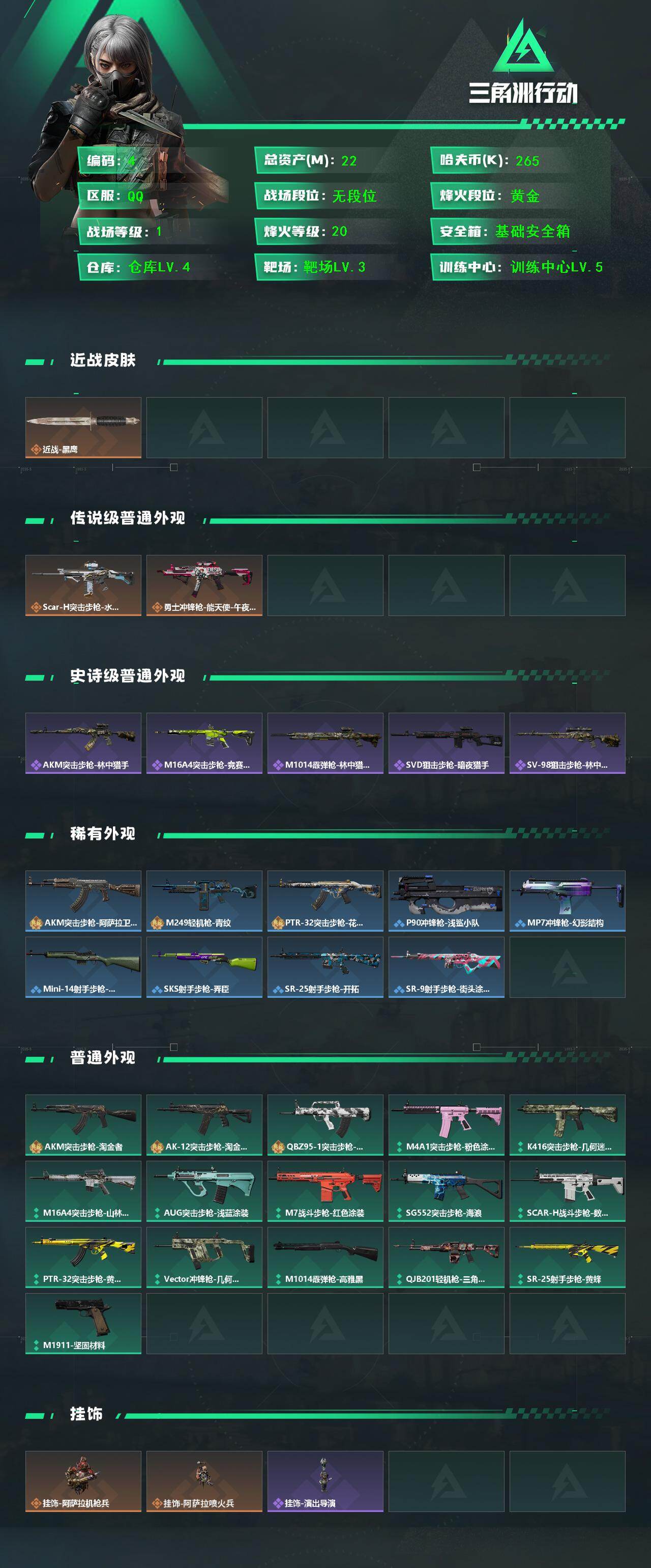 22m总资产-125k哈伏币-20烽火等级-铂金-2战场等级-无军衔