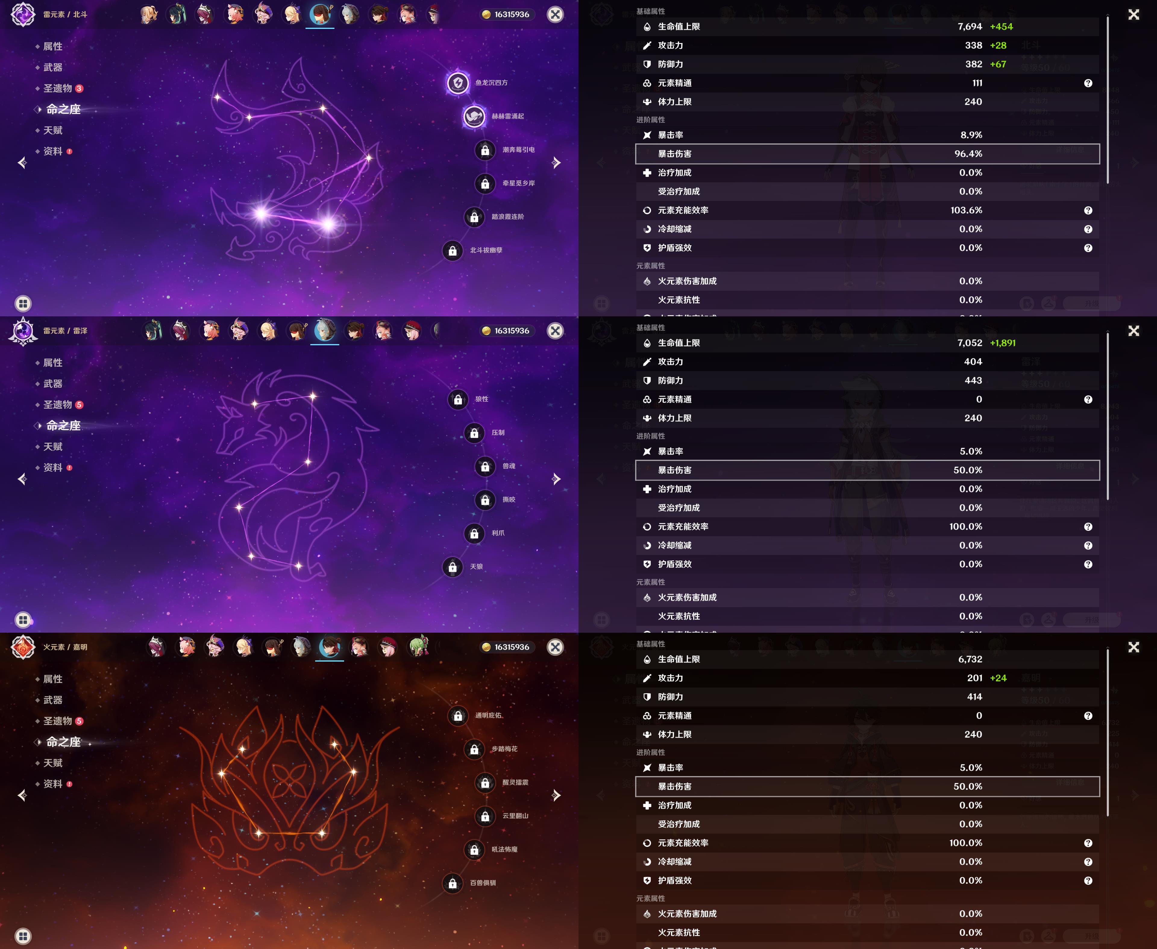 五星角色: