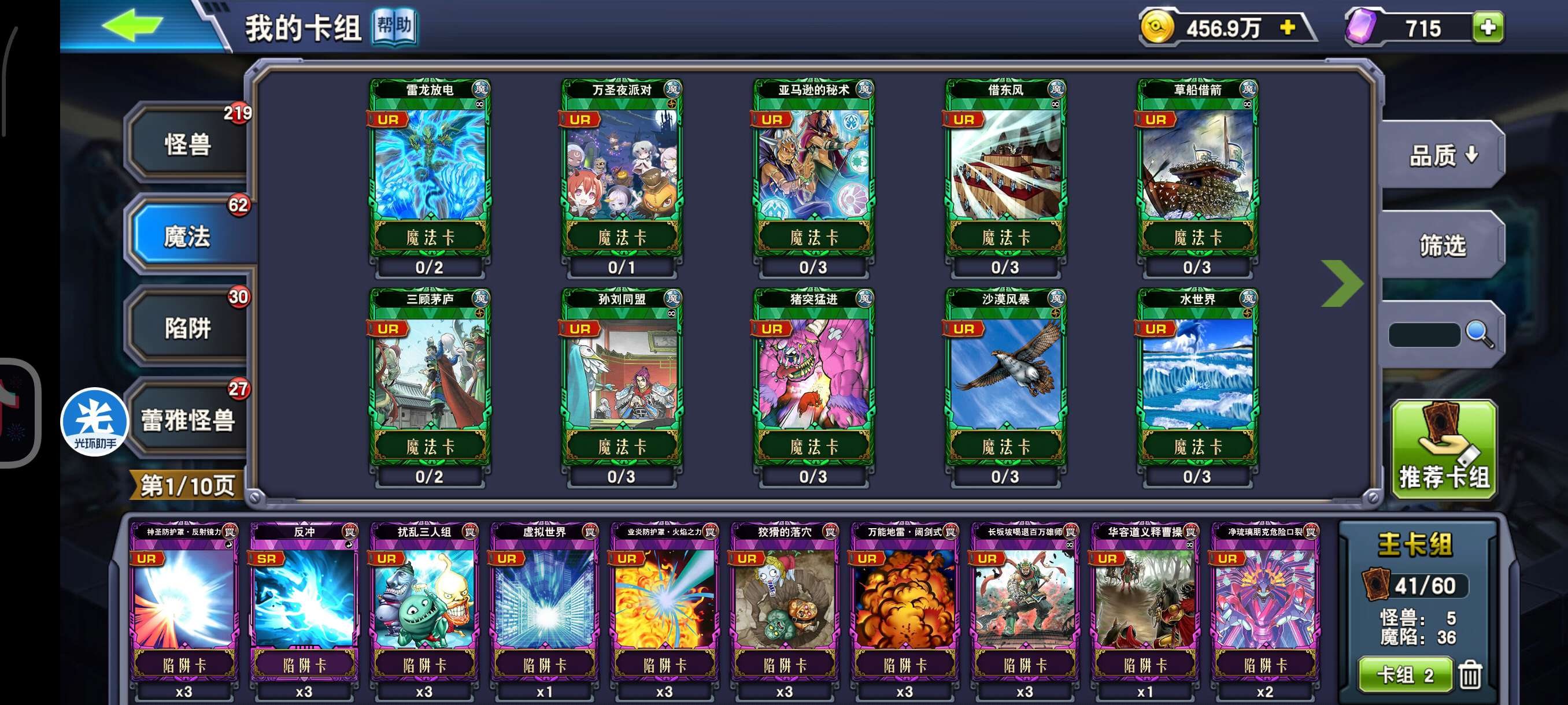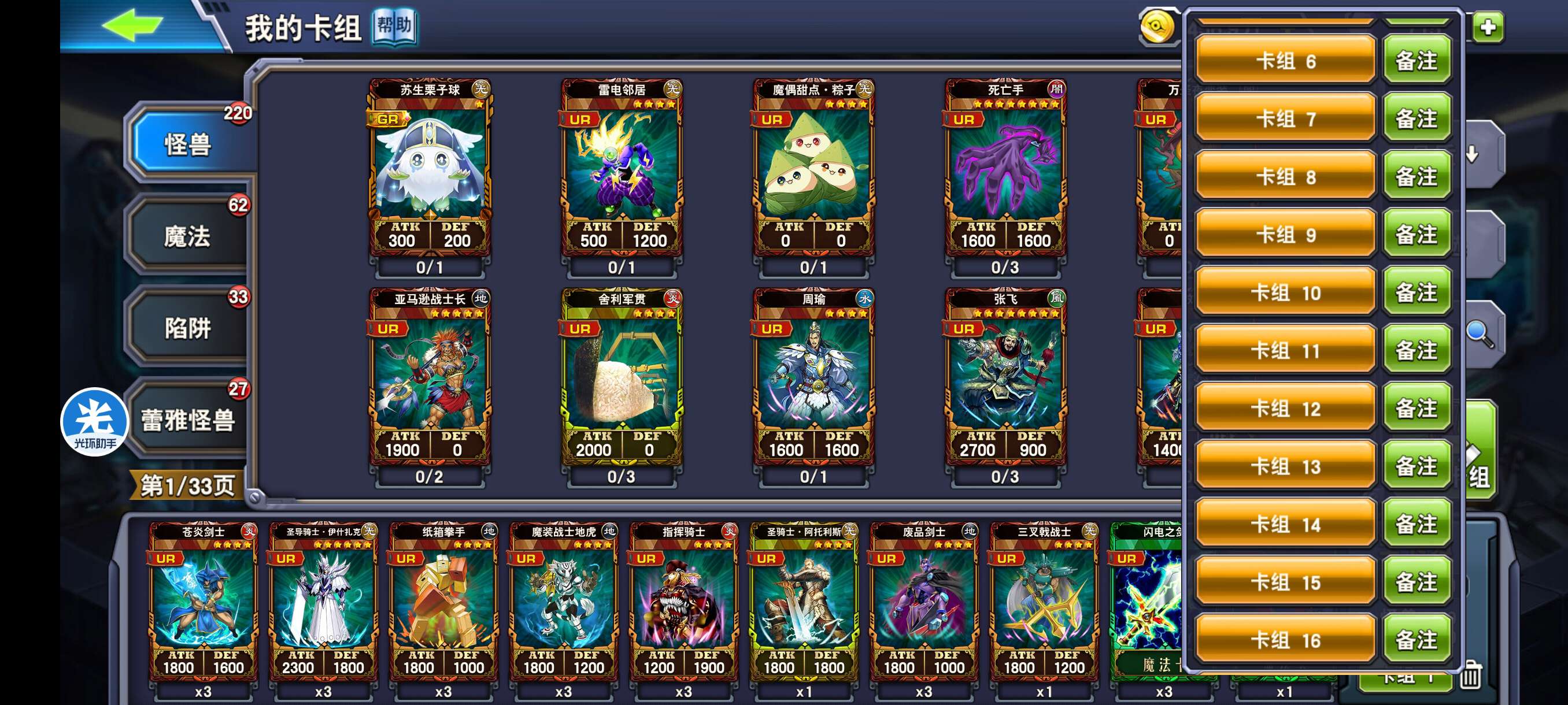 三国有孙权,奉先,华容道,满同盟,周瑜,两贾诩,两三顾茅庐,满草船等,大量三国卡牌