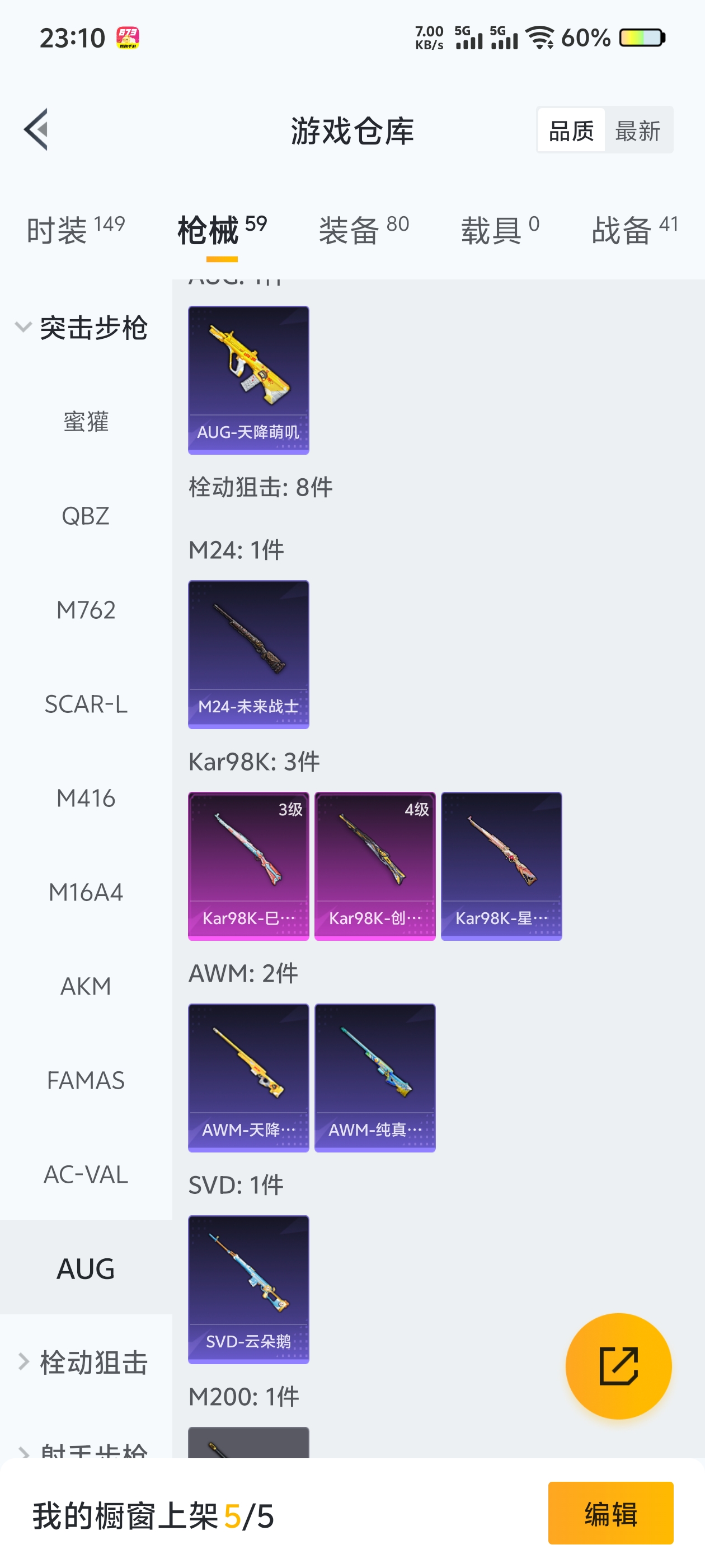 31m,两把刀,一个衣服,传说50星,有些许枪皮,连体和平号,二代三个螳螂都有,还有一些升级枪