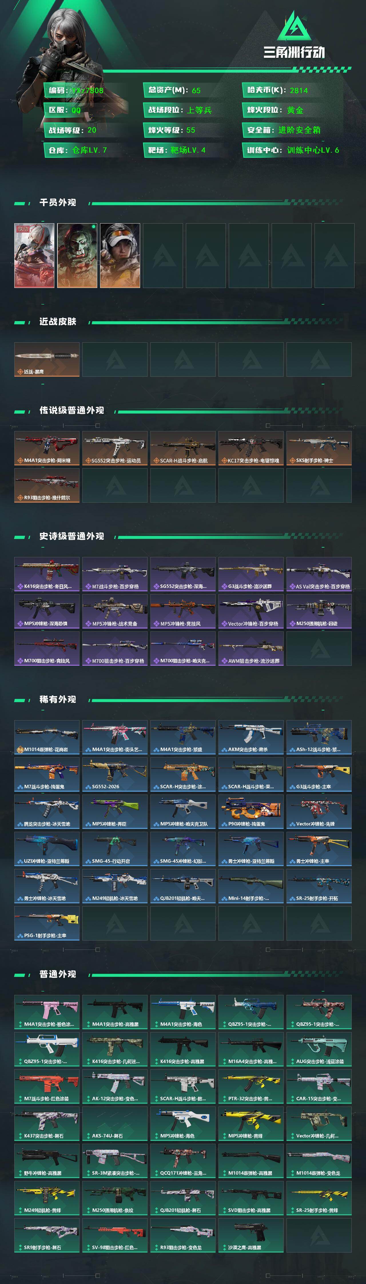 【裸维什戴尔号,65M资产,新手入坑首选】【Q区三端互通】【可二次】YXz7808-特勤处:仓库7级/靶场4级/训练中心6级-总资产65m-哈夫币281w-烽火等级:55级