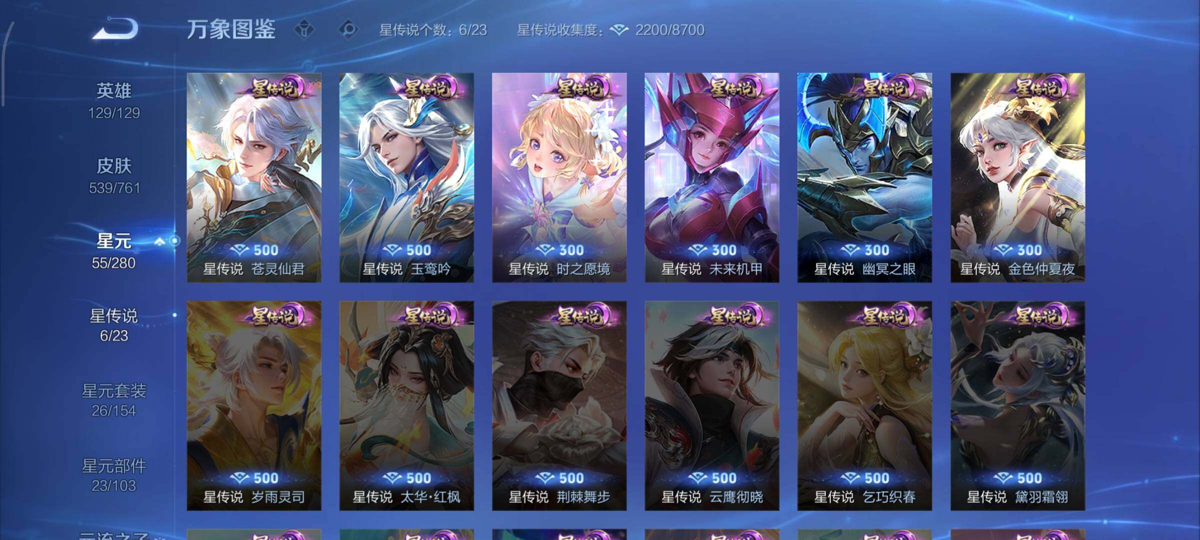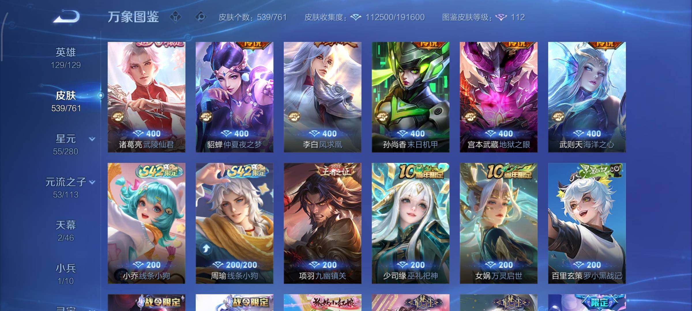 【极品女号贵族v10·1.2w金标小乔·灿若星河天幕·小兵狐妖小红娘·8典藏·8无双·2珍品·73传说·6星传说·紫瑶·玉鸾吟·苍灵仙君·全皮小乔·全皮乔·全皮伽罗·全皮艾琳·全皮娜可露露·全皮朵莉亚·全皮少司缘·21个年限·满龙年限定·拾光映像·花合斗·离恨烟·时之魔女·青丘九尾·甄姬雪境奇遇·金乌负日·甄姬至美化雀舞·大乔时之奇旅·小乔山海琳琅生·时之祈愿·可