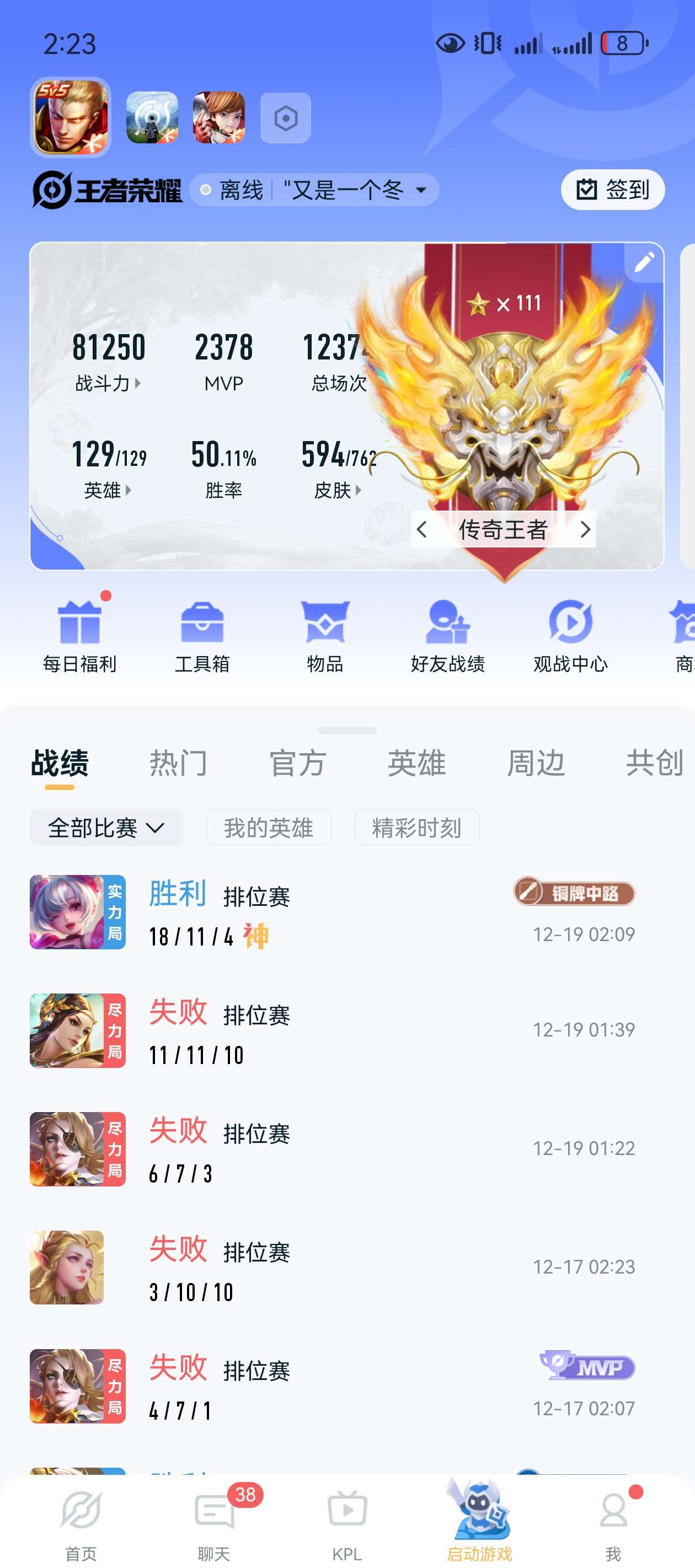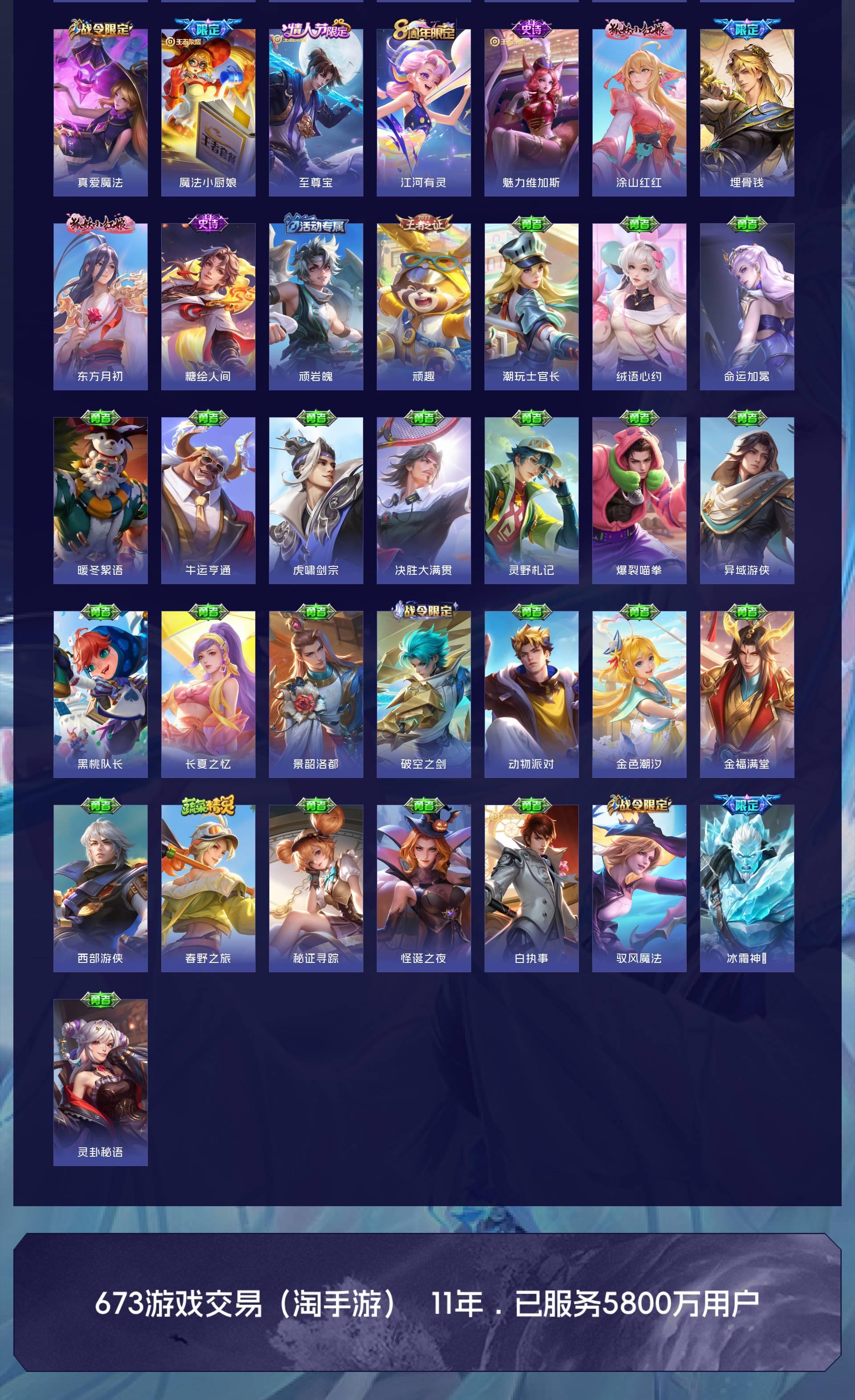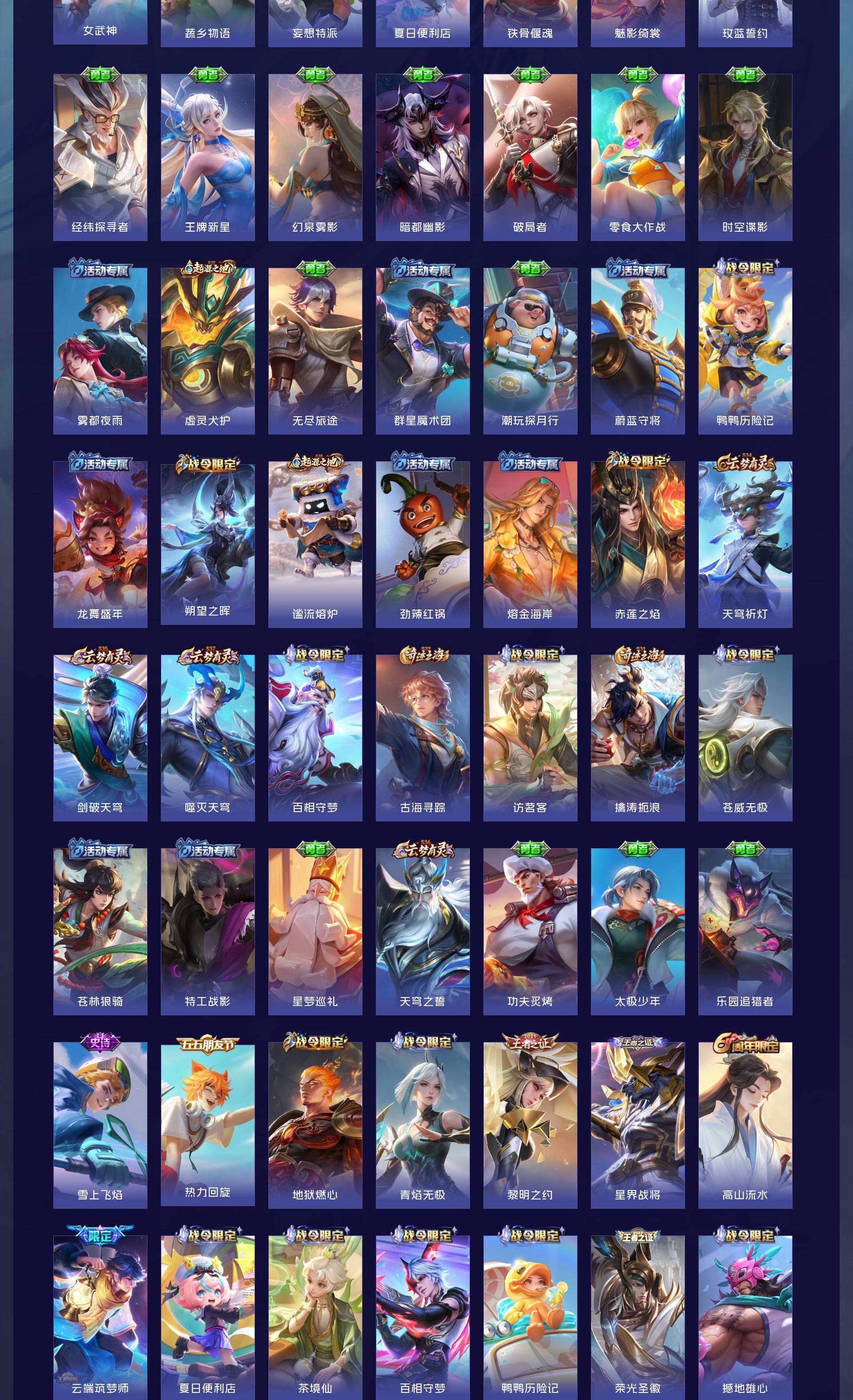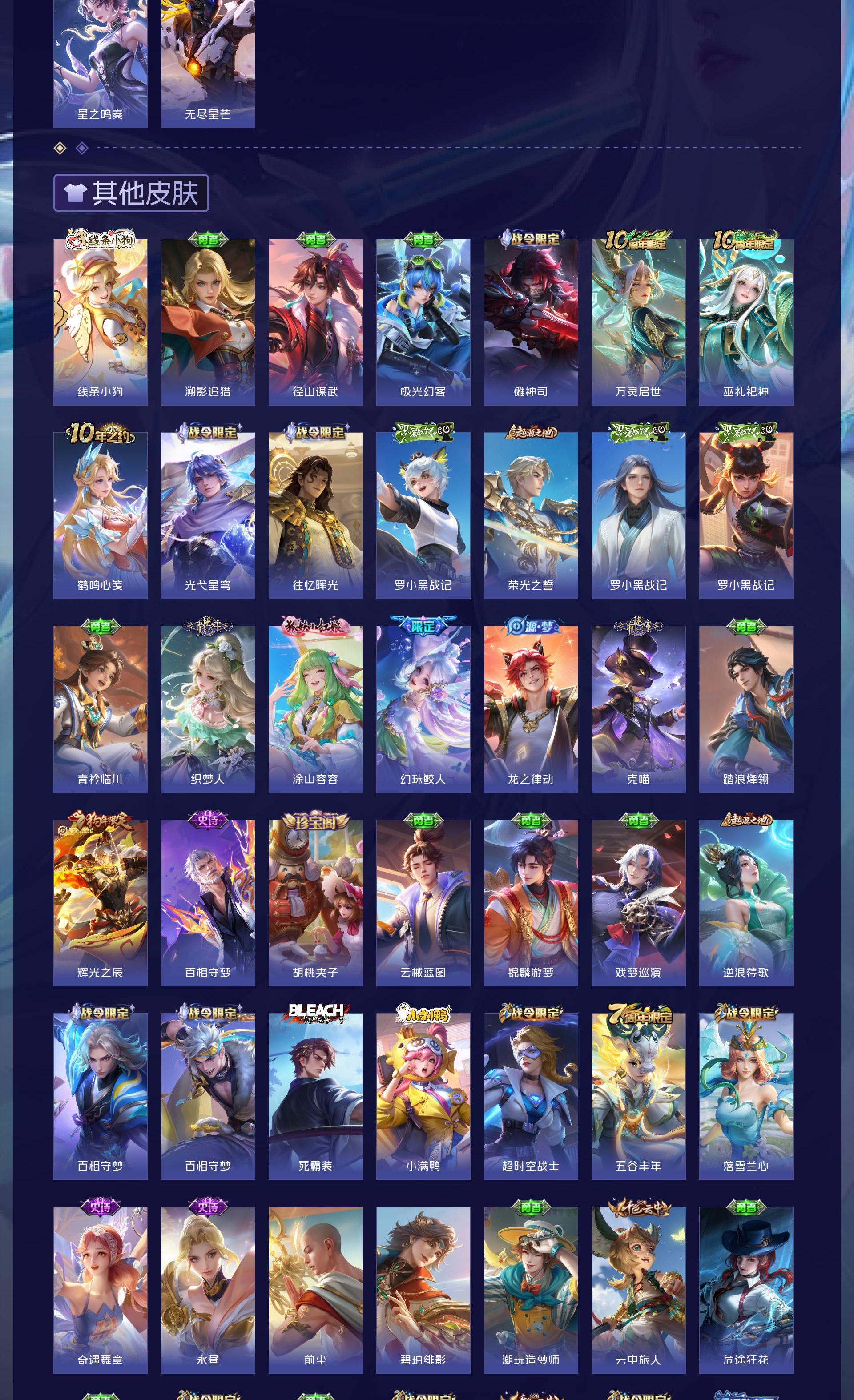 无双贵族 皮肤594 英雄129 传奇王者 荣耀典藏7 珍品无双1 无双皮肤12 珍品传说9 传说87 其他皮肤484