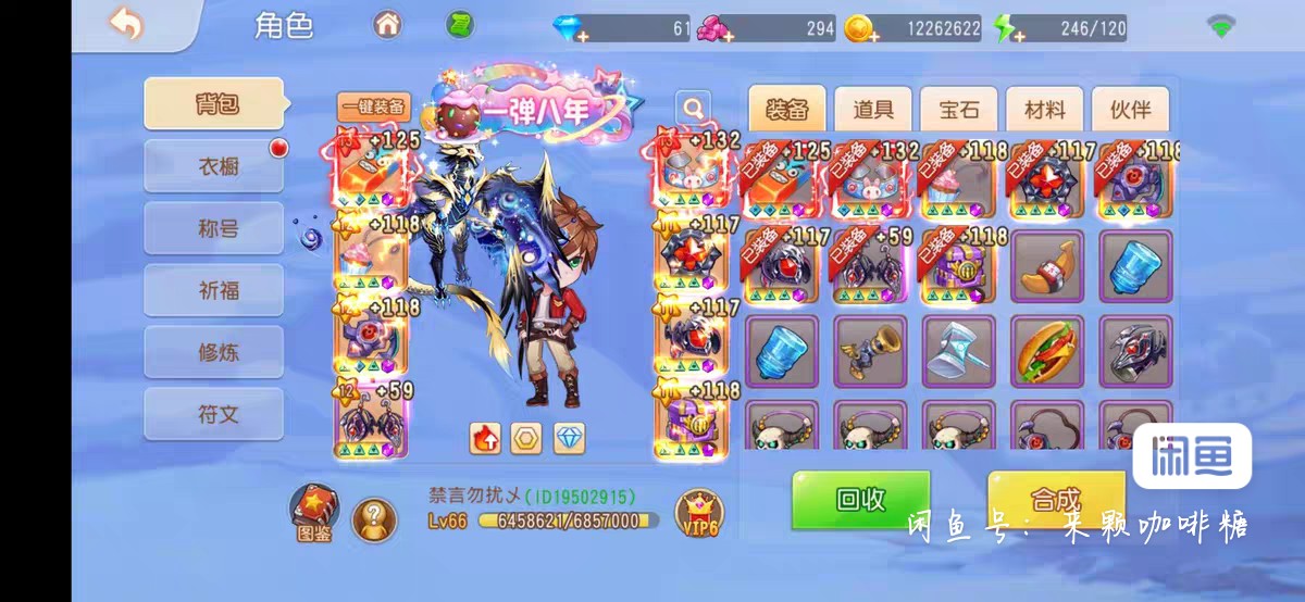 有橡皮,龙魔套差一个,宠物装备好,差30到v7