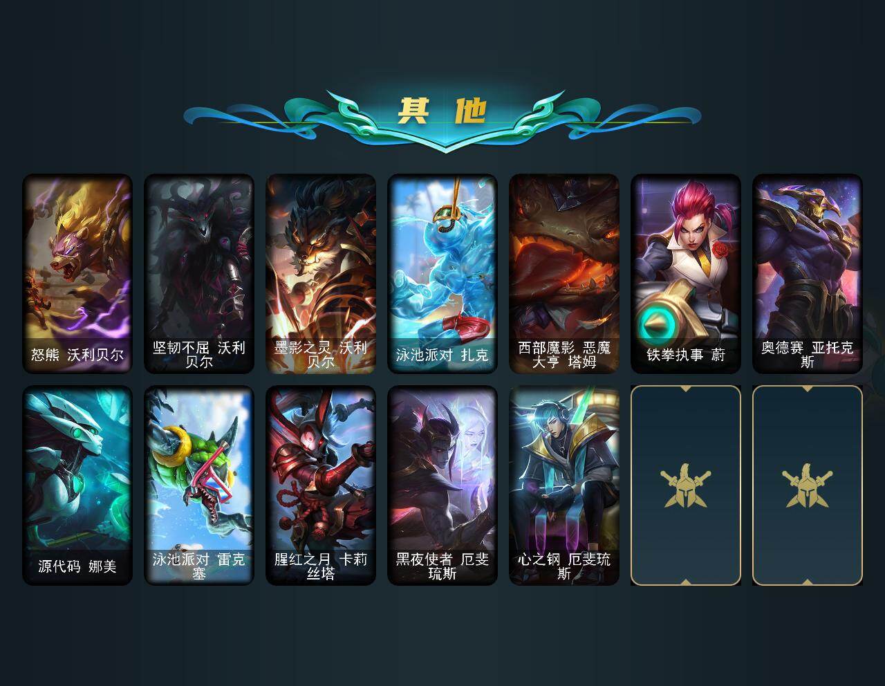 116英雄/85皮肤/2神话/11限定/2臻彩/2炫彩/11传说/20史诗/未定级/