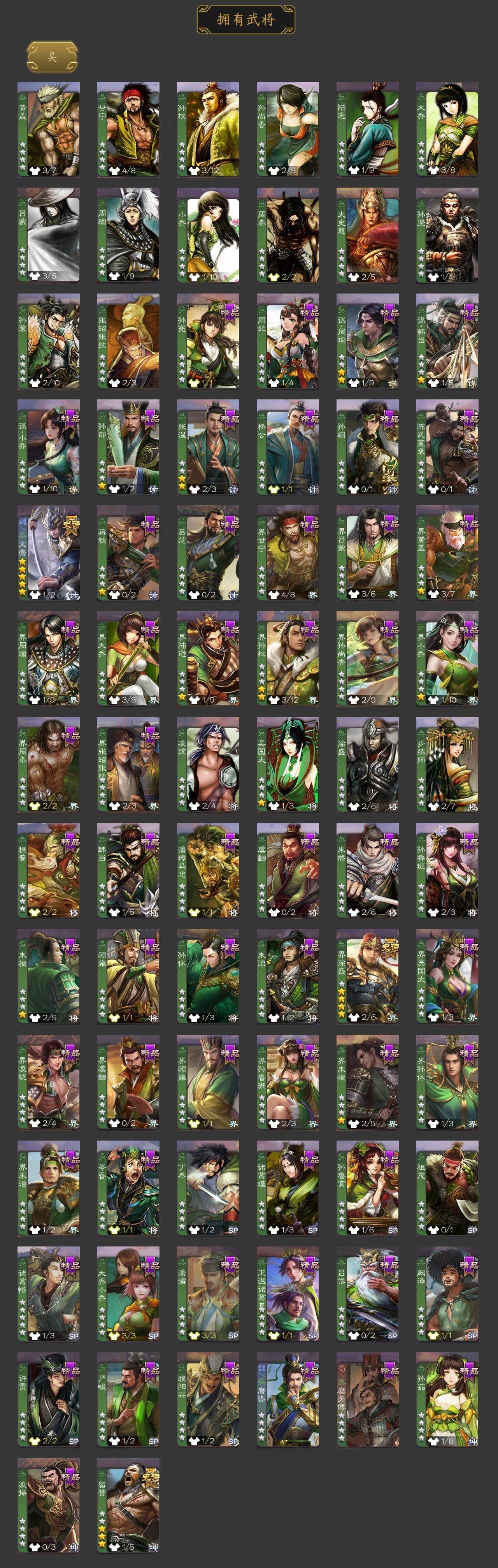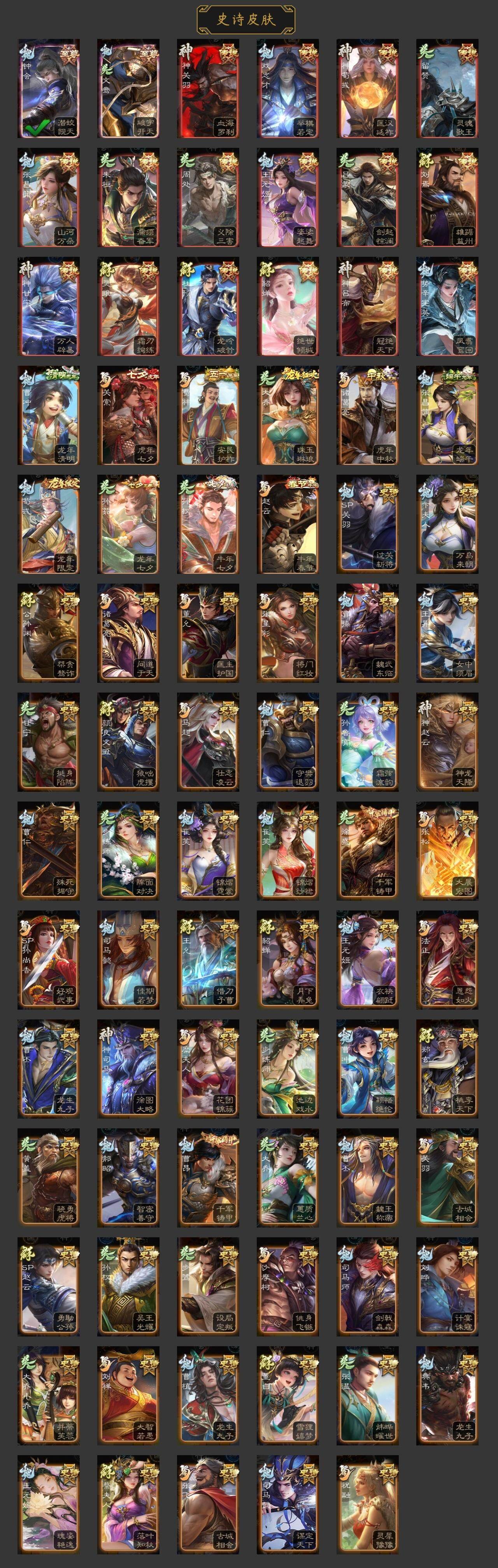 神吕布,神赵云,神司马懿,神甘宁,神荀彧,神鲁肃,曹髦,王元姬,王朗,界钟会,嵇康,曹纯,戏志才,谋曹丕,势辛宪英,程昱,关索,谋诸葛亮,马云騄,谋赵云,谯周,花鬘,董