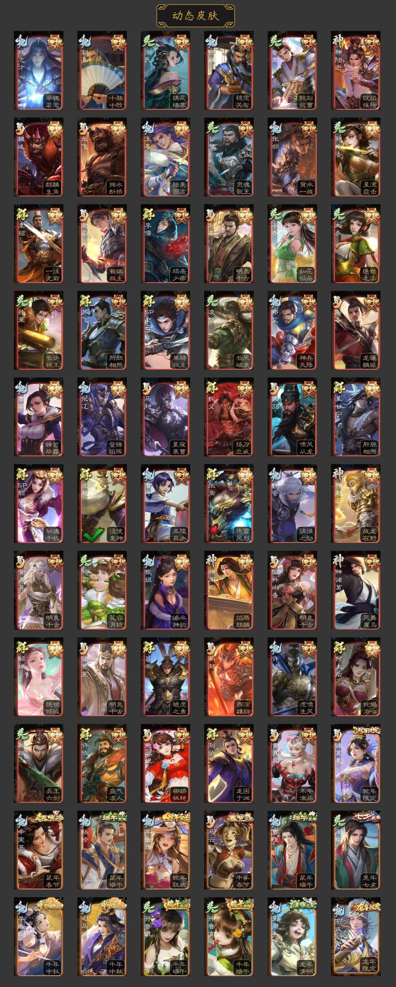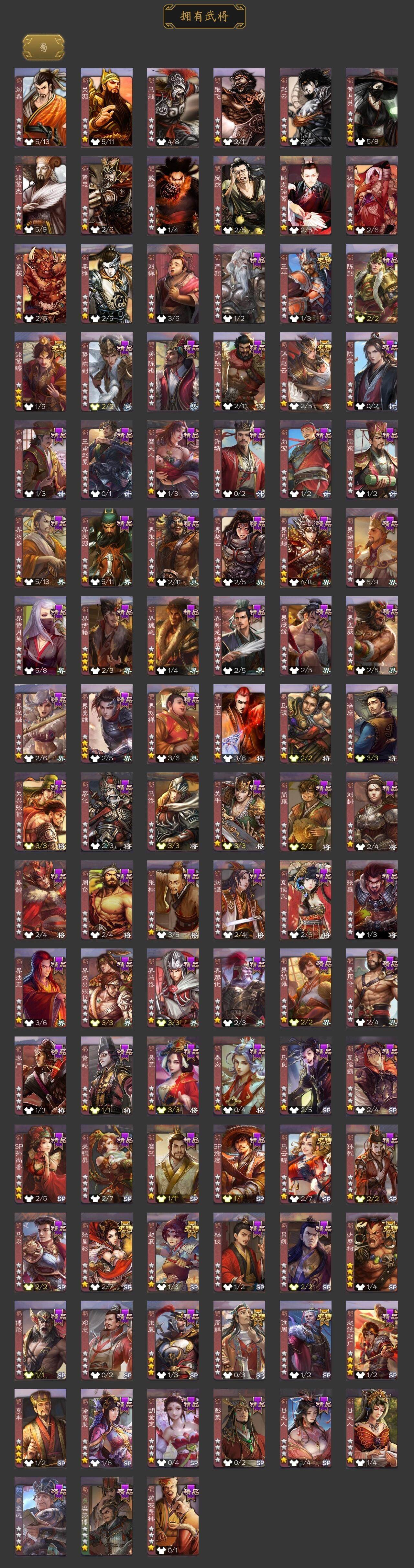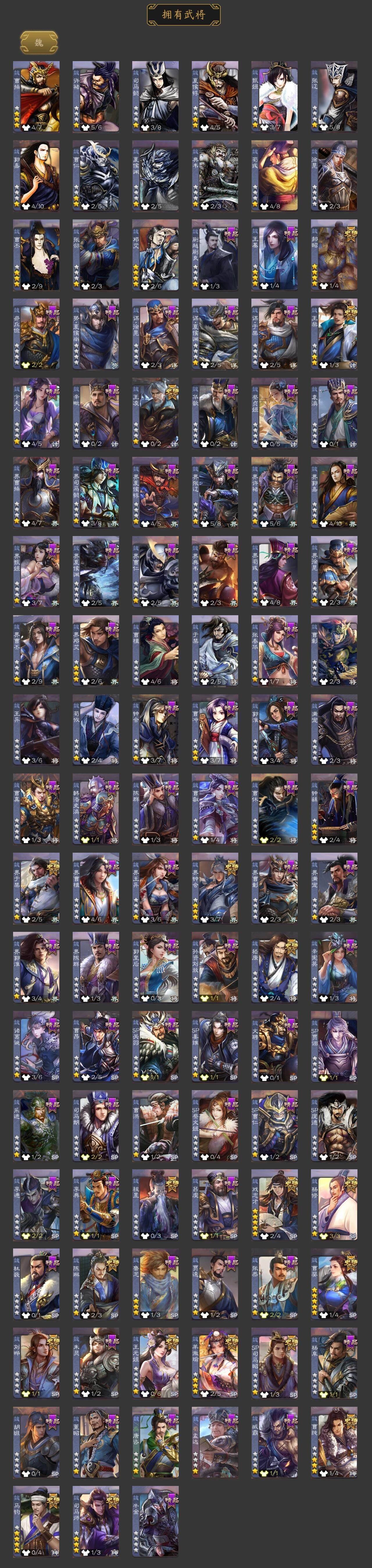 神曹操,神吕布,神赵云,神司马懿,神陆逊,神刘备,神甘宁,神张辽,神诸葛亮,SP司马昭,王粲,杨修,羊徽瑜,王元姬,王凌,司马师,马钧,界钟会,界于禁,嵇康,郝昭,陈琳,