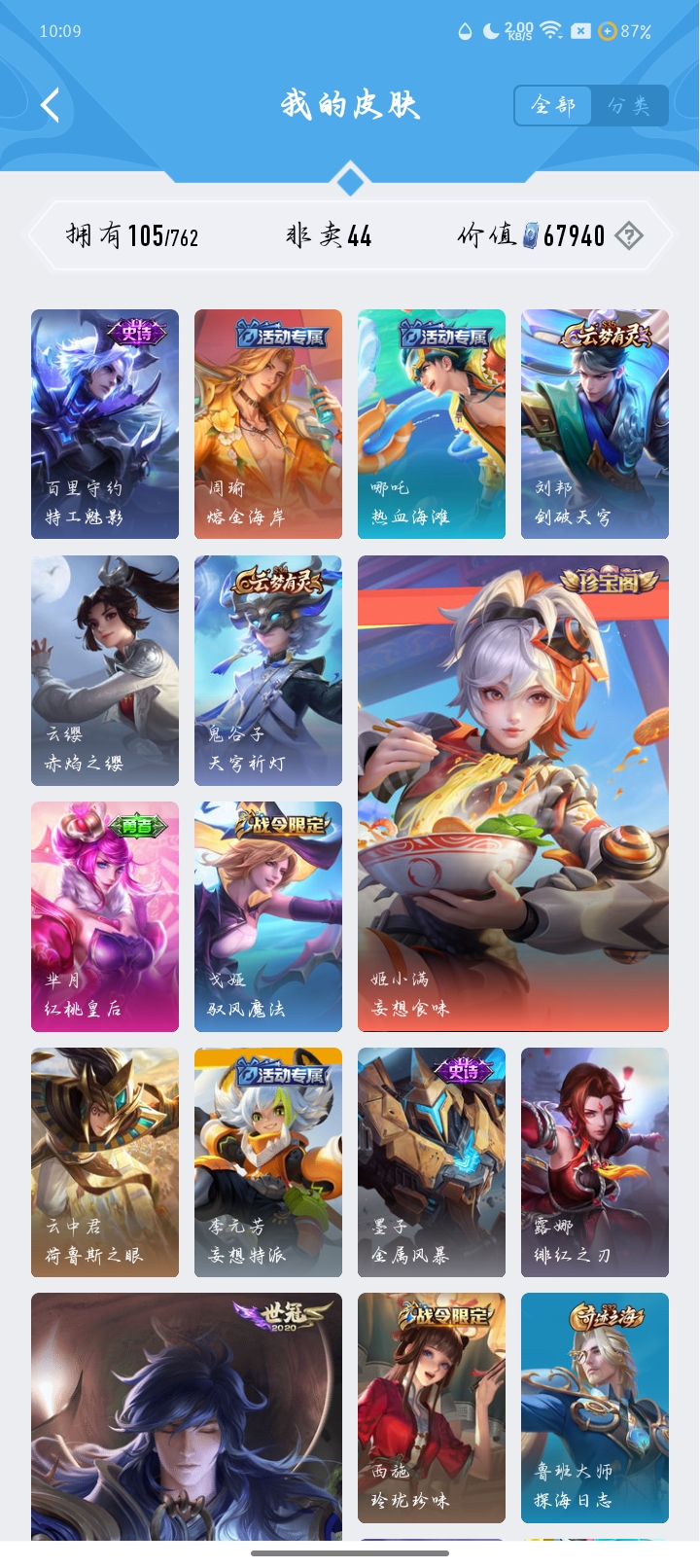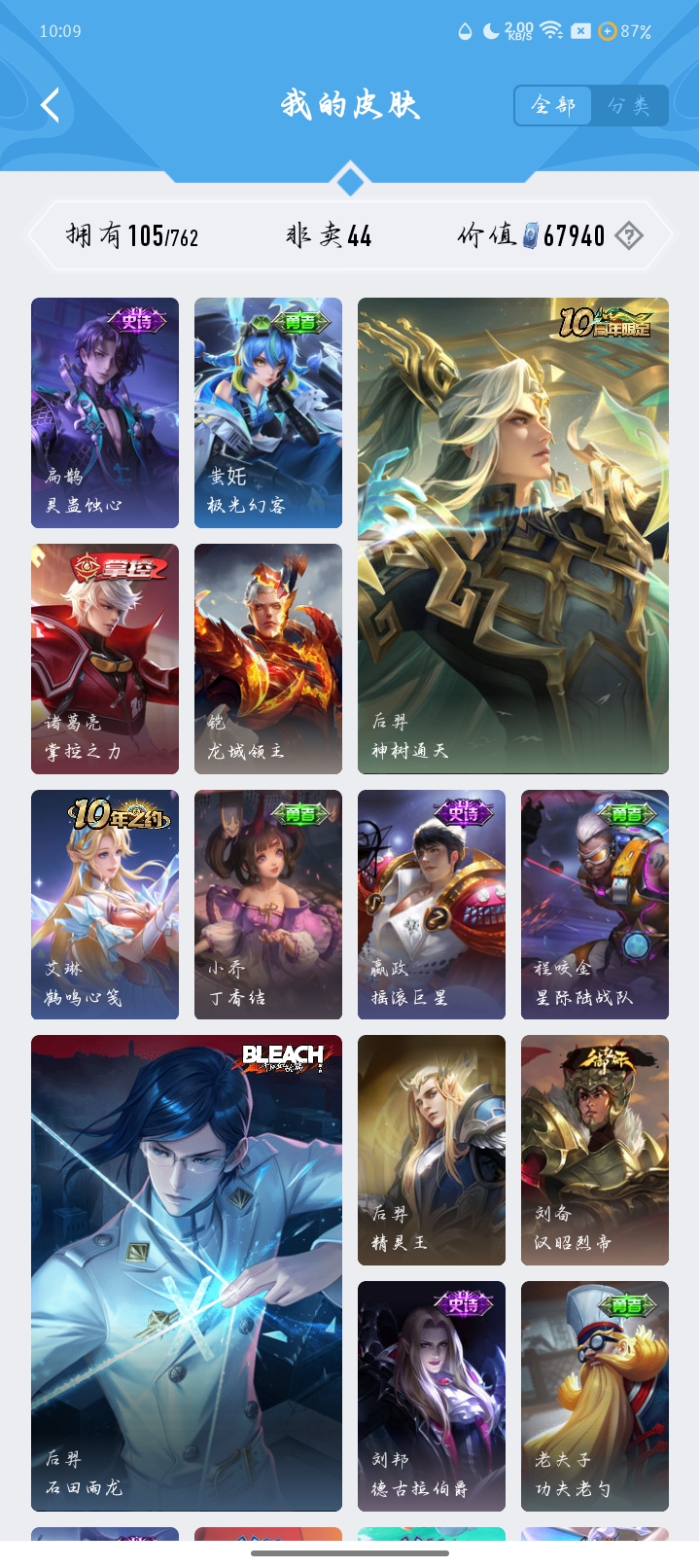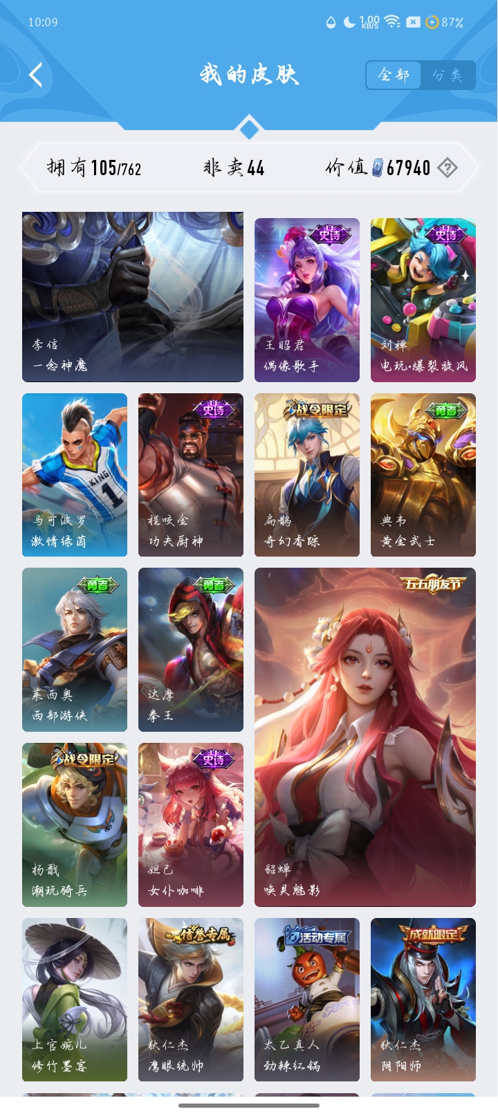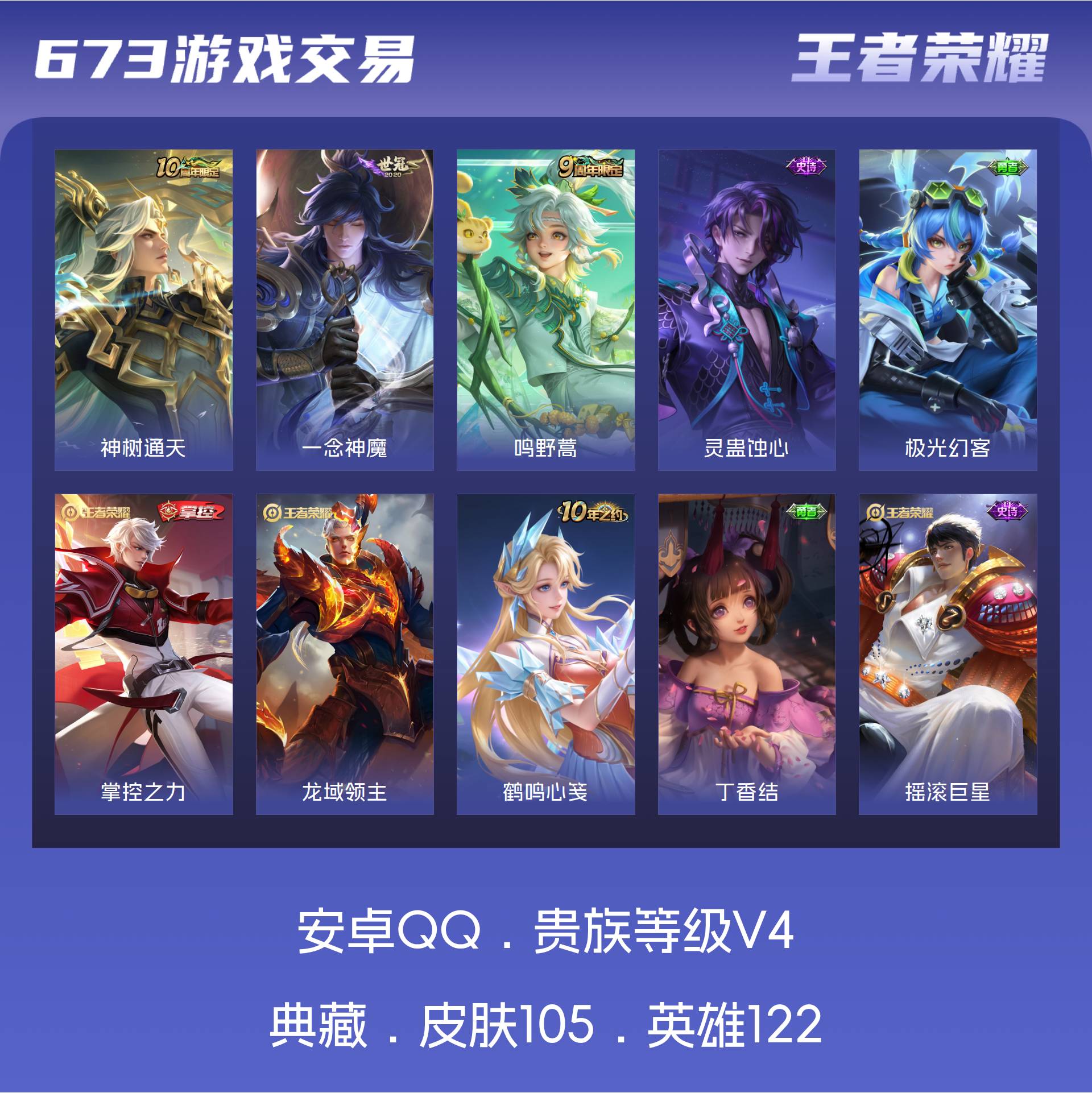 V4 皮肤105 英雄122 永恒钻石 传说3 其他皮肤108