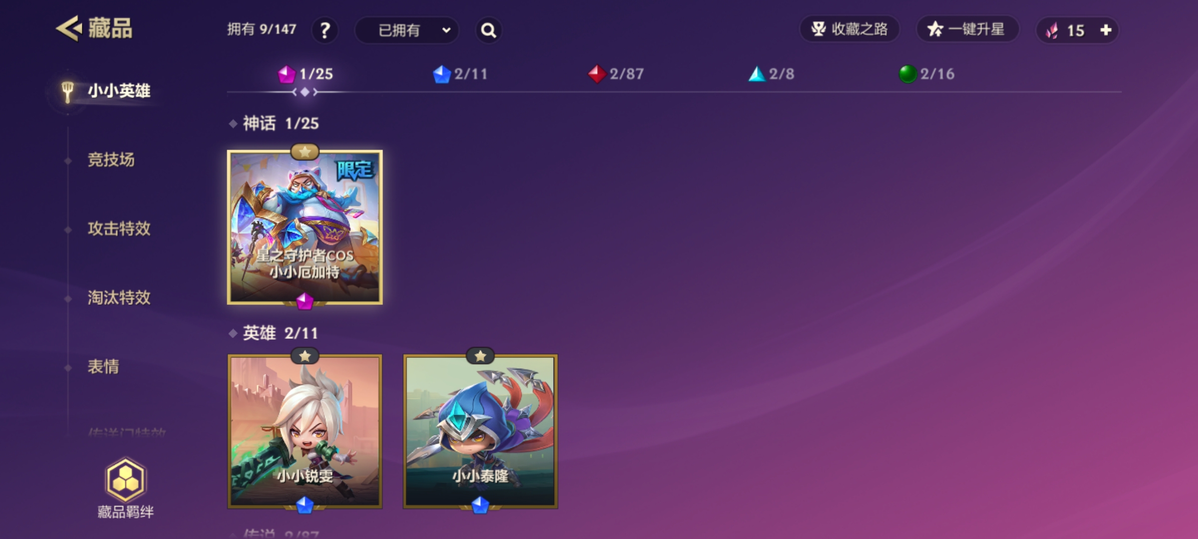 安卓Q-段位黄铜Ⅲ-等级30-VIP0-棋盘3-攻击特效7【1神话】星之守护者cos小小厄加特【2小小英雄】 小小锐雯 小小泰隆