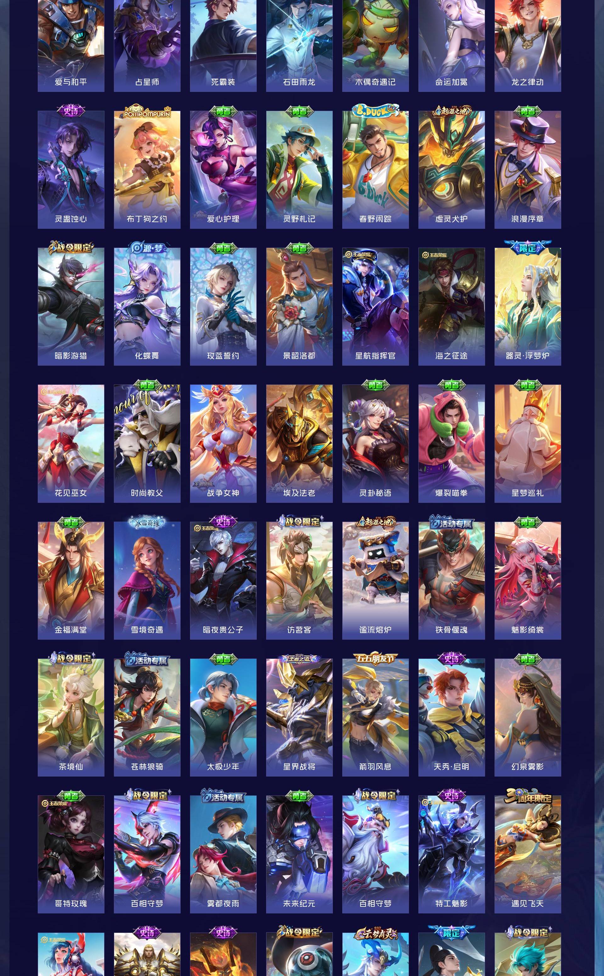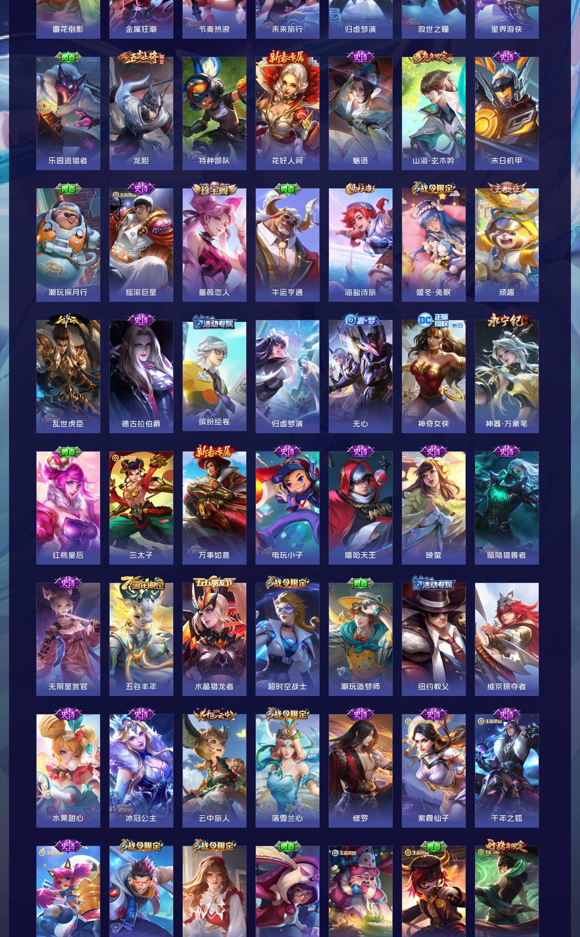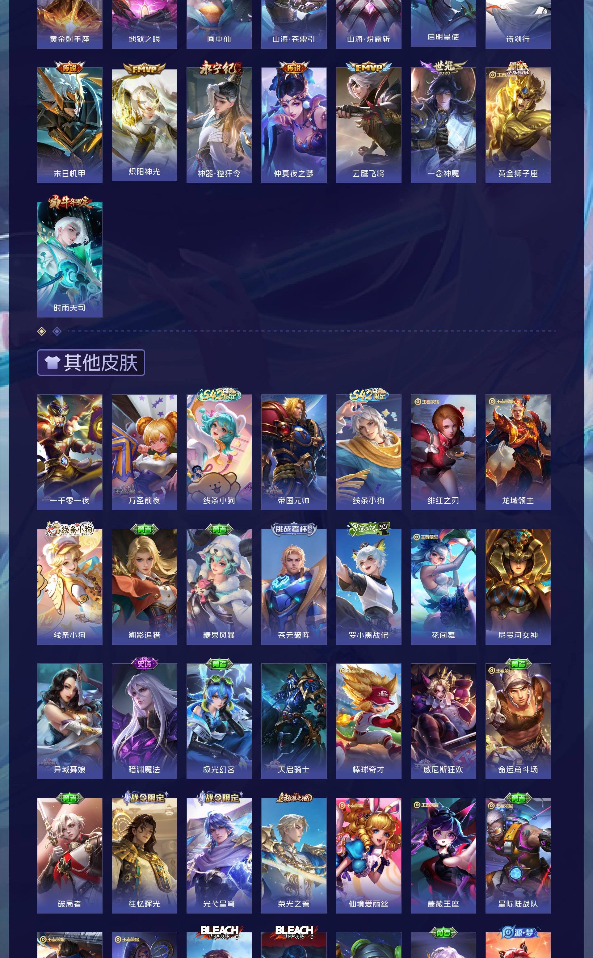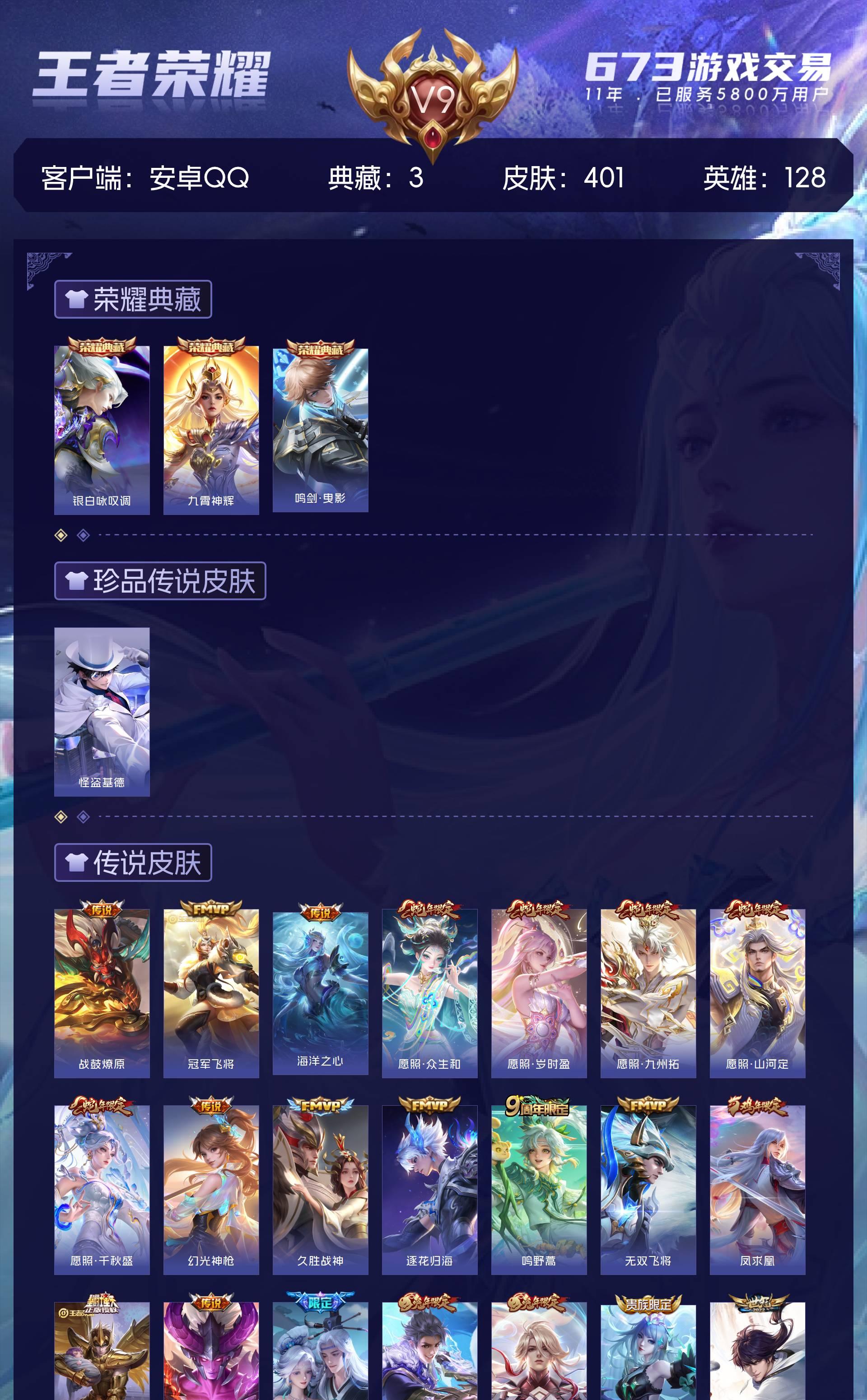 V9 皮肤401 英雄128 至尊星耀 荣耀典藏3 珍品传说1 传说30 其他皮肤370