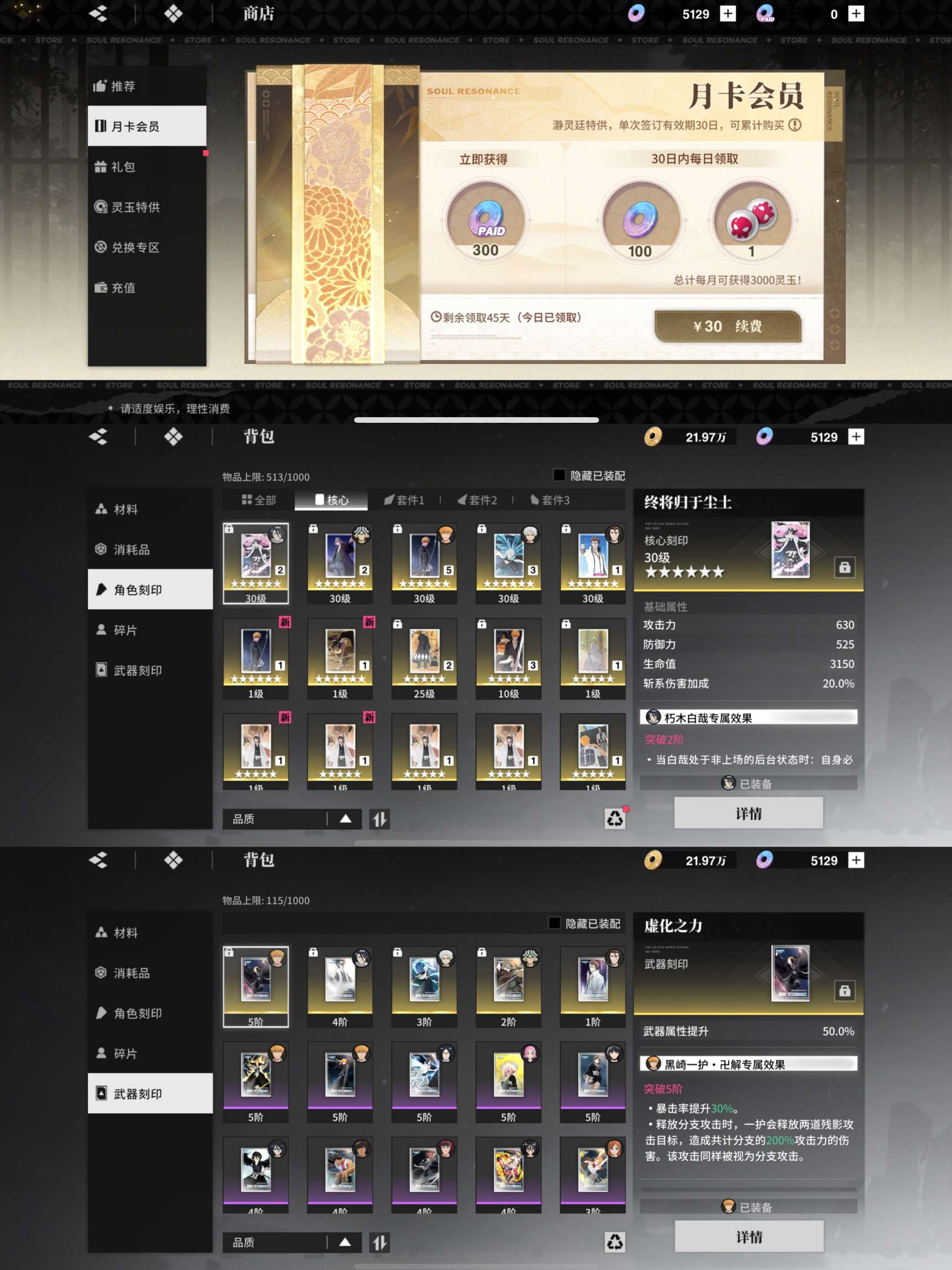 655一护233小白/4限定111蓝染0命剑八122店长242白哉100大狗100东仙5千玉+