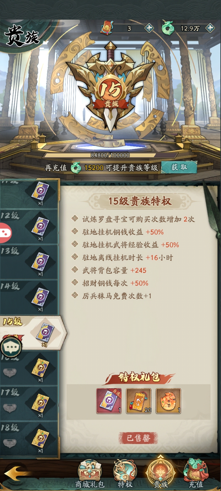 4.1825亿战斗力。VIP15