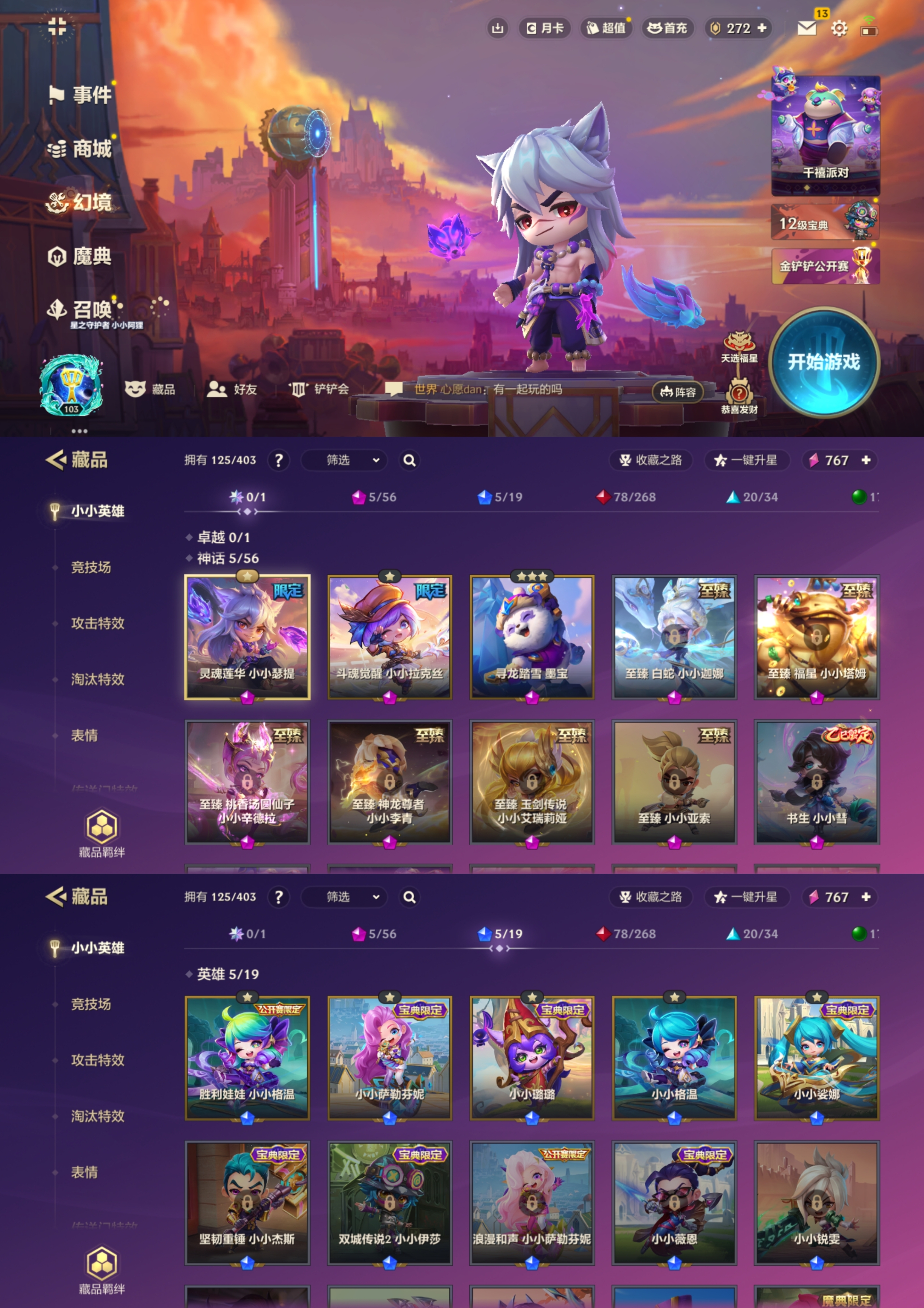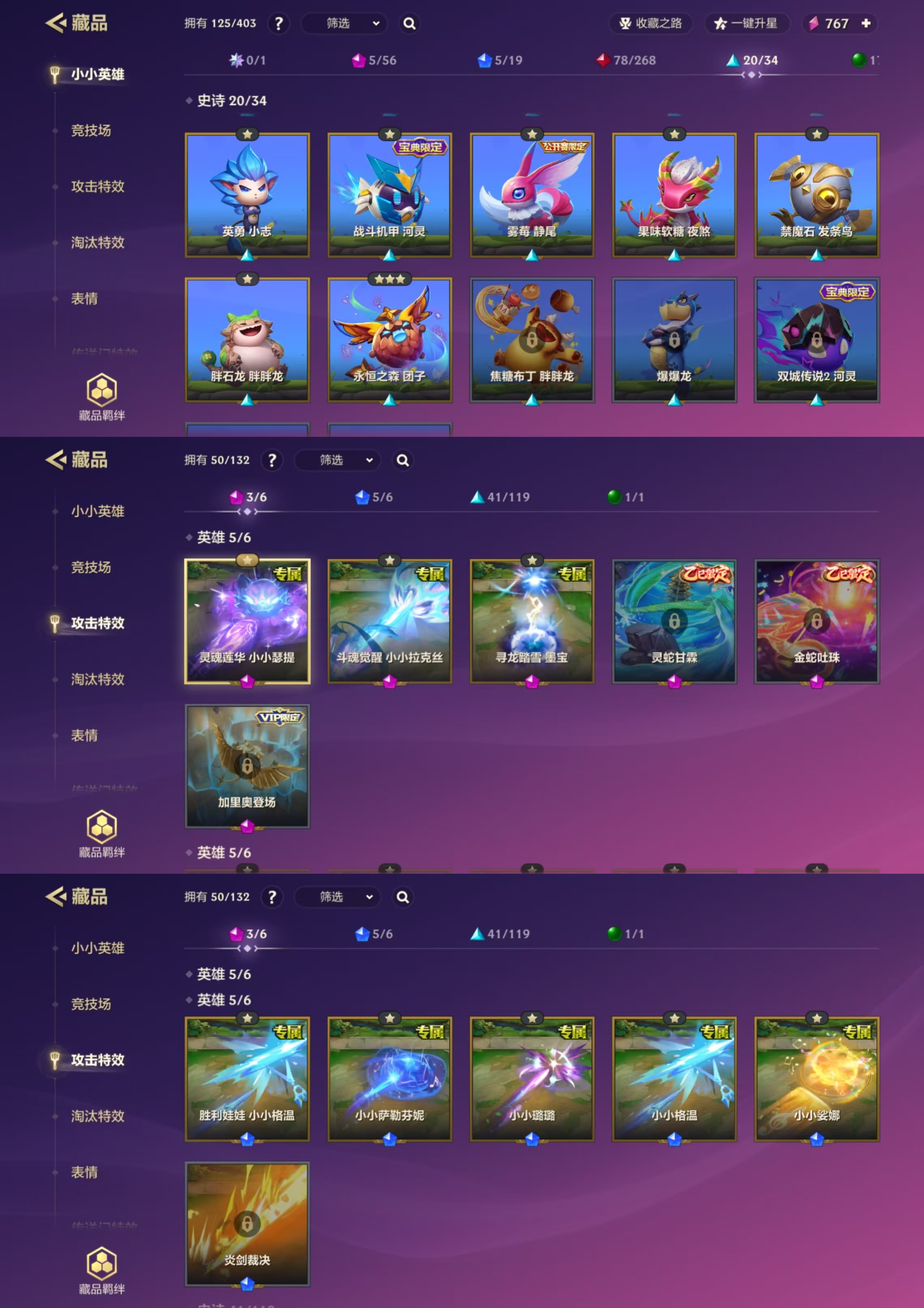 DD48安Q(可二次)金铲铲 125小小英雄 78传说 3神话-3星寻龙踏雪墨宝 灵魂莲华小小瑟提 都魂觉醒小小拉克丝 3神话攻击特效 5限定 20史诗 13竞技场 攻击特效50 点券272