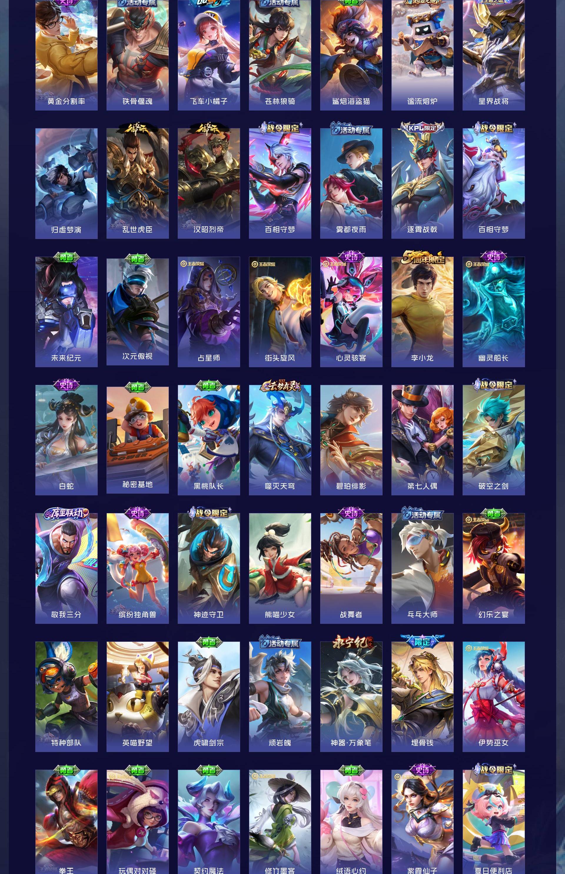 V8 皮肤296 英雄126 至尊星耀 荣耀典藏2 传说19 其他皮肤280