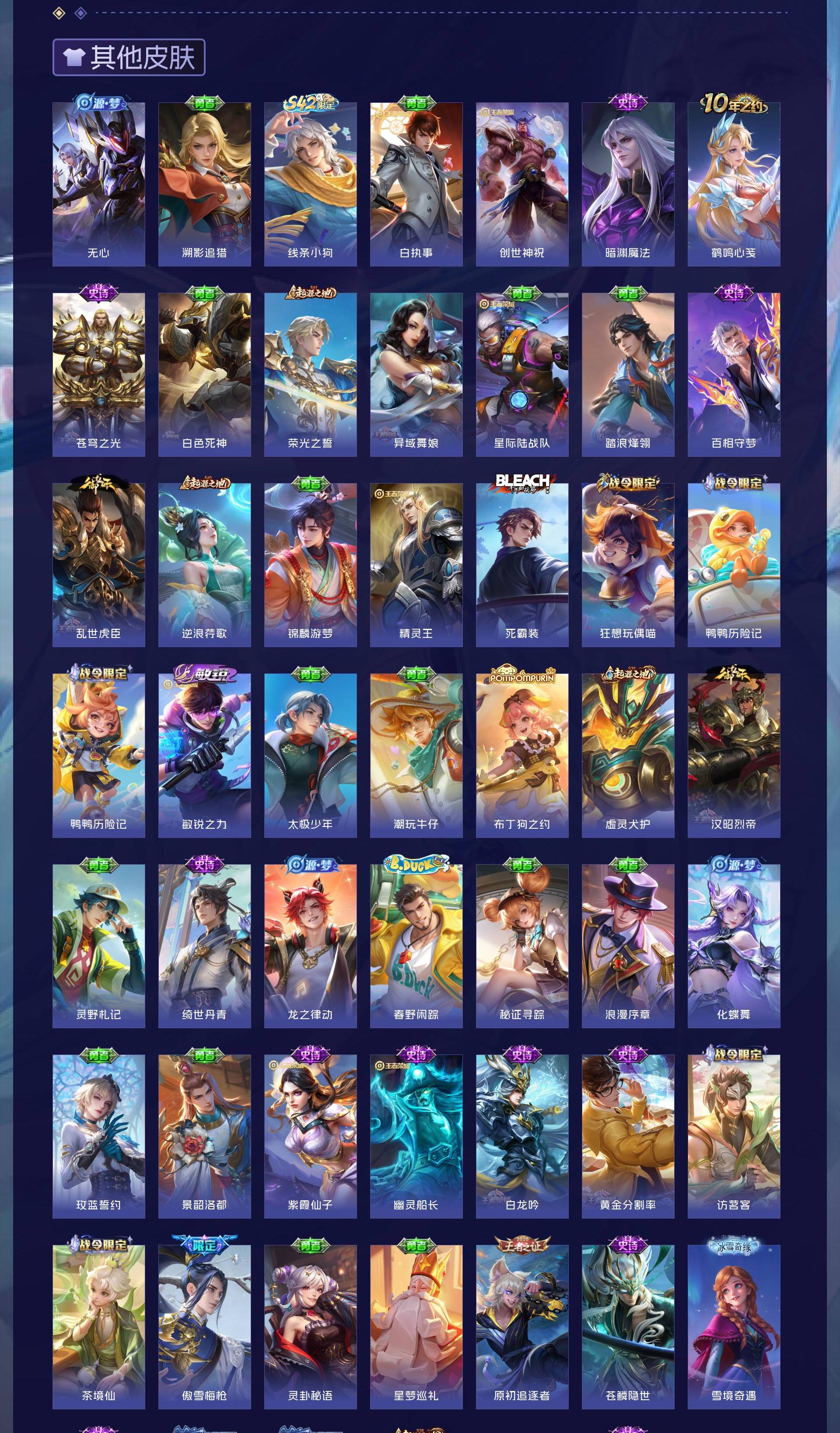 V8 皮肤266 英雄126 最强王者 荣耀典藏2 珍品传说2 传说16 其他皮肤252
