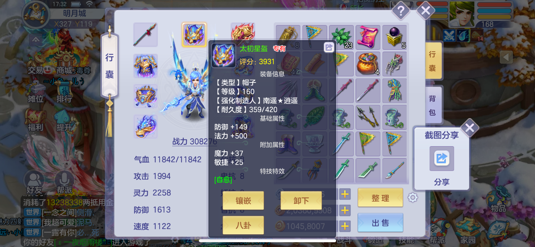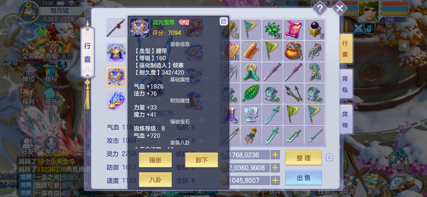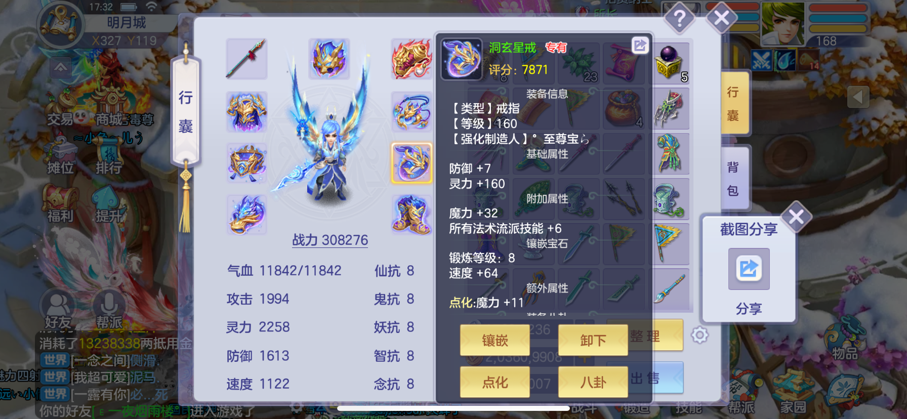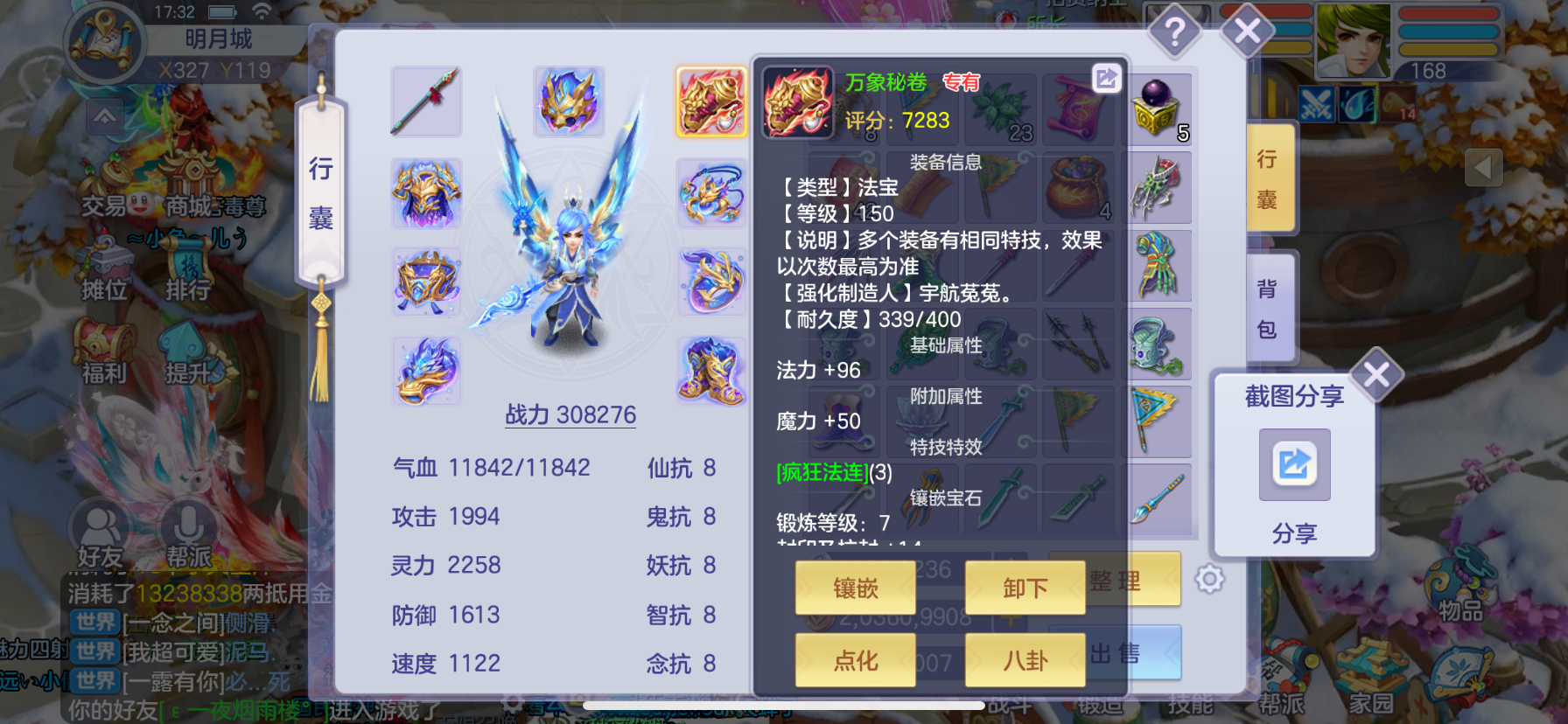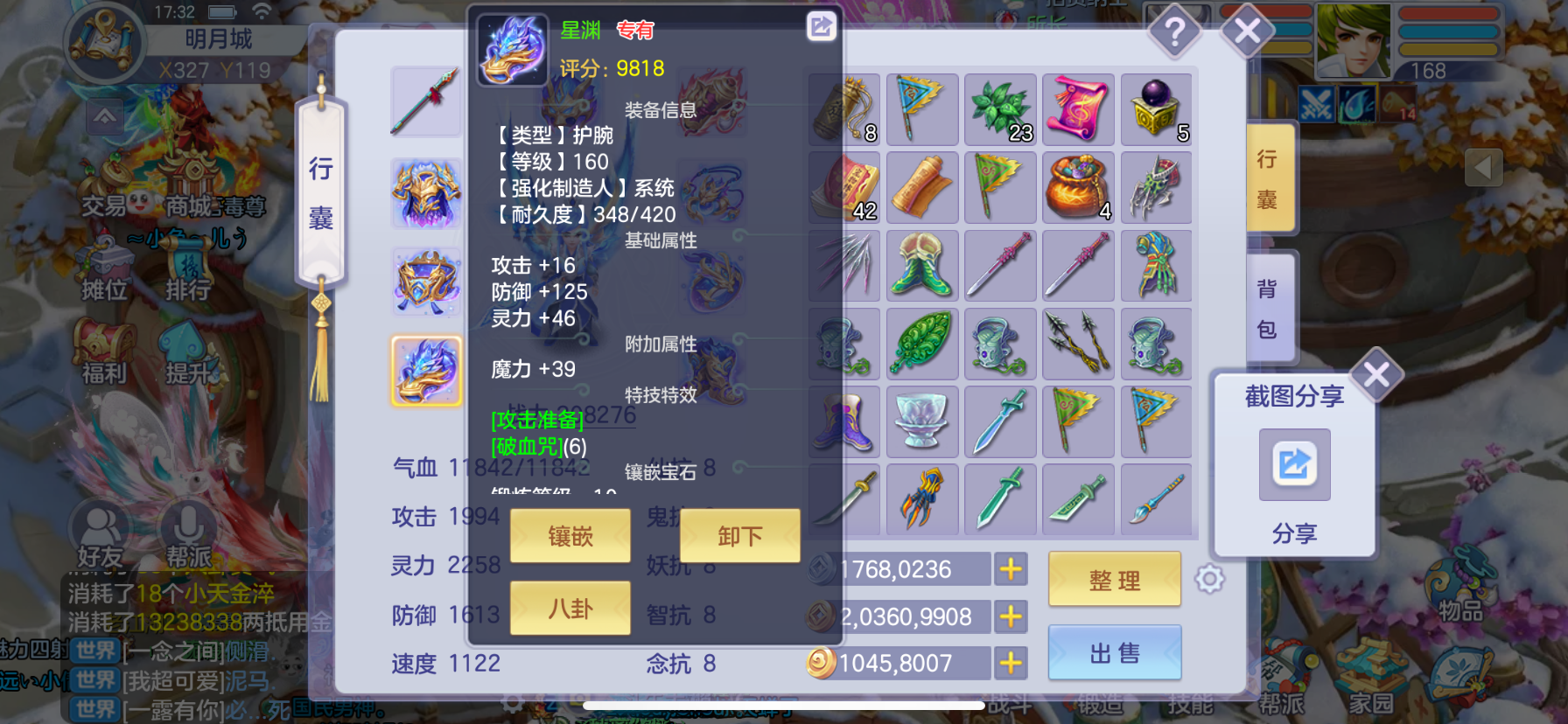 168法师7级强化带5技能星辉外加1000多万梦想币