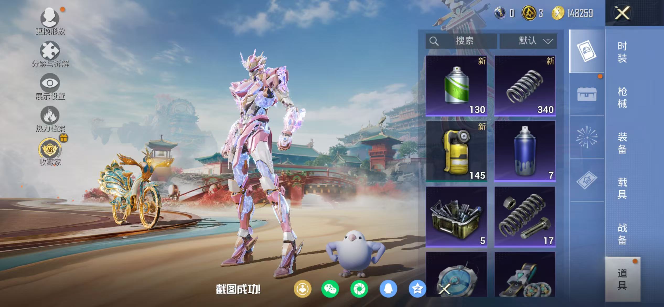 242-【1红装2级帕修斯 9粉装5特效枪1载具可秒换绑】 苹果Q区-30845热力值-2印记-52套装-89枪皮 【1红装】 最终圣卫者-帕修斯(2级)【1载具】 辉羽雀灵自行车【9粉装】 傲雪凌霜 绒雪飘舞 霁雪冰心 幻情紫藤 星穹咏叹调 角色-奇迹舞步 美琪 美雪 角色-羊梦糖心 贝贝【5特效枪】 UMP45-相思残雪(6级) AKS-74U-星穹咏叹调(5级) MG3-辉羽雀灵(3级) JS9-奇迹舞步(5级) DP-28-豹影疾电(5级)【15热门】 M416-蓝色火焰 GROZA-异