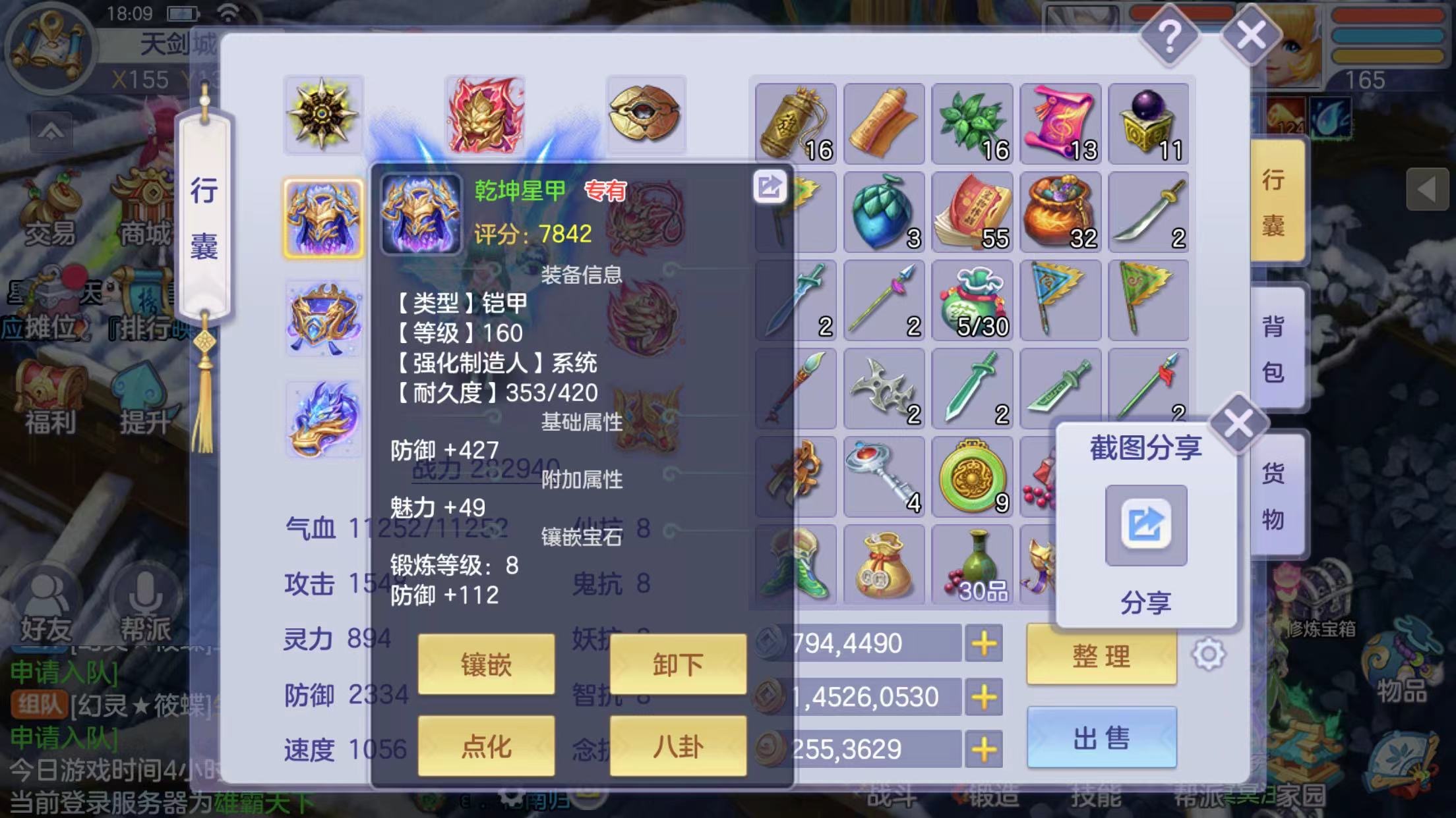 雄霸天下165级满级满经验满技能满化镜大佛