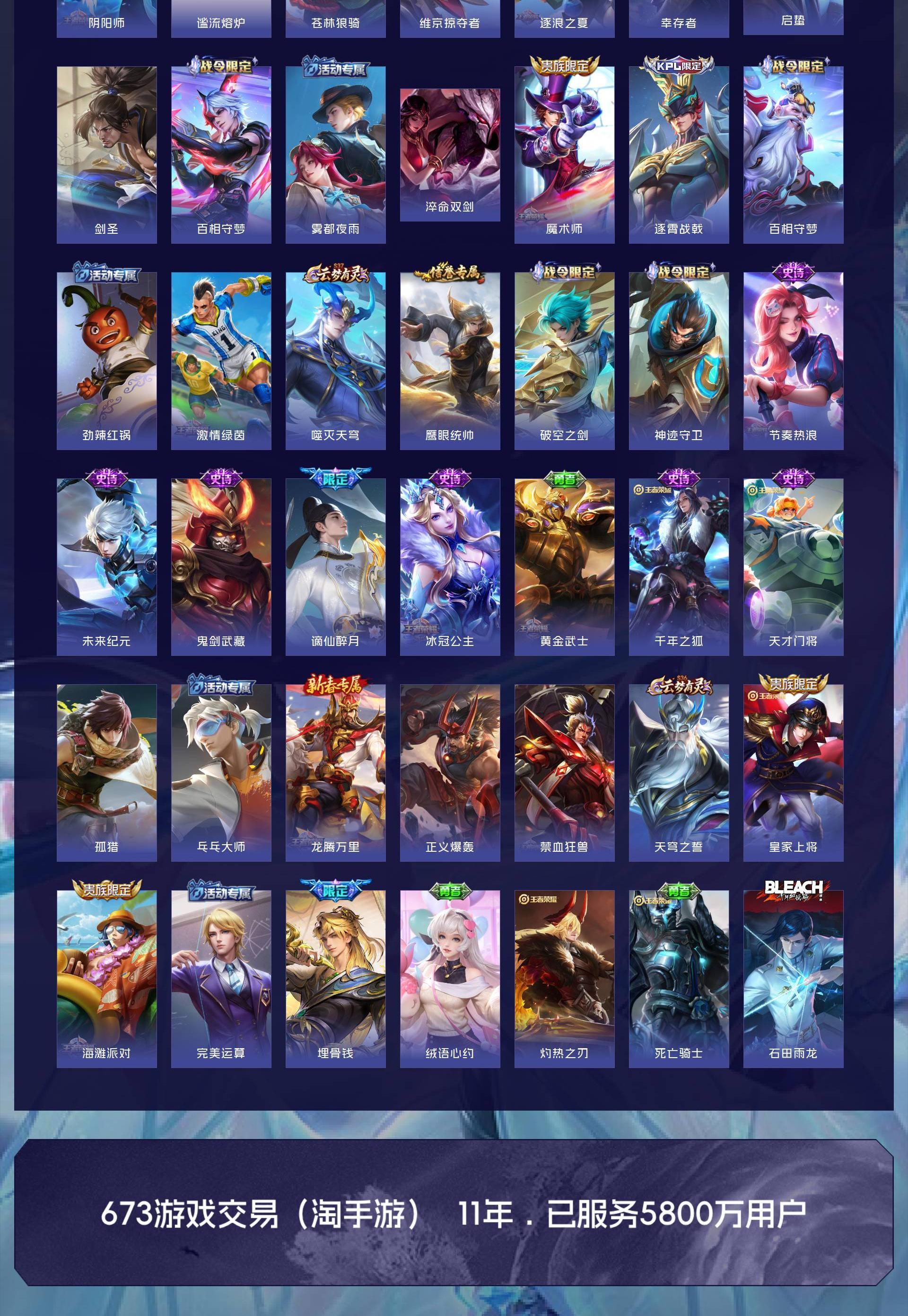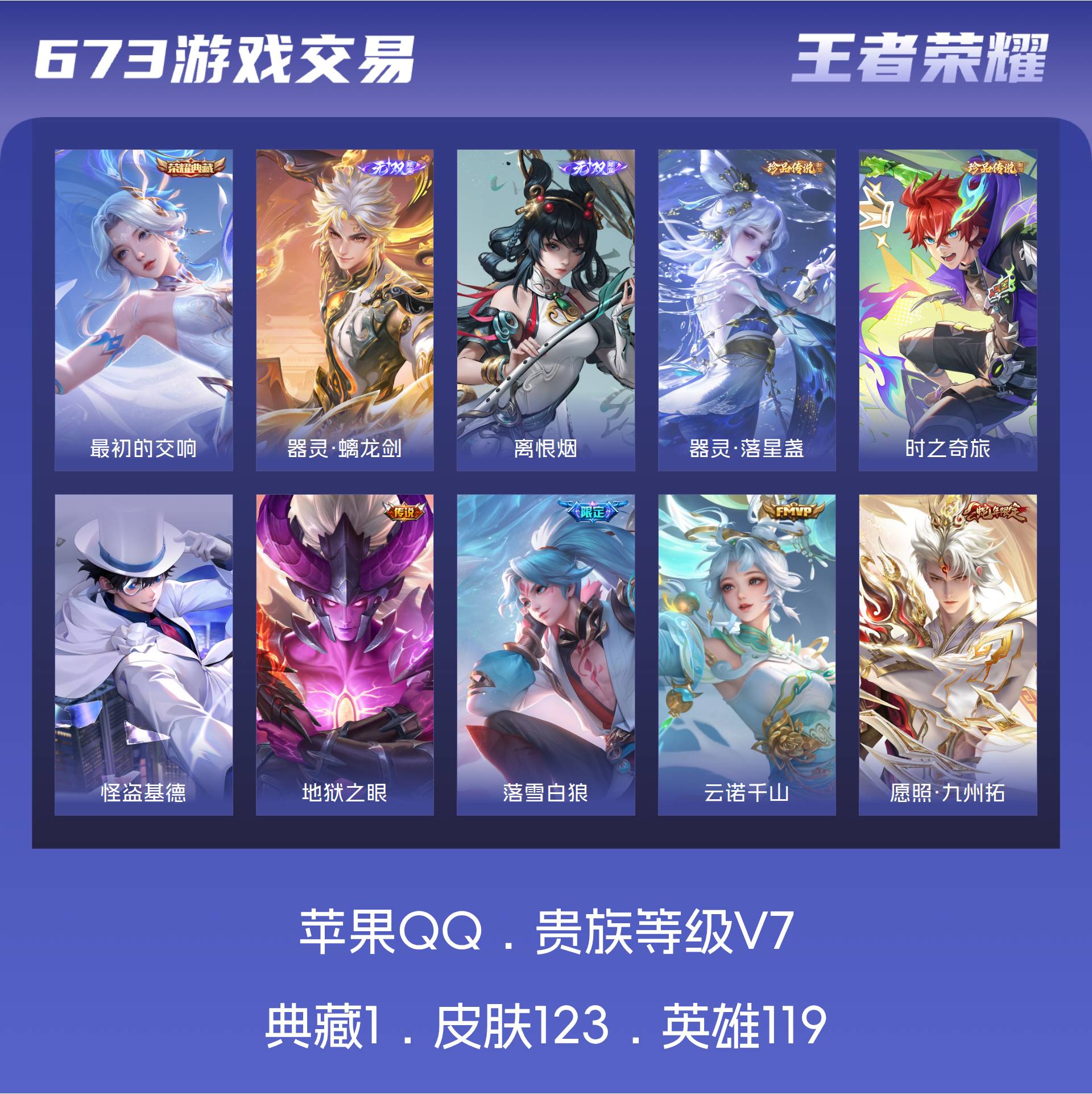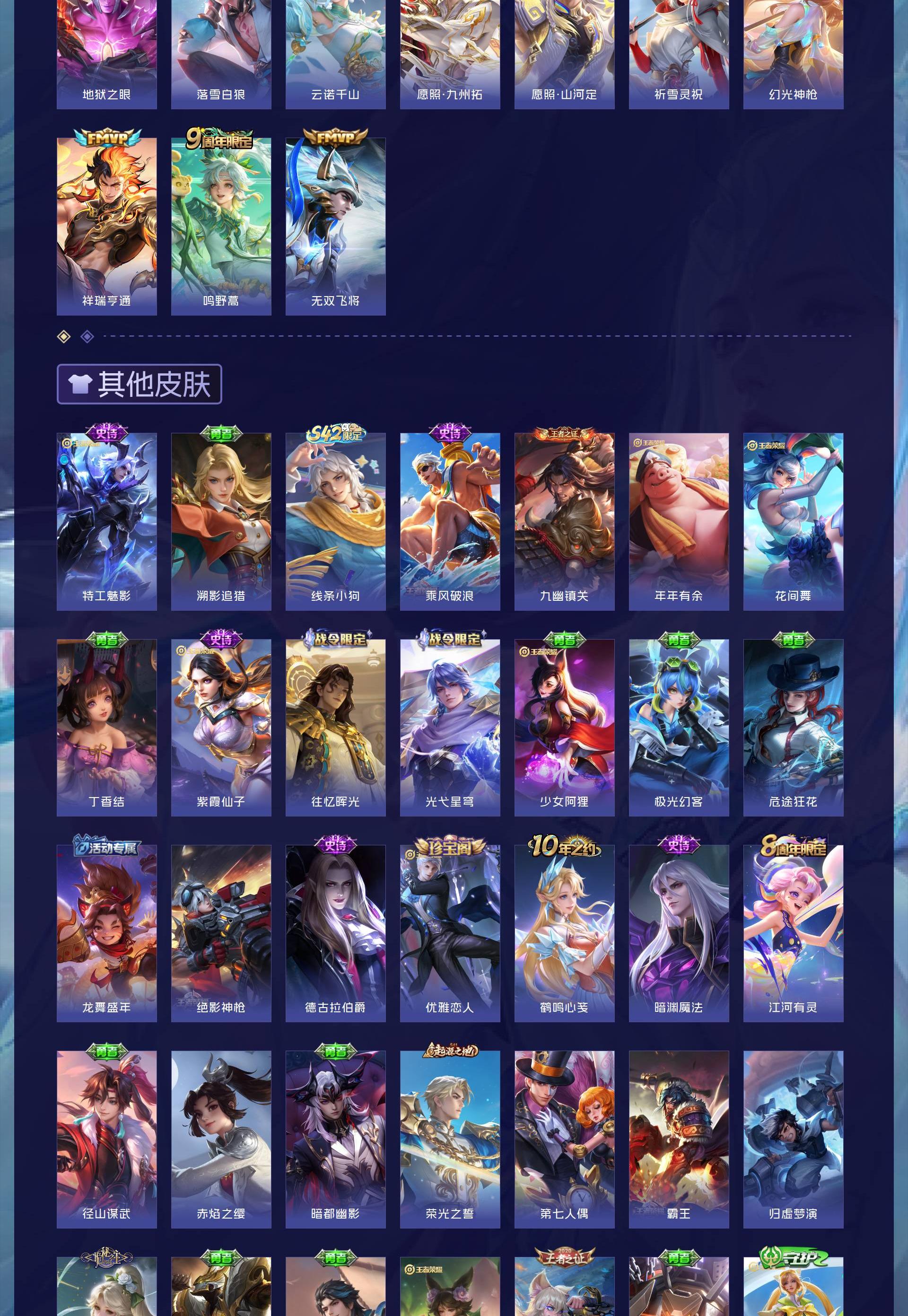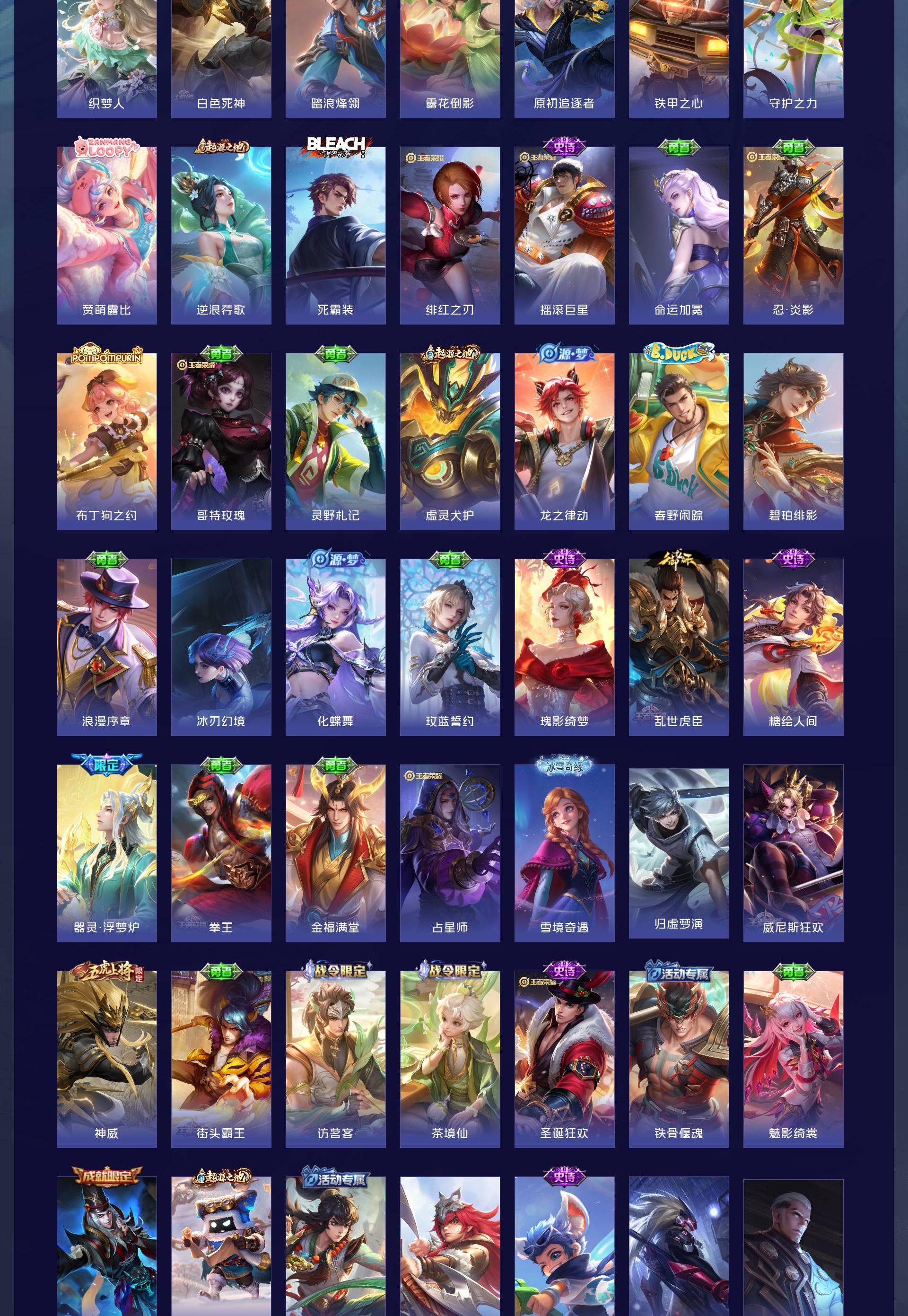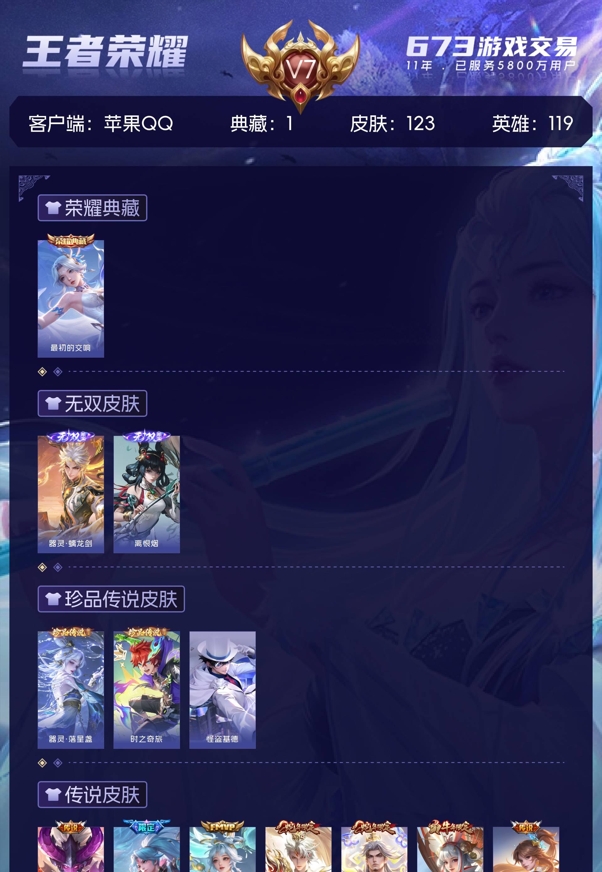 V7 皮肤123 英雄119 最强王者 荣耀典藏1 无双皮肤2 珍品传说3 星传说1 传说10 其他皮肤112