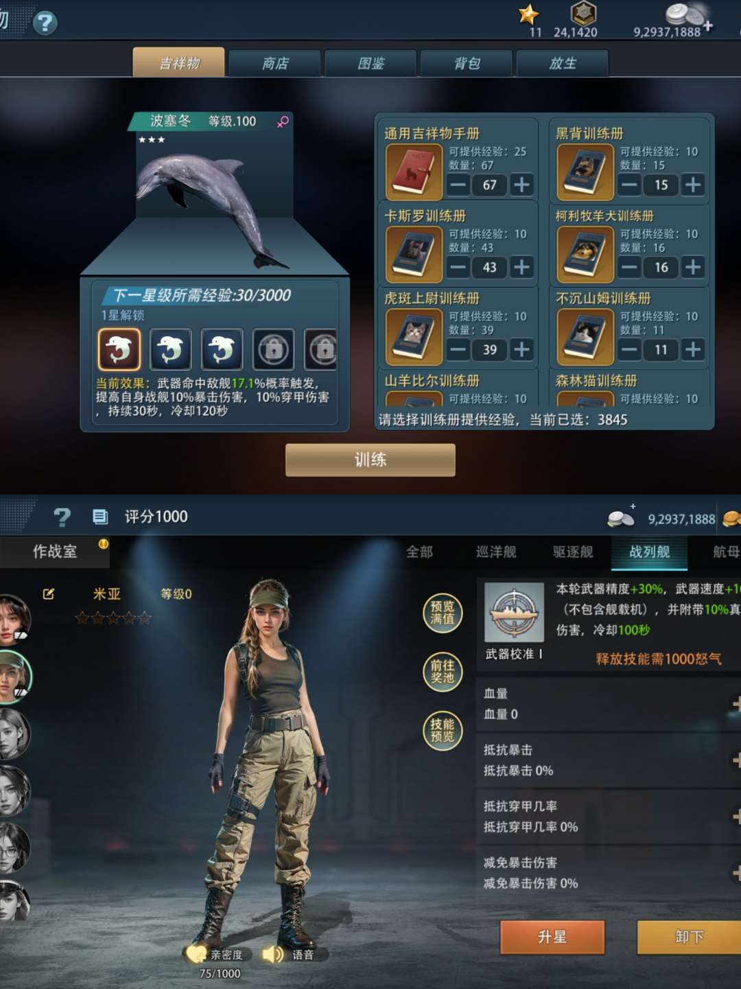 四星海豚,四红飞舰首4,火控6,技能符文齐全。五星信物乱舞,5000+铸造钢,伊满加固,材料非常多。