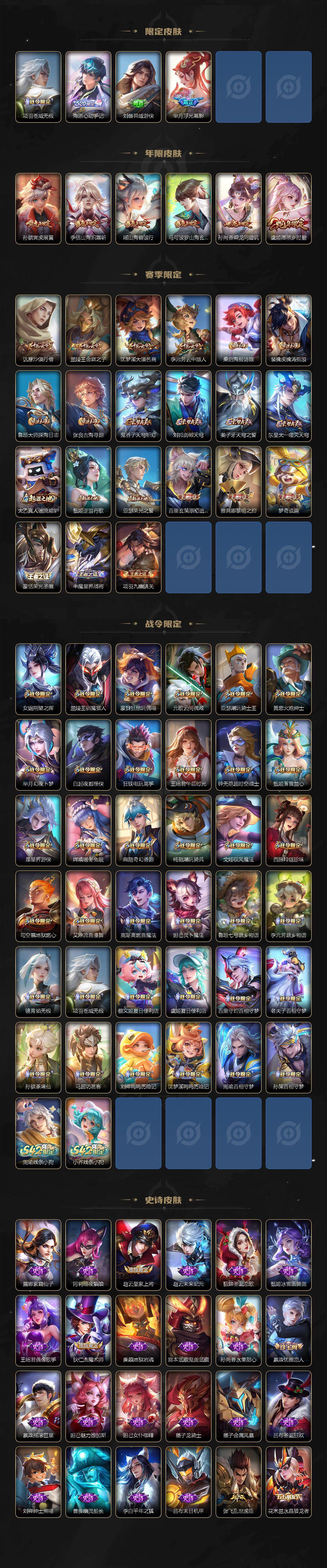 【英雄全皮】:孙权全皮,鲁班大师全皮,桑启全皮,戈娅全皮,空空儿全皮,影全皮,海诺全皮