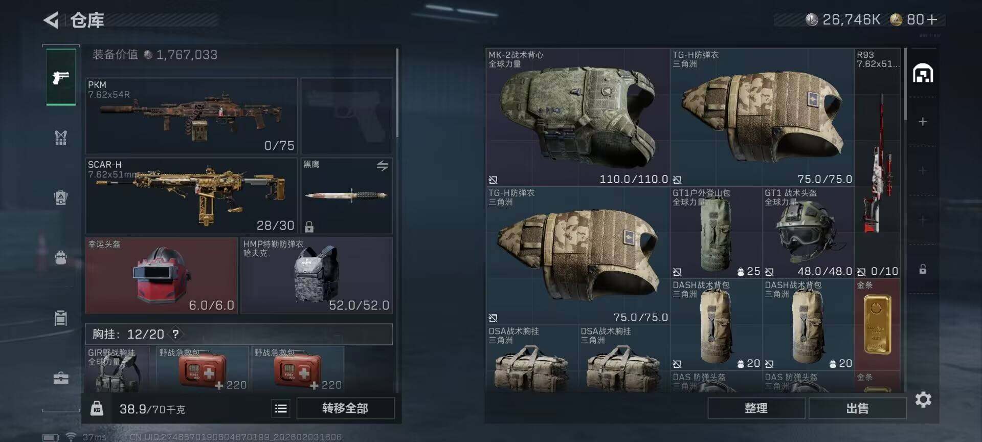 总资产(M):43M/哈夫币(K):26746K