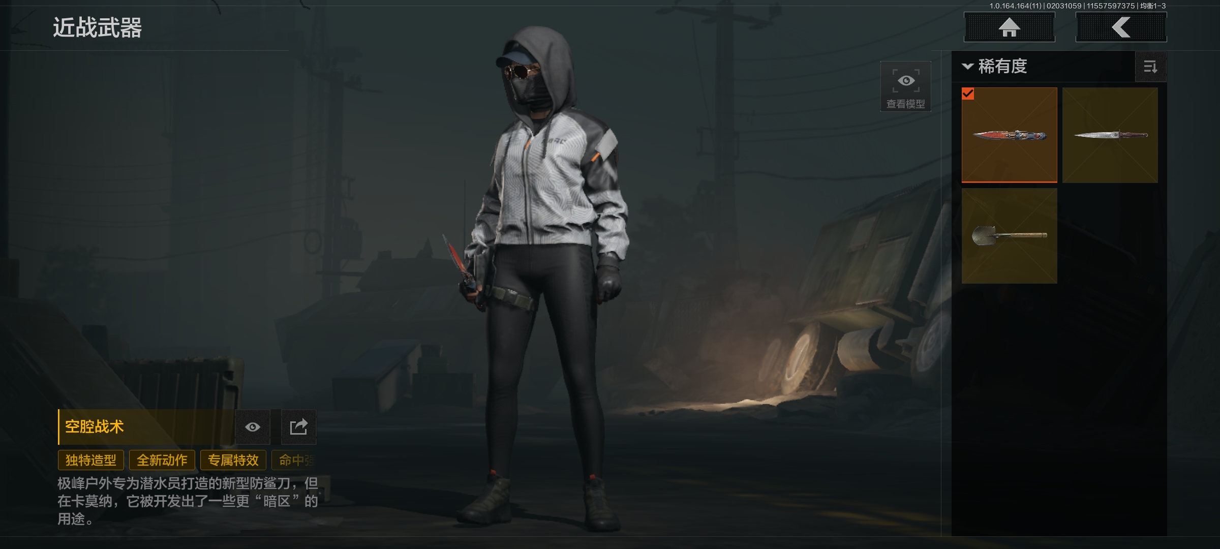 MWT4469【空腔战术 突击匕首】安卓Q-等级30-仓库价值10M-科恩币2809K-【套装】和平先锋作战套装 财团之手作战套装 鎏金街头套装 速降反光·户外运动套装 街头守卫 公司成员套装 王国卫队礼装·轻装【枪皮】 战术大师·AEK 战术大师AN94 旧王圣谕·QBZ191 利齿风暴·MPX 近卫荣誉·RPK16【近战武器】 工兵铲 空腔战术 突击匕首
