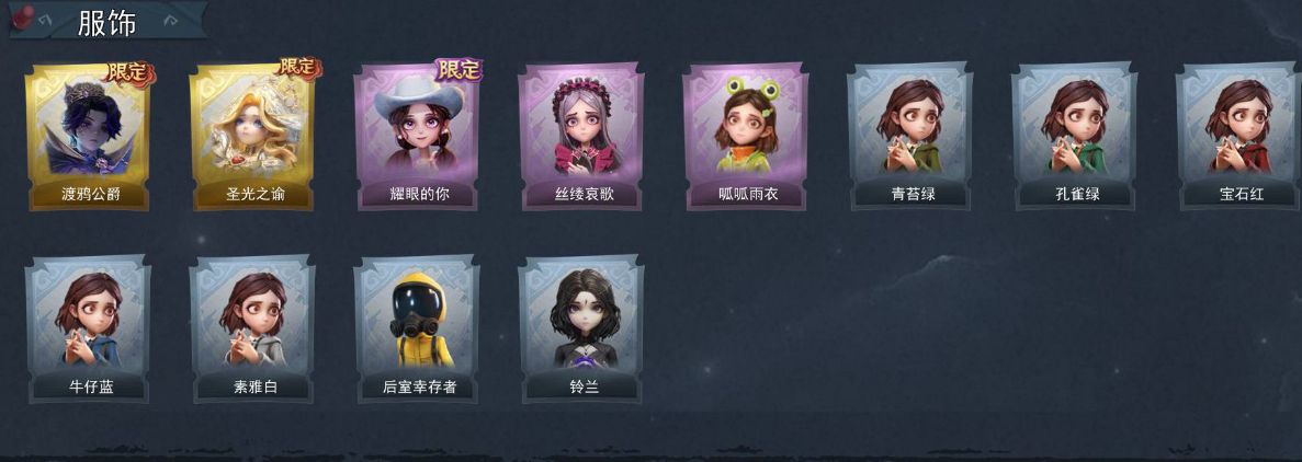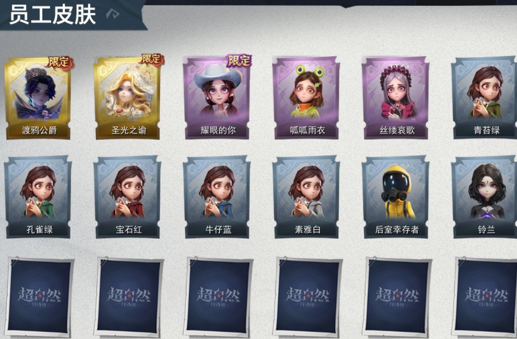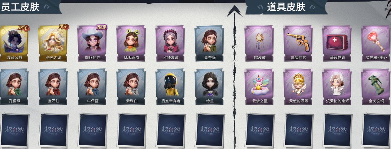 ZR299,金皮:2,紫皮:3,道具皮:8,铲铲币:485w,累充:61190金砖,服装:零-渡鸦公爵、薇薇安-圣光之谕、爱丽丝-耀眼的你、爱丽丝-丝缕哀歌、小黄-呱呱雨衣,员工:小黄、爱丽丝、零、阿念、逍遥、薇薇安、巫铃儿、莉莉、艾伦、爱德华、兰、小满,段位:王牌,赛季魔盒:普通魔盒,道具皮肤:转轮手枪-新星时代、闪光弹-金戈玄铜、音响-鸣沙鼓、急救包-蔷薇物语、背饰-云梦之星、背饰-天使的呼唤