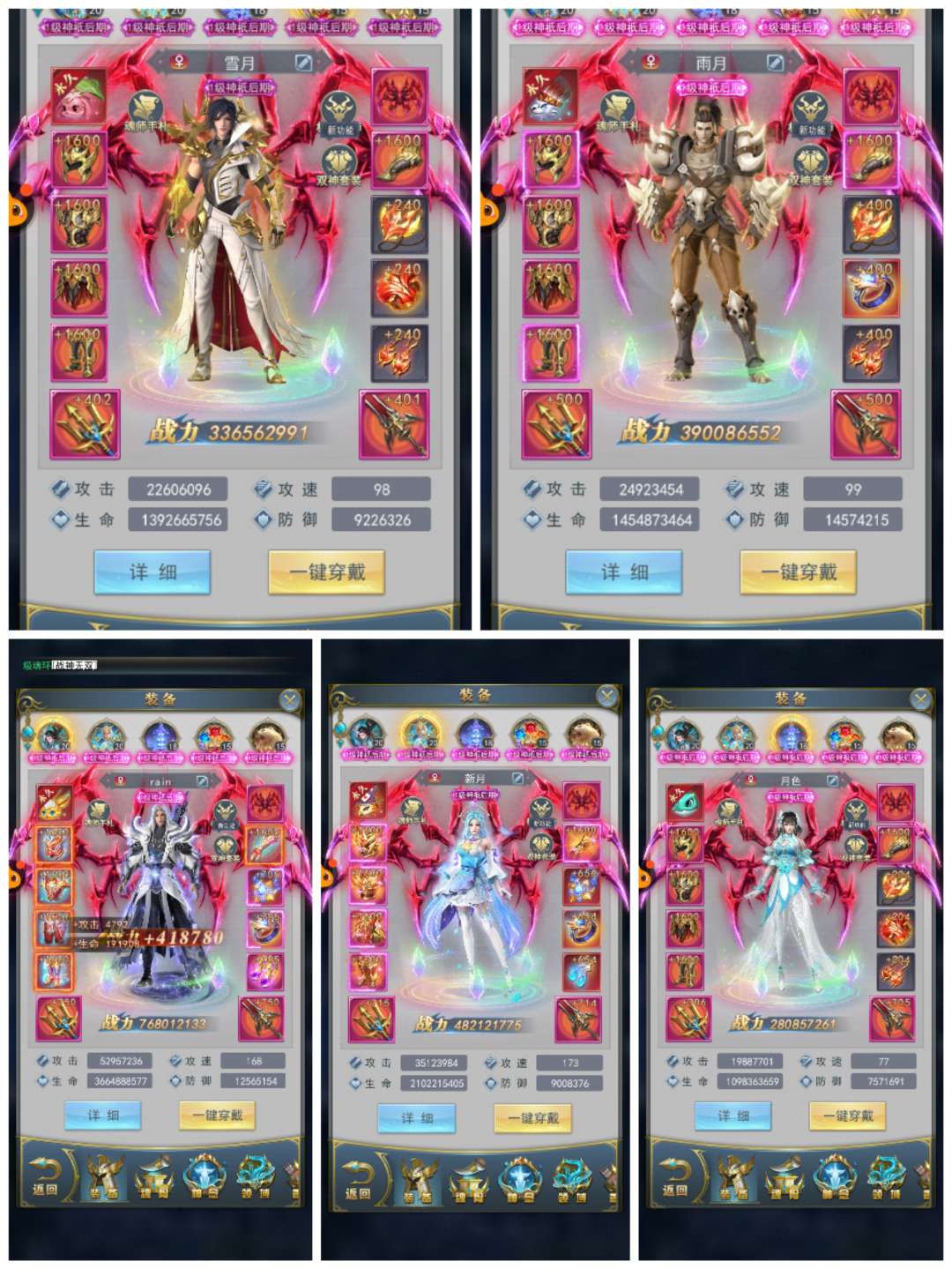 1814区,三神套,5套红魂骨,4套斗铠,2套秘法,满真身龙魂,坐骑皮肤多,便宜出