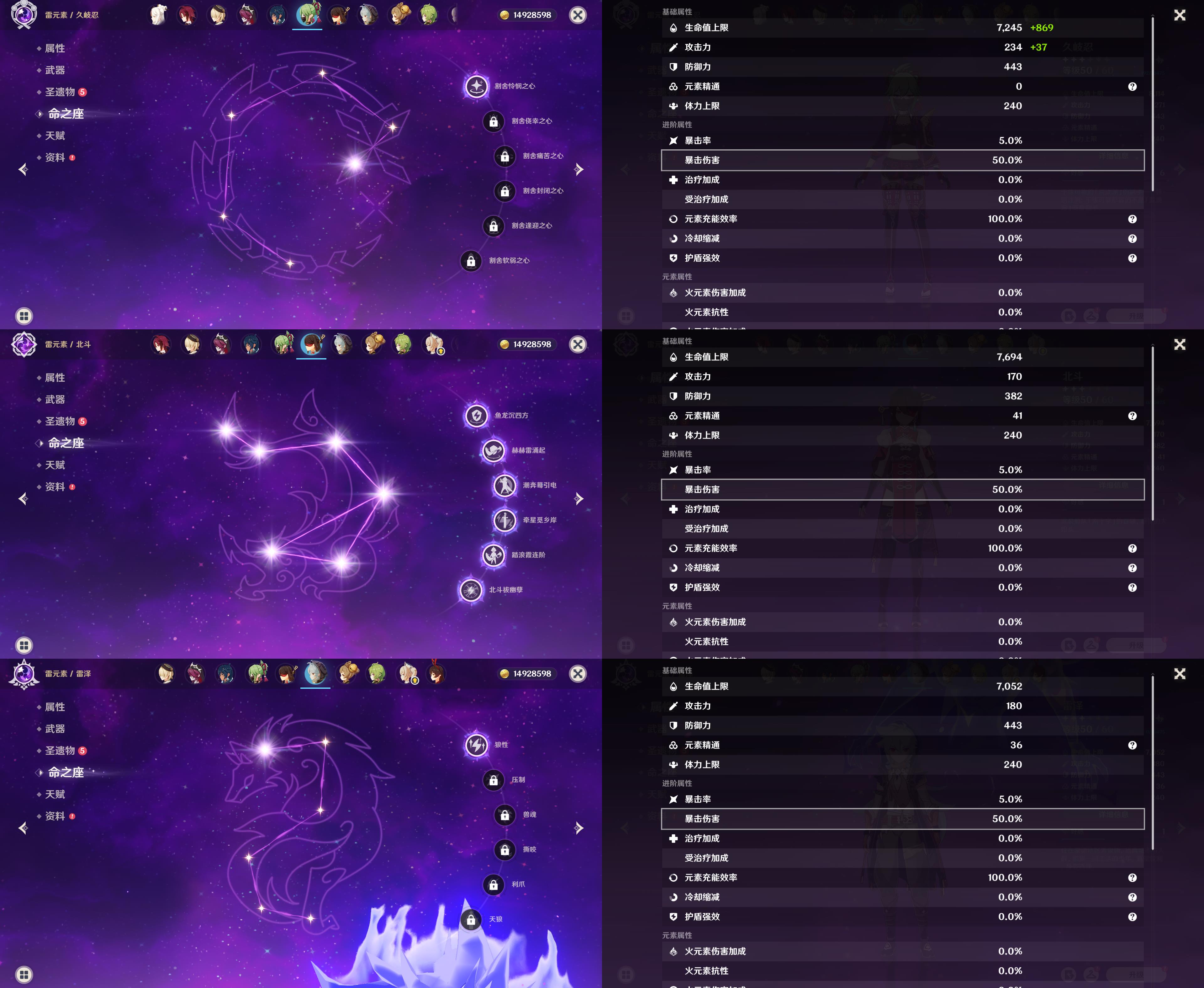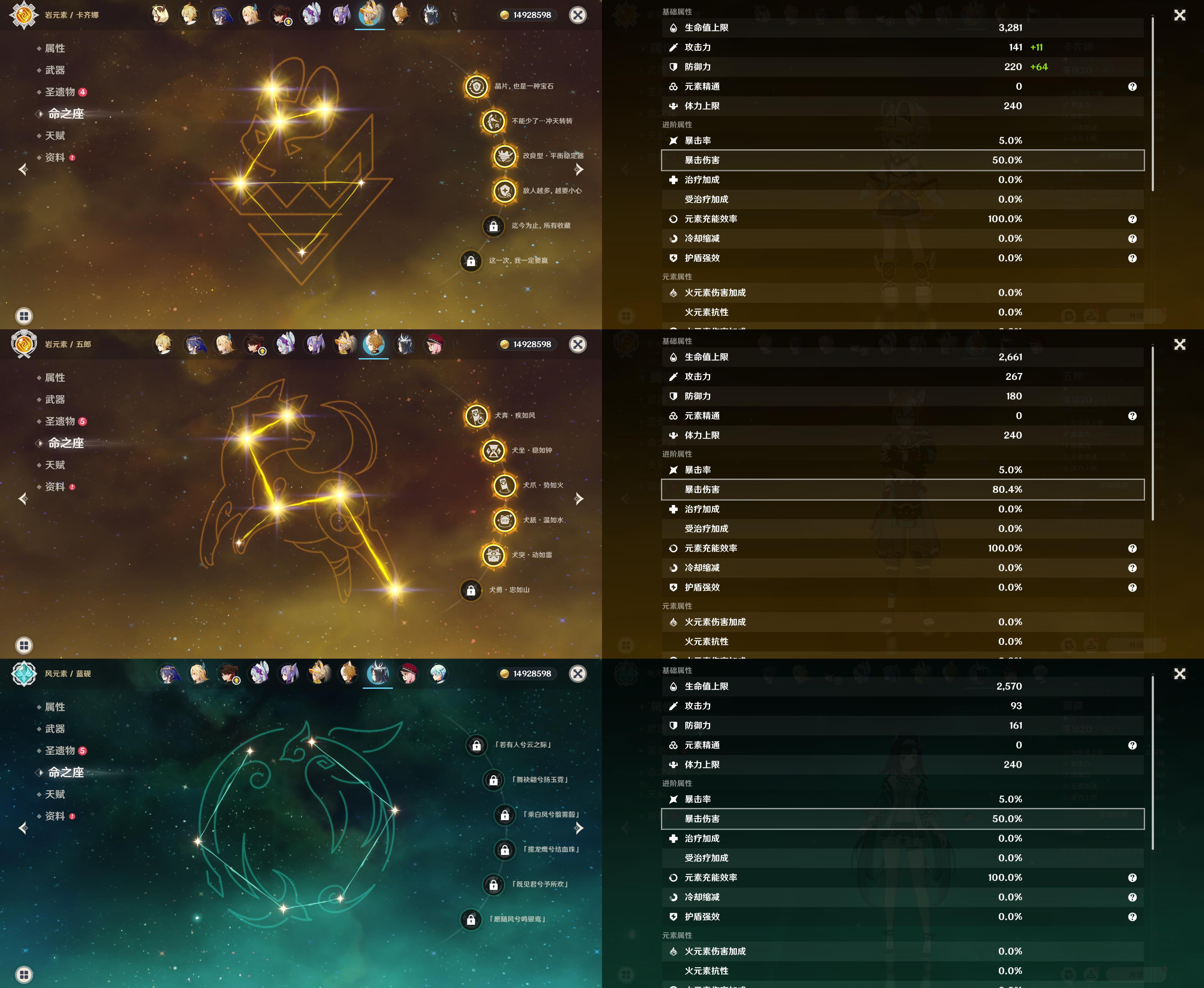 五星角色: