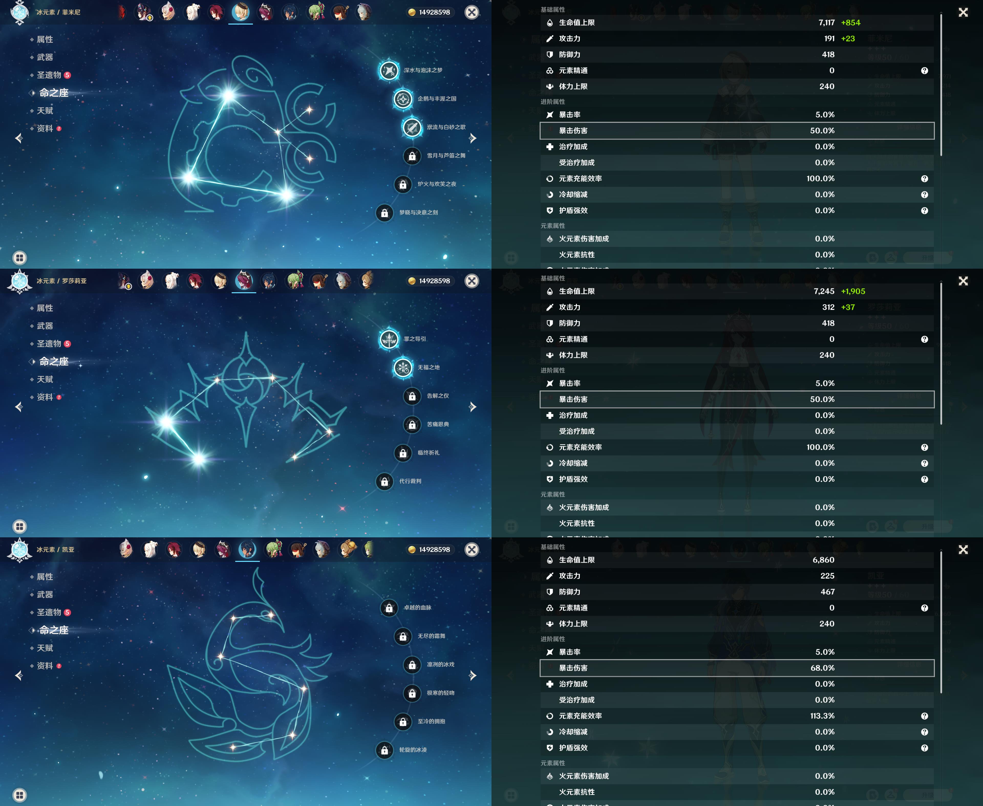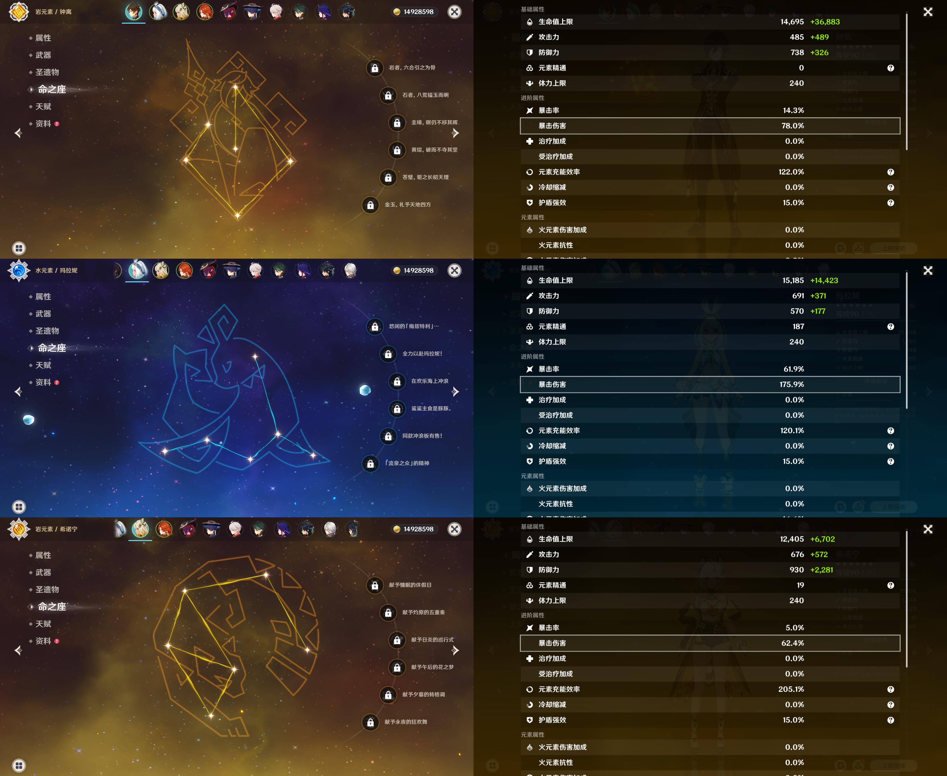 58级/34黄/女主/20个五星角色/7个五星武器/钟离/玛拉妮/希诺宁/玛薇卡/恰斯卡