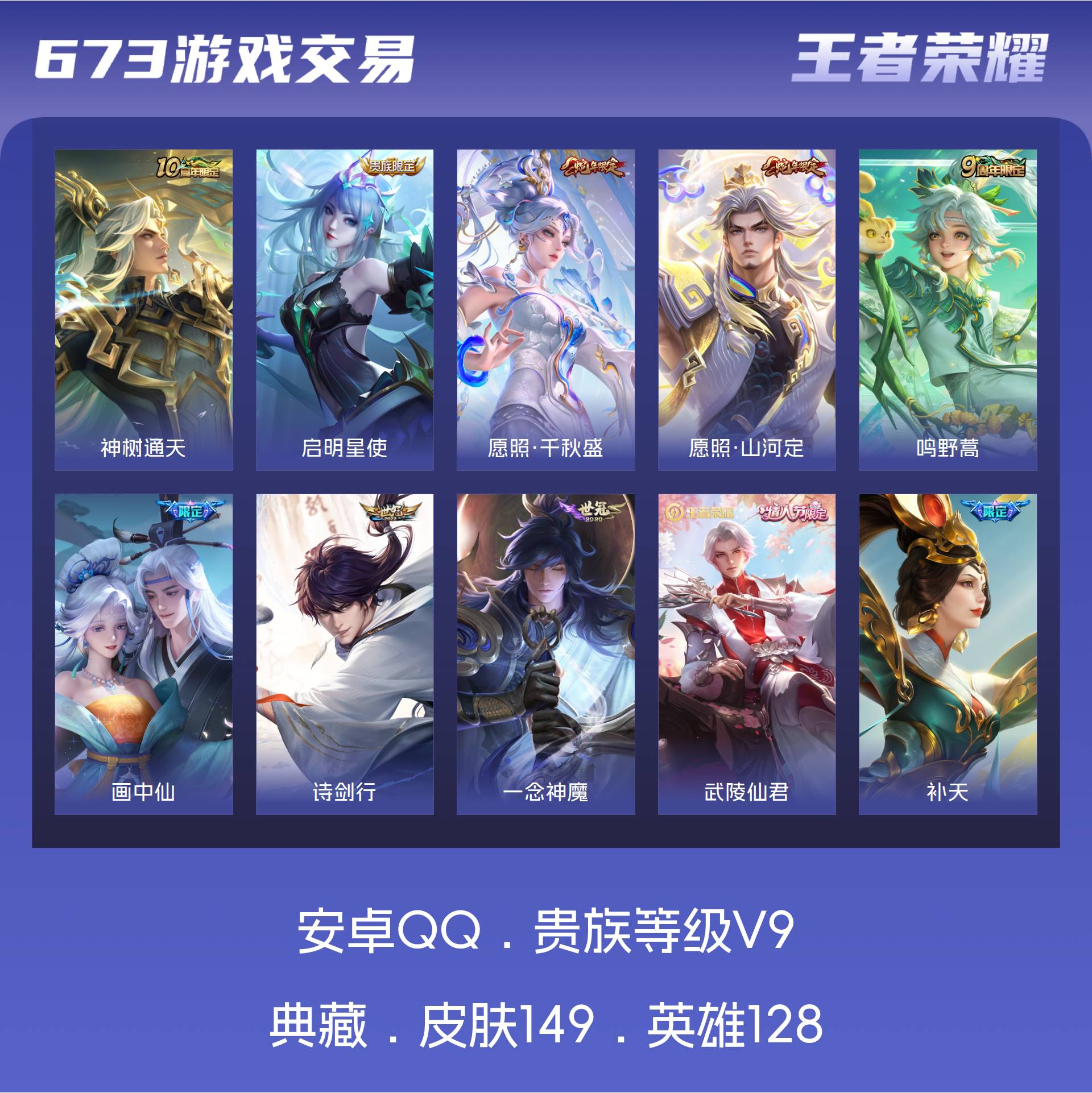V9 皮肤149 英雄128 永恒钻石 传说15 其他皮肤140