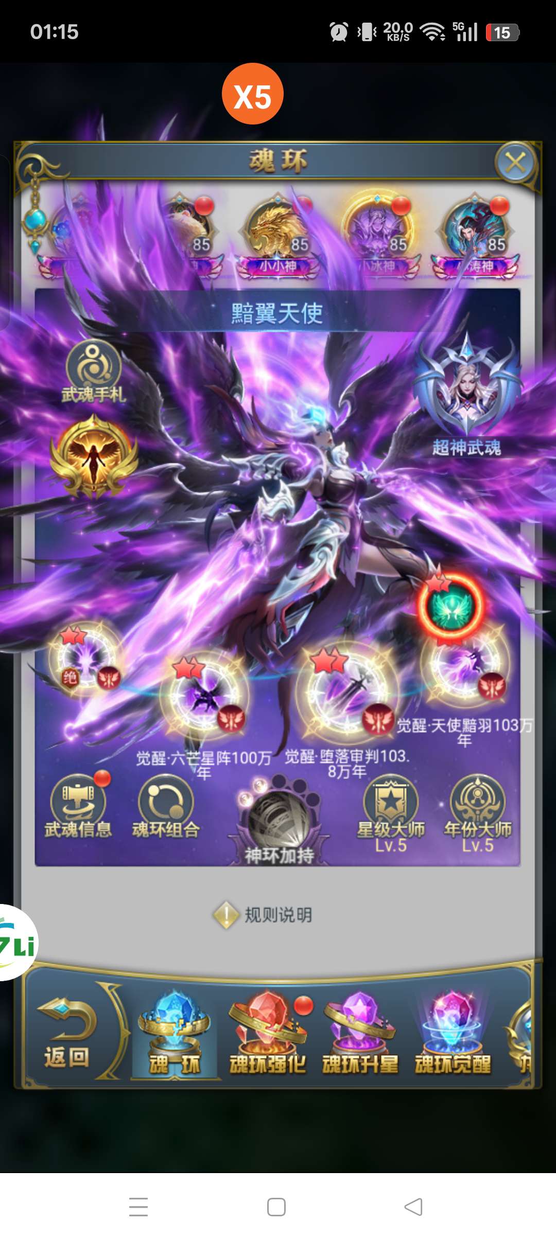 天使极品7翘压战号,3神套,3绝,5草黄,5魂骨,13排积分大奖,火焰大翅膀,大金龙坐骑,带中枢材料