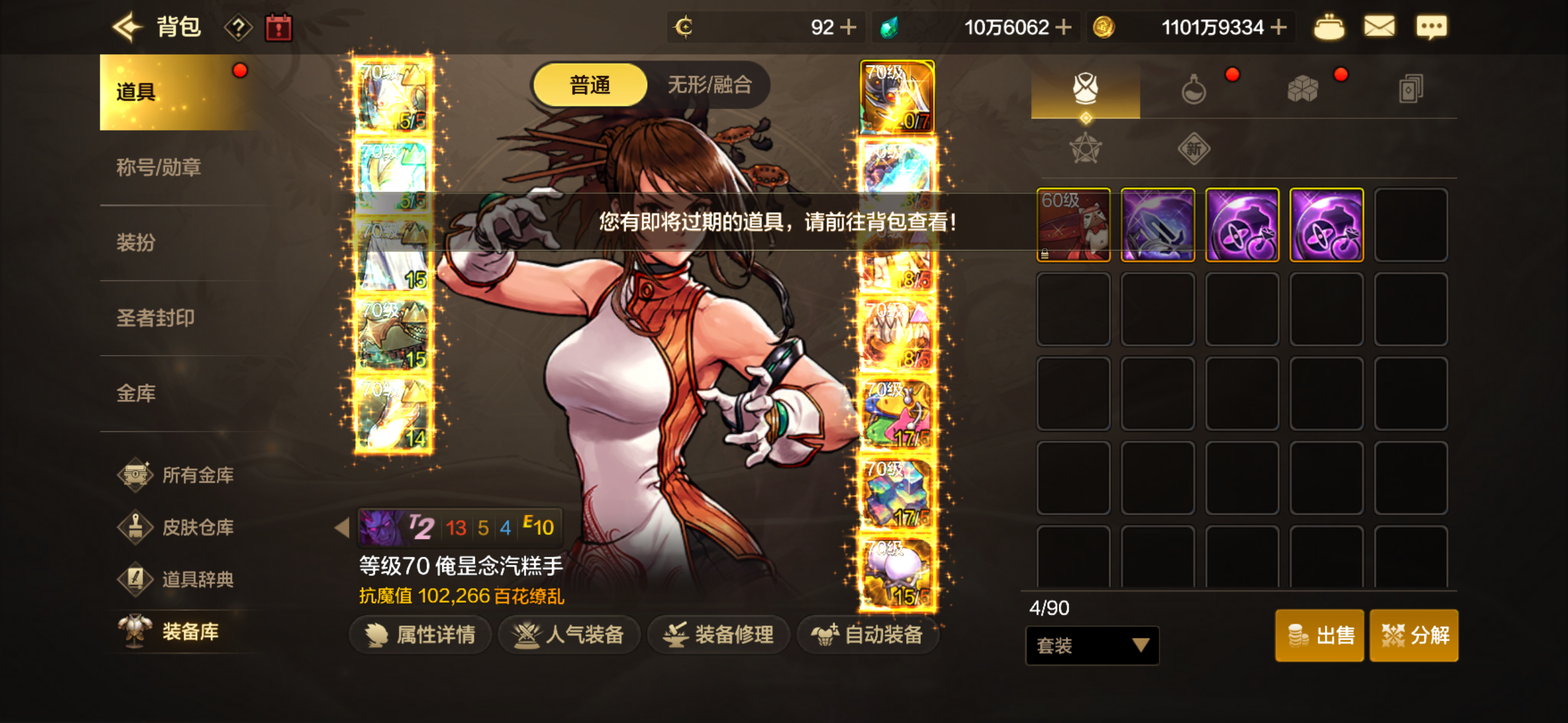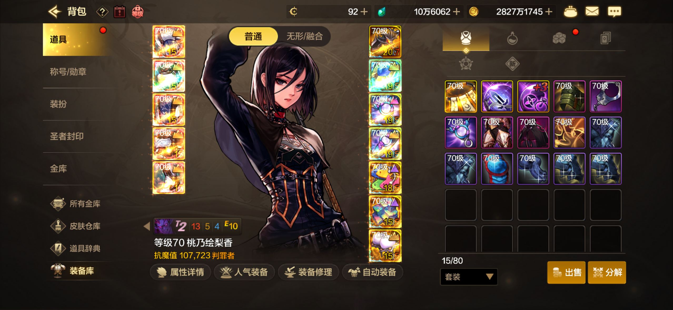 七角色增幅基本上都是防具5武器7大号大衣柜其他角色基本上都有漂亮衣服穿带王者荣耀v7多限定皮肤还有两个荣耀典藏