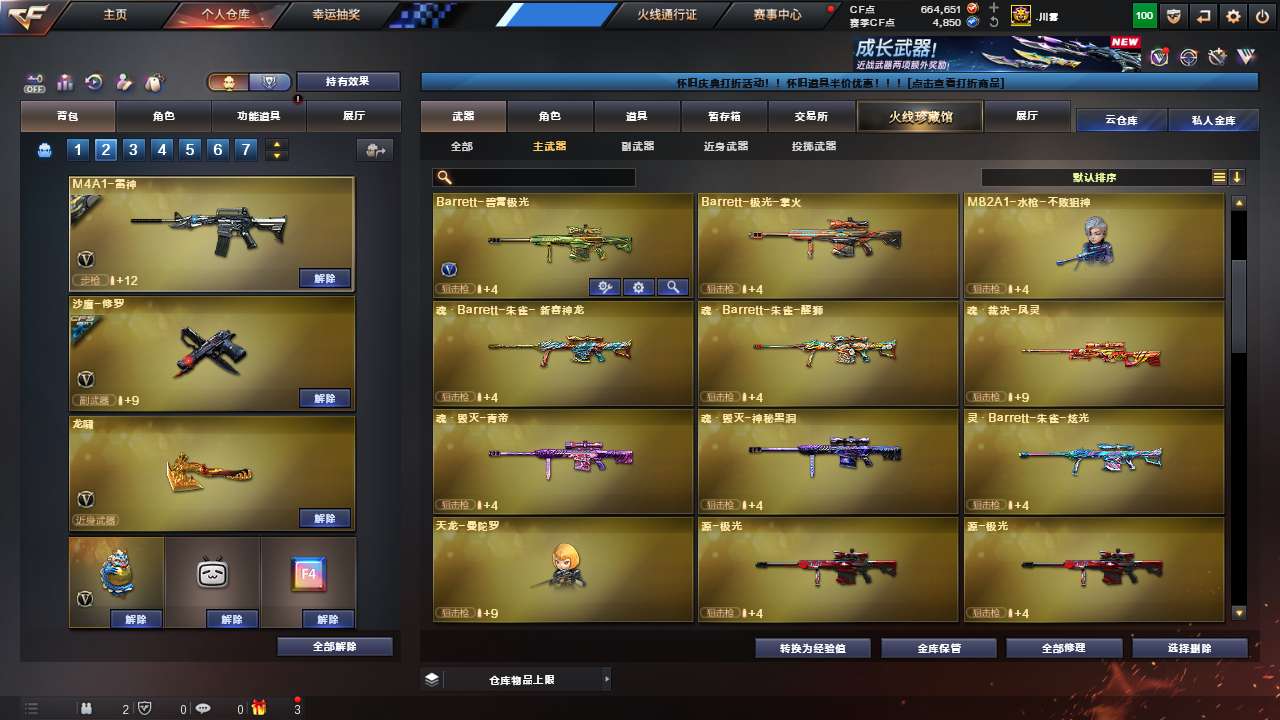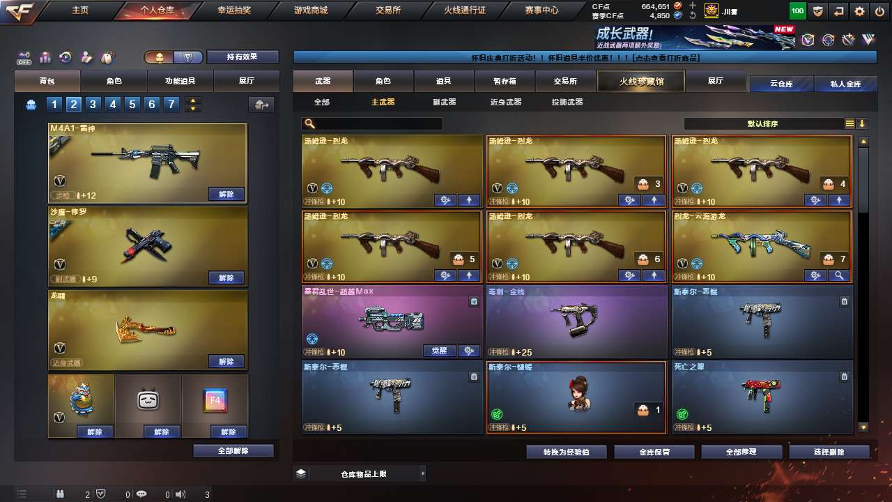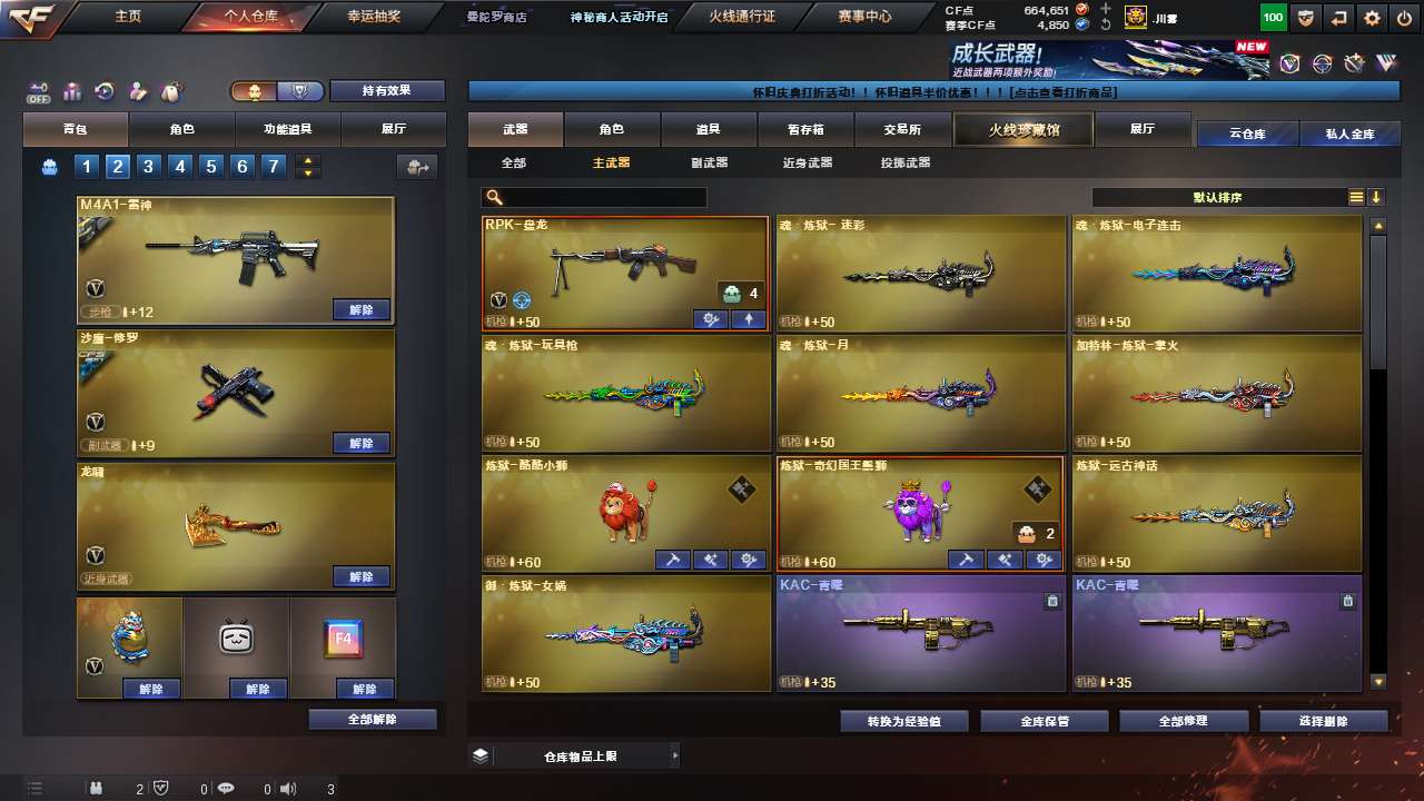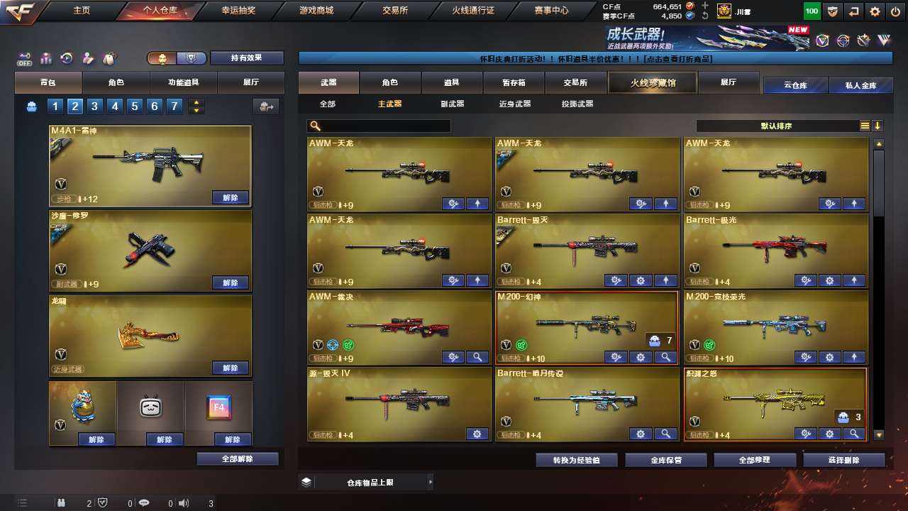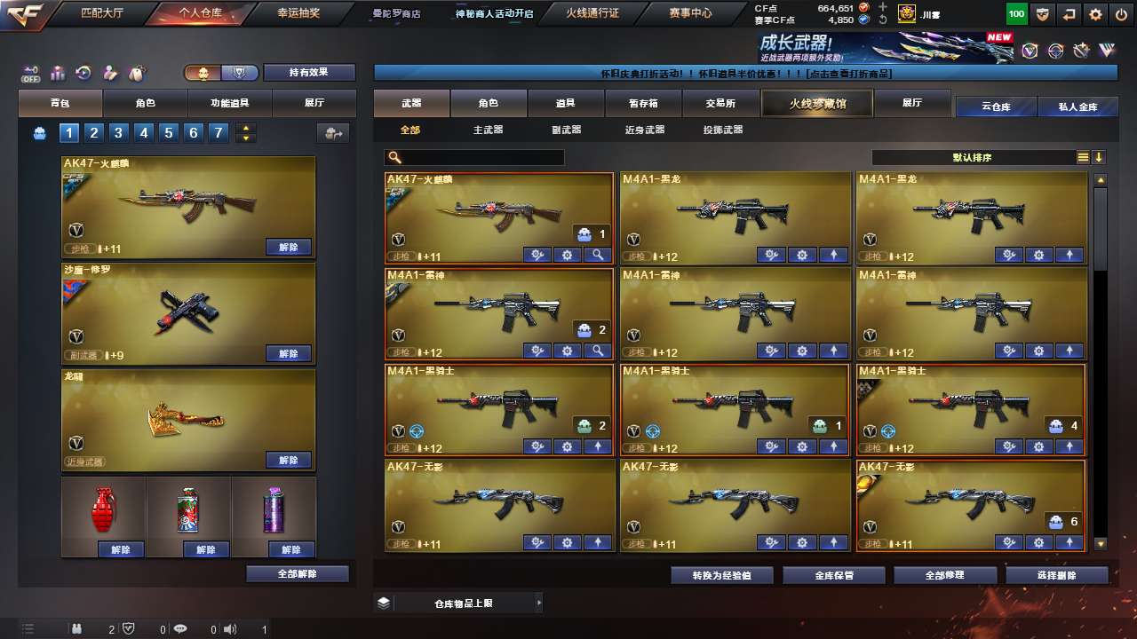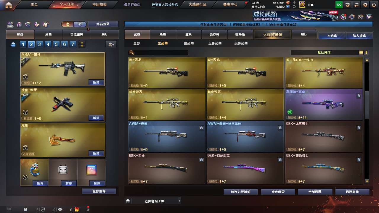 Lv.102段位宗师1,VIP5,87V,1传说,3王者,5炫金,664651CF点
