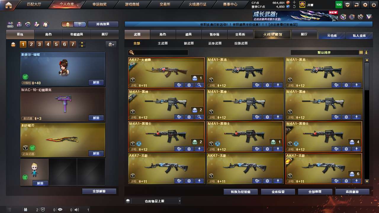 有六烈,三把蝴蝶刀,神威莲华,紫色奇幻国王狮子炼狱,号上还有66w点券