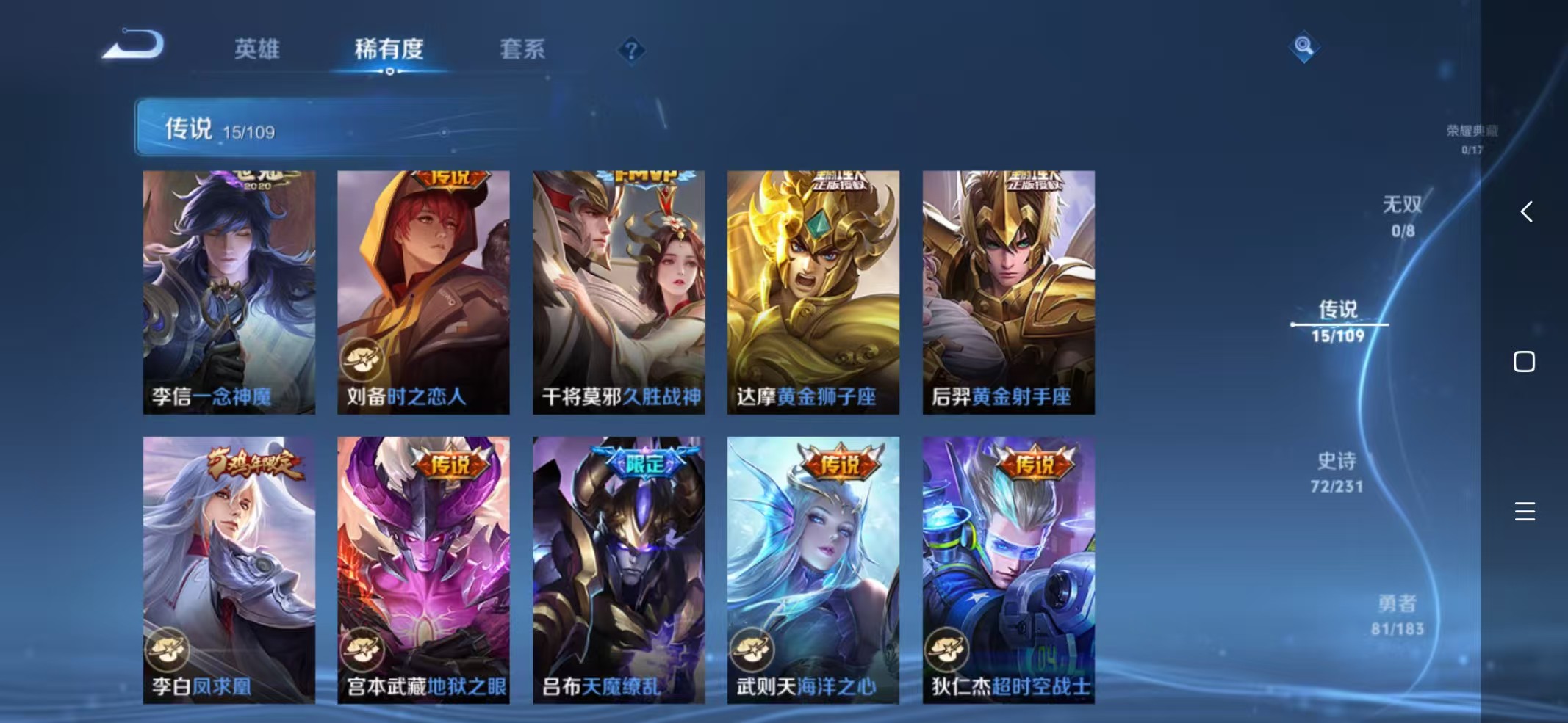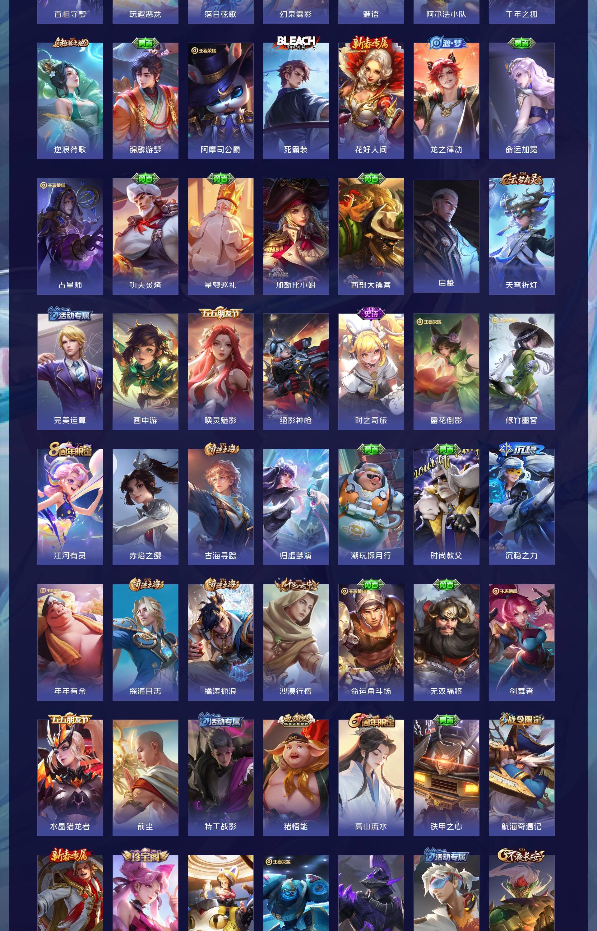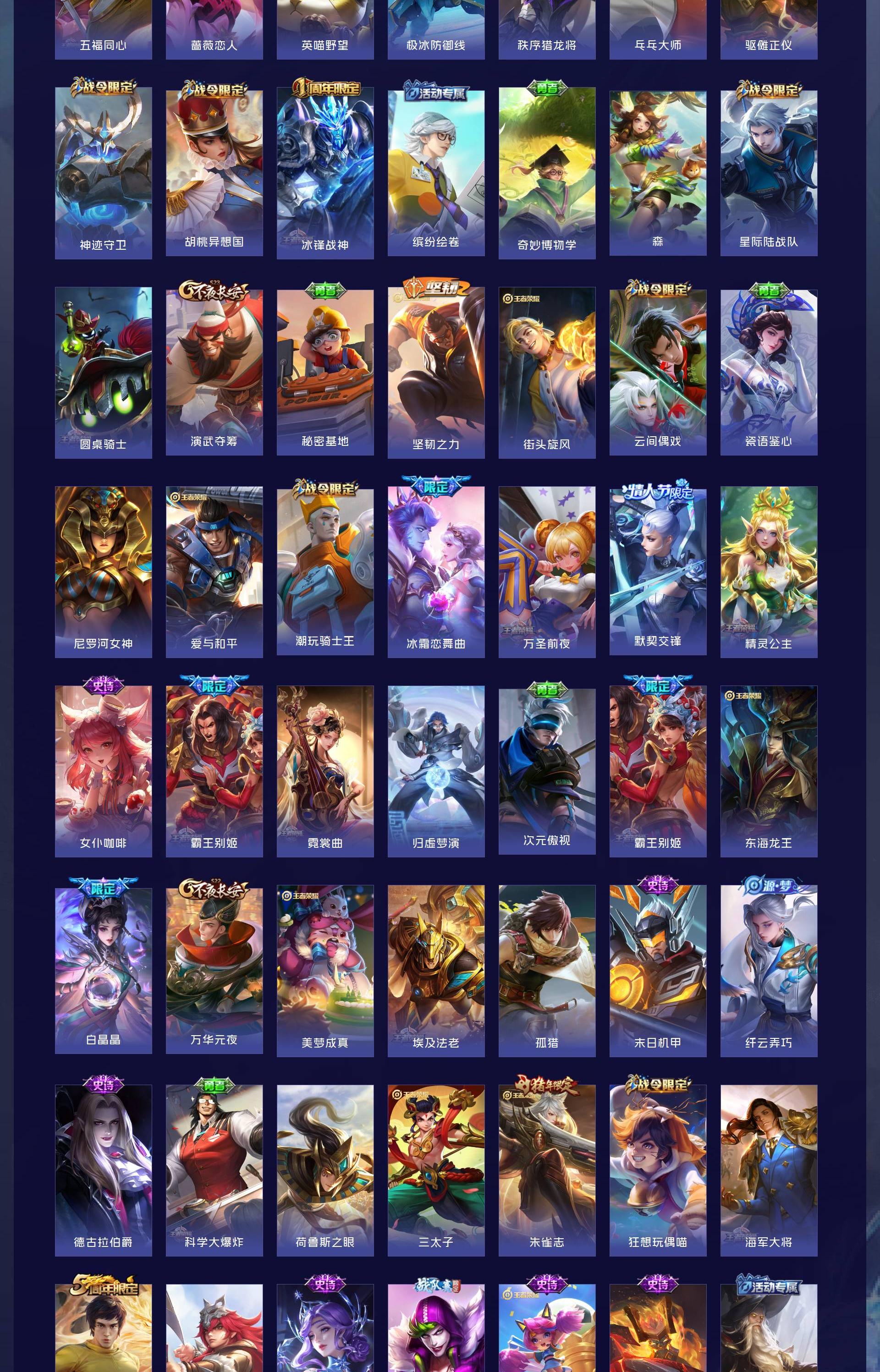 V8 皮肤250 英雄128 尊贵铂金 荣耀典藏1 传说15 其他皮肤241