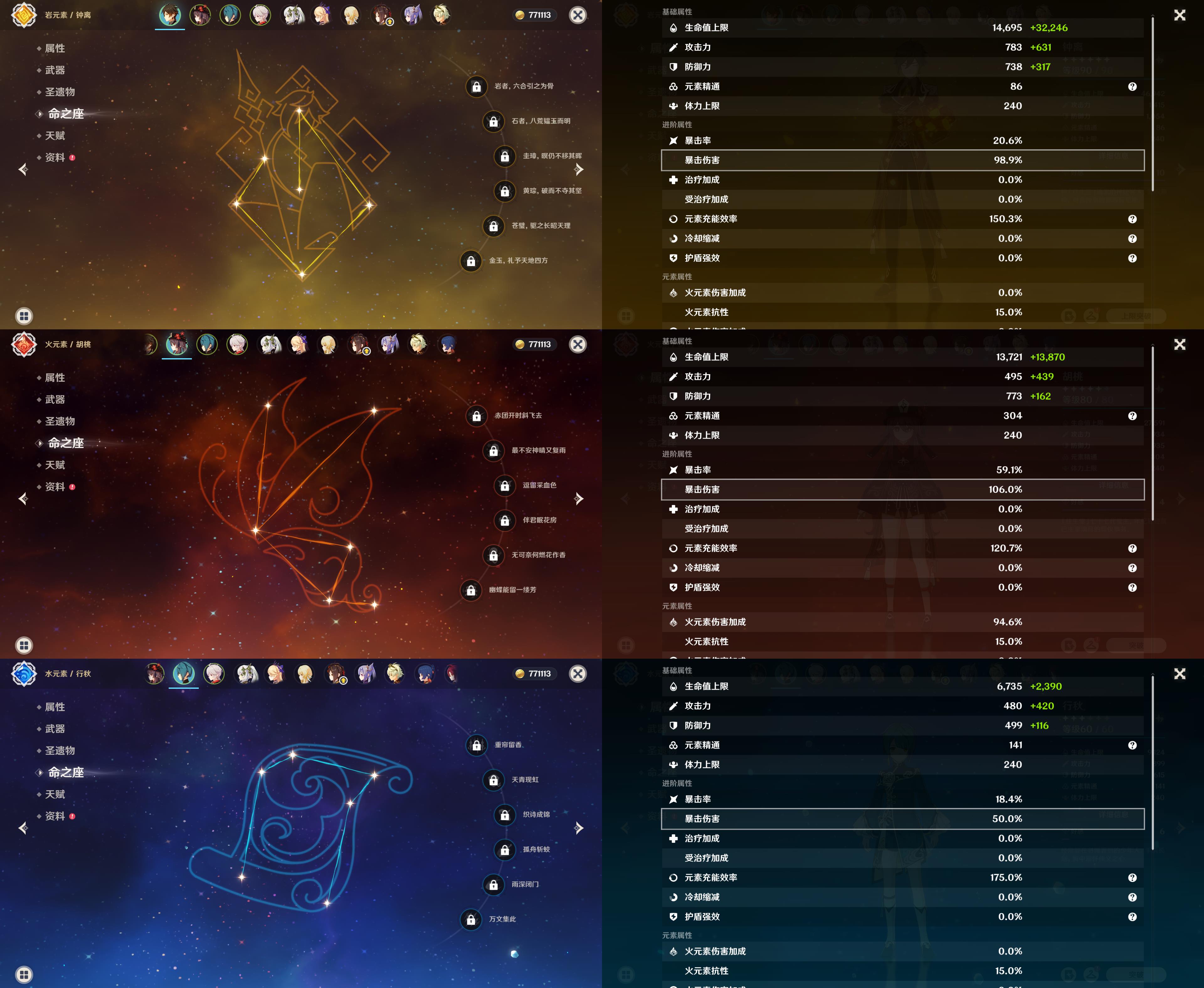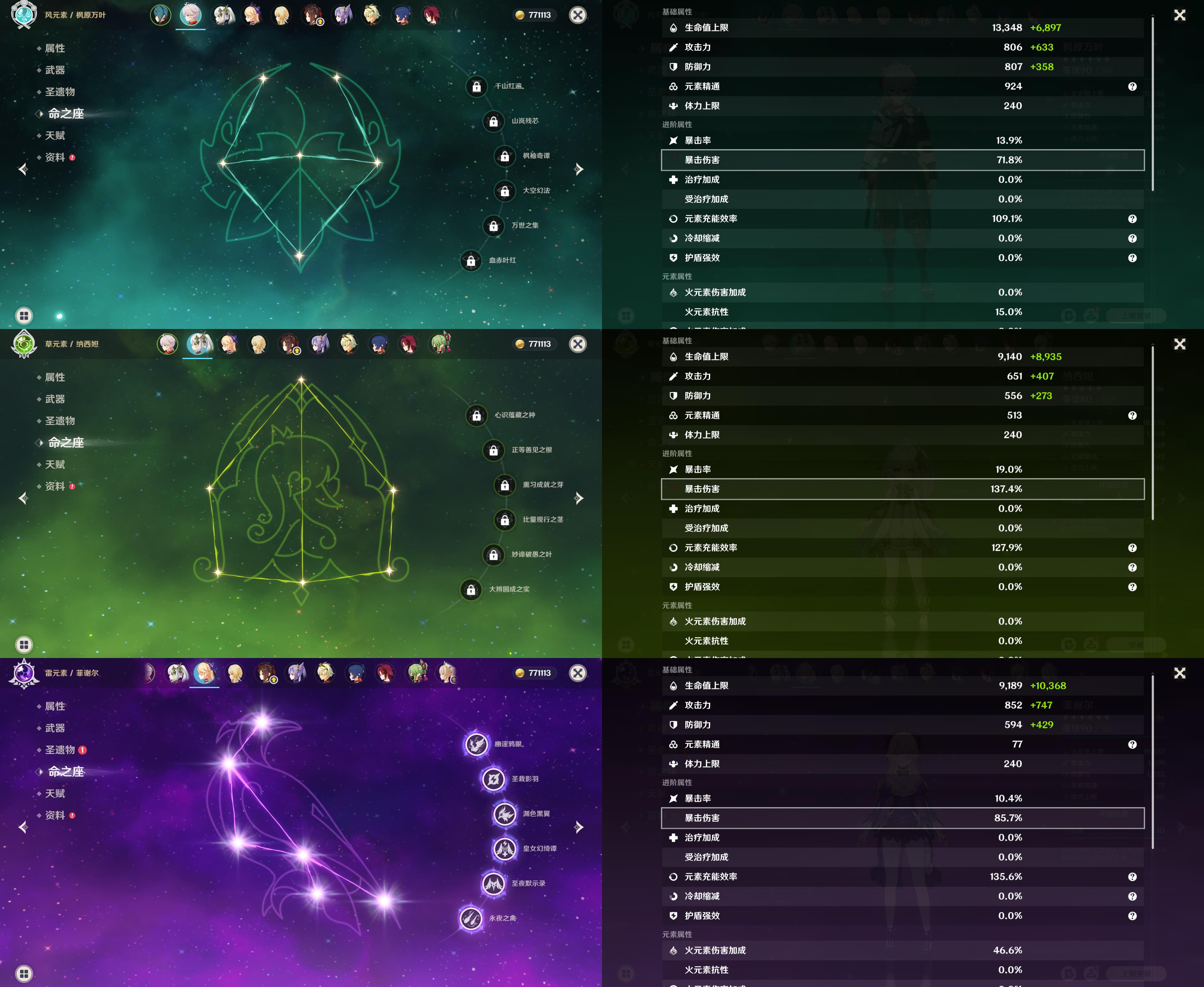 【YSX1631】55级/14黄/女主/8个五星角色/2个五星武器/钟离/胡桃/枫原万叶/纳西妲/千织/刻晴/3命莫娜/提纳里/精2阿莫斯之弓/薙草之稻光