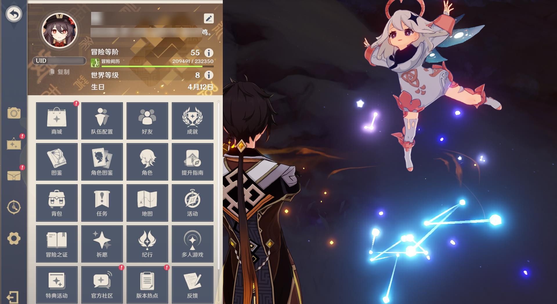 55级/14黄/女主/8个五星角色/2个五星武器/钟离/胡桃/枫原万叶/纳西妲/千织/刻晴/3命莫娜/提纳里/精2阿莫斯之弓/薙草之稻光