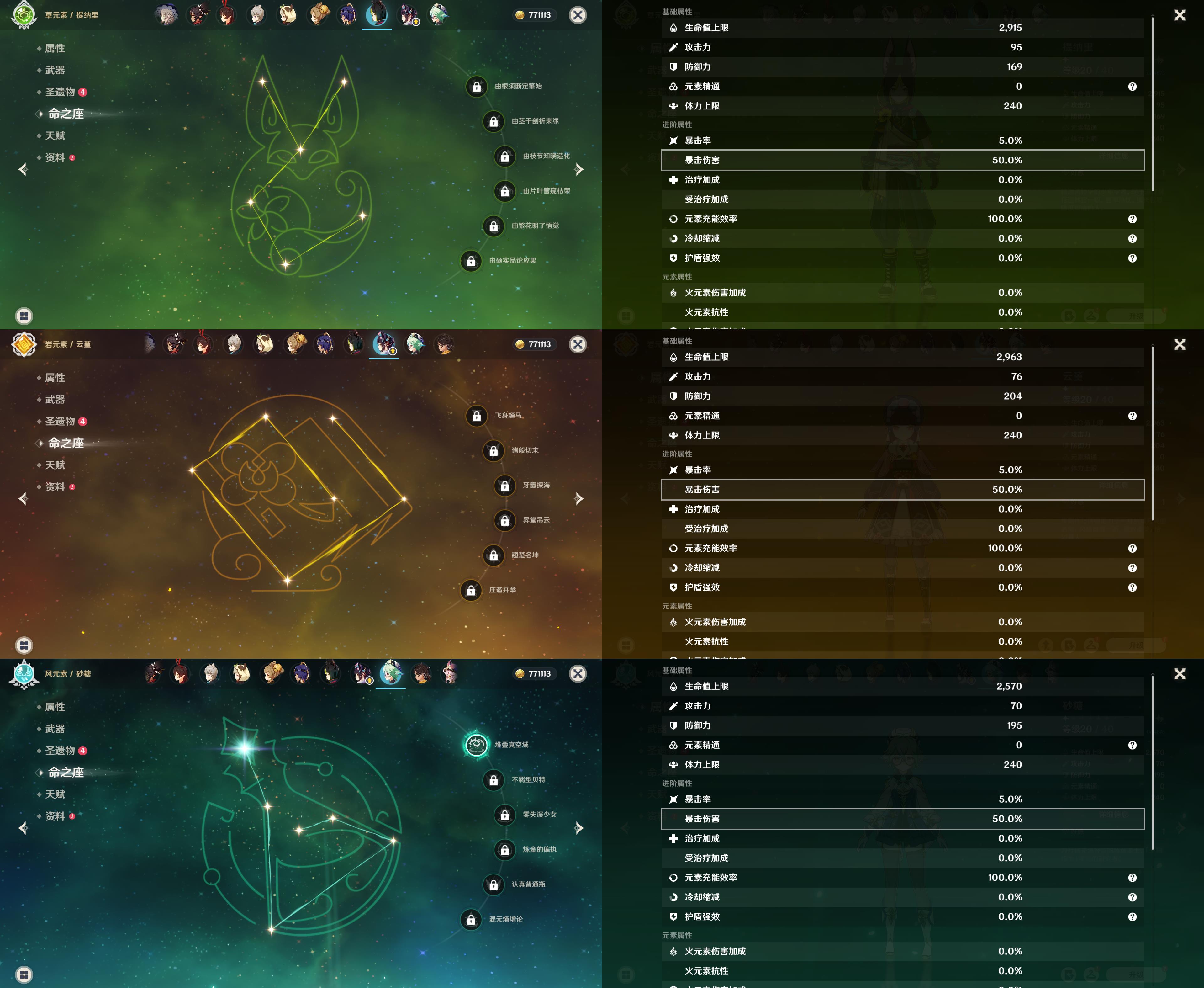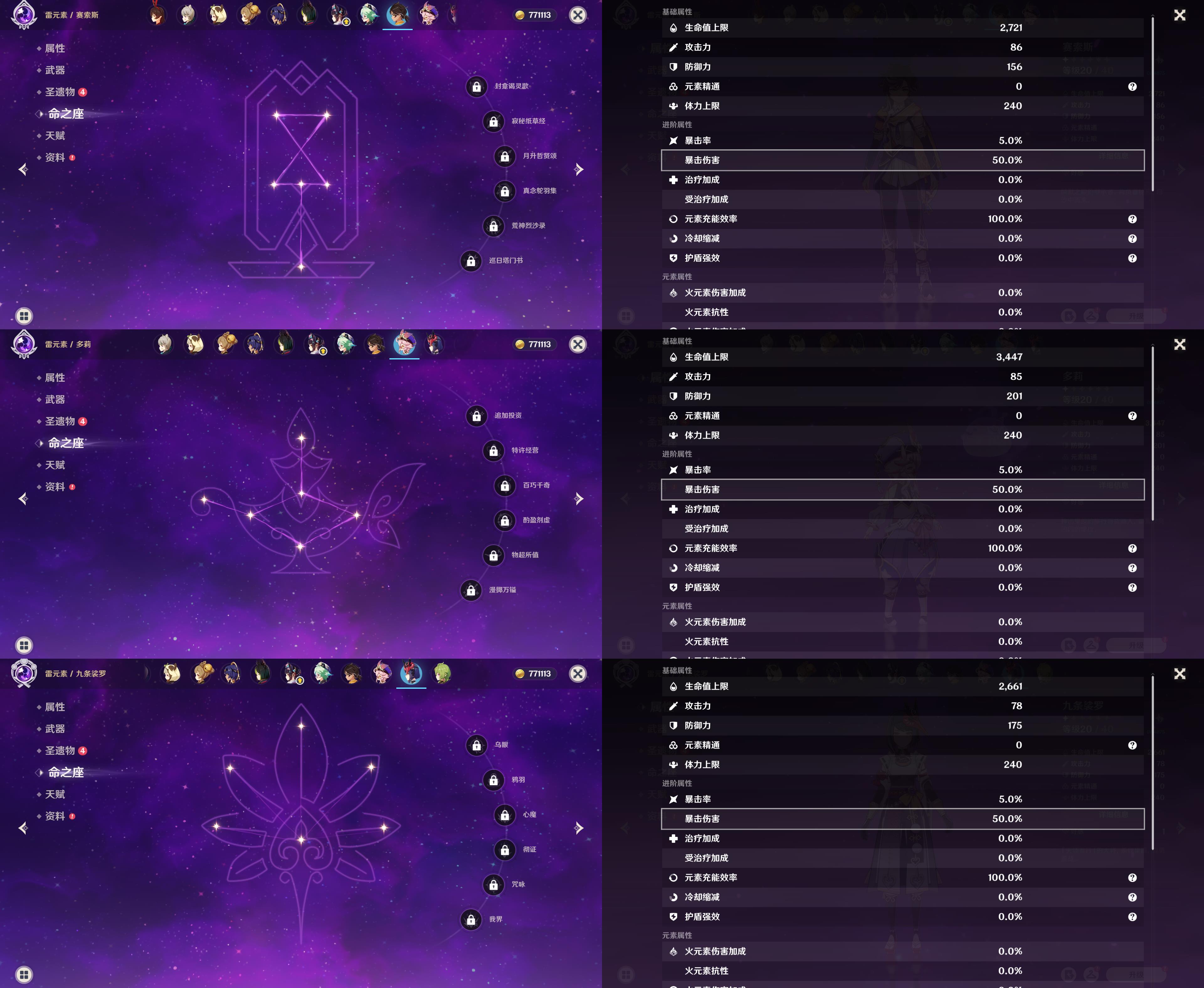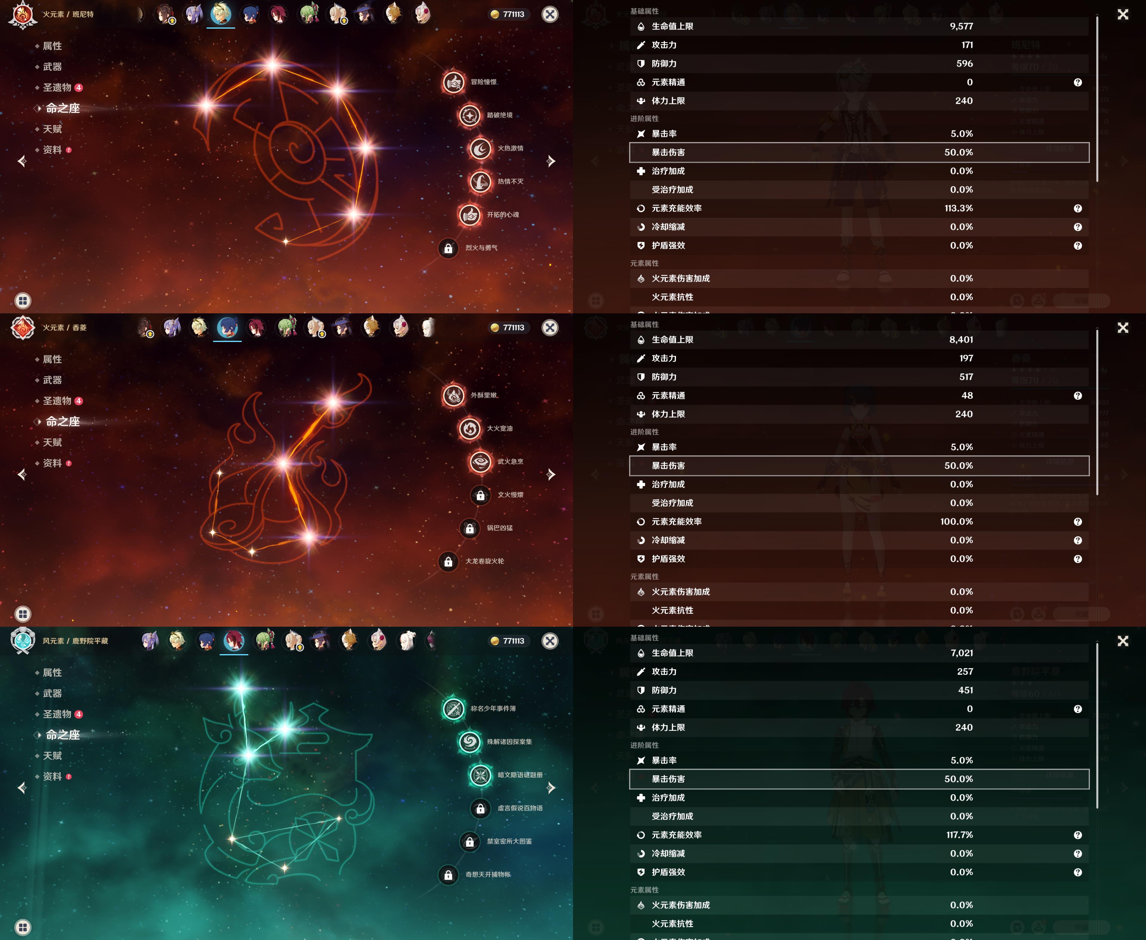 五星角色: