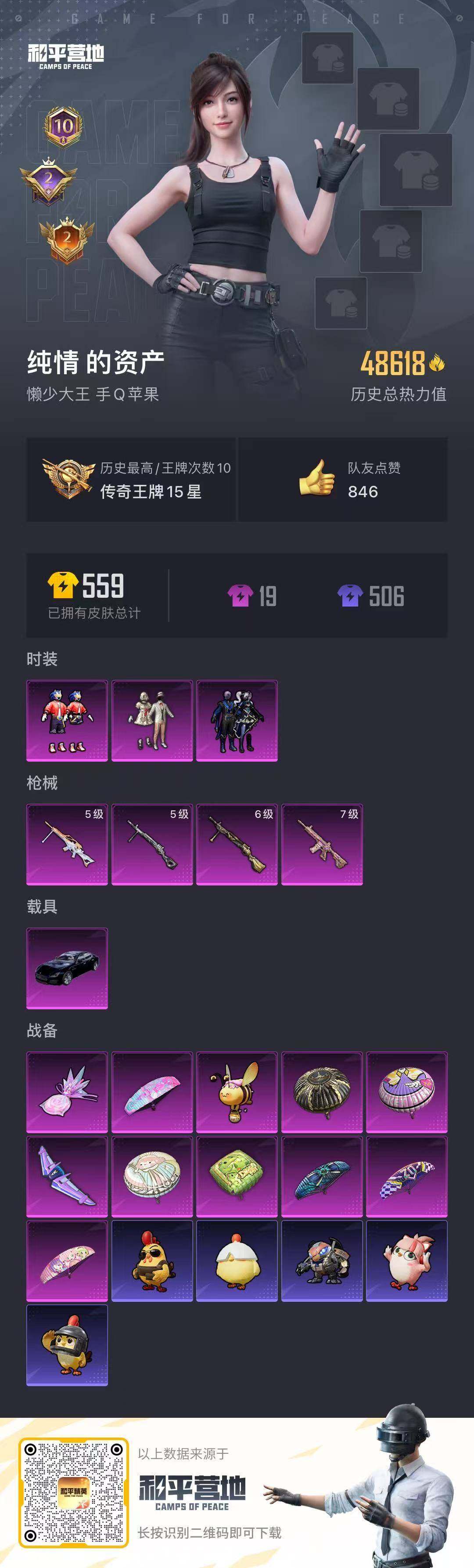 苹果 手Q-3粉装-4特效枪-1载具-3粉色飞行器-48618热力值-10王牌印记-124套装-143枪皮