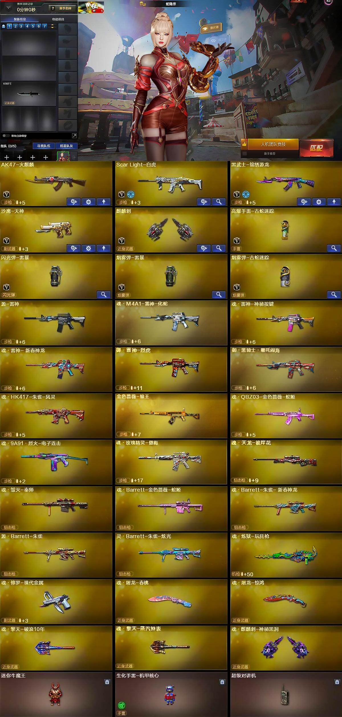【英雄级武器】:AK47-火麒麟,Scar Light-白虎,黑武士-锦绣游龙,沙鹰-