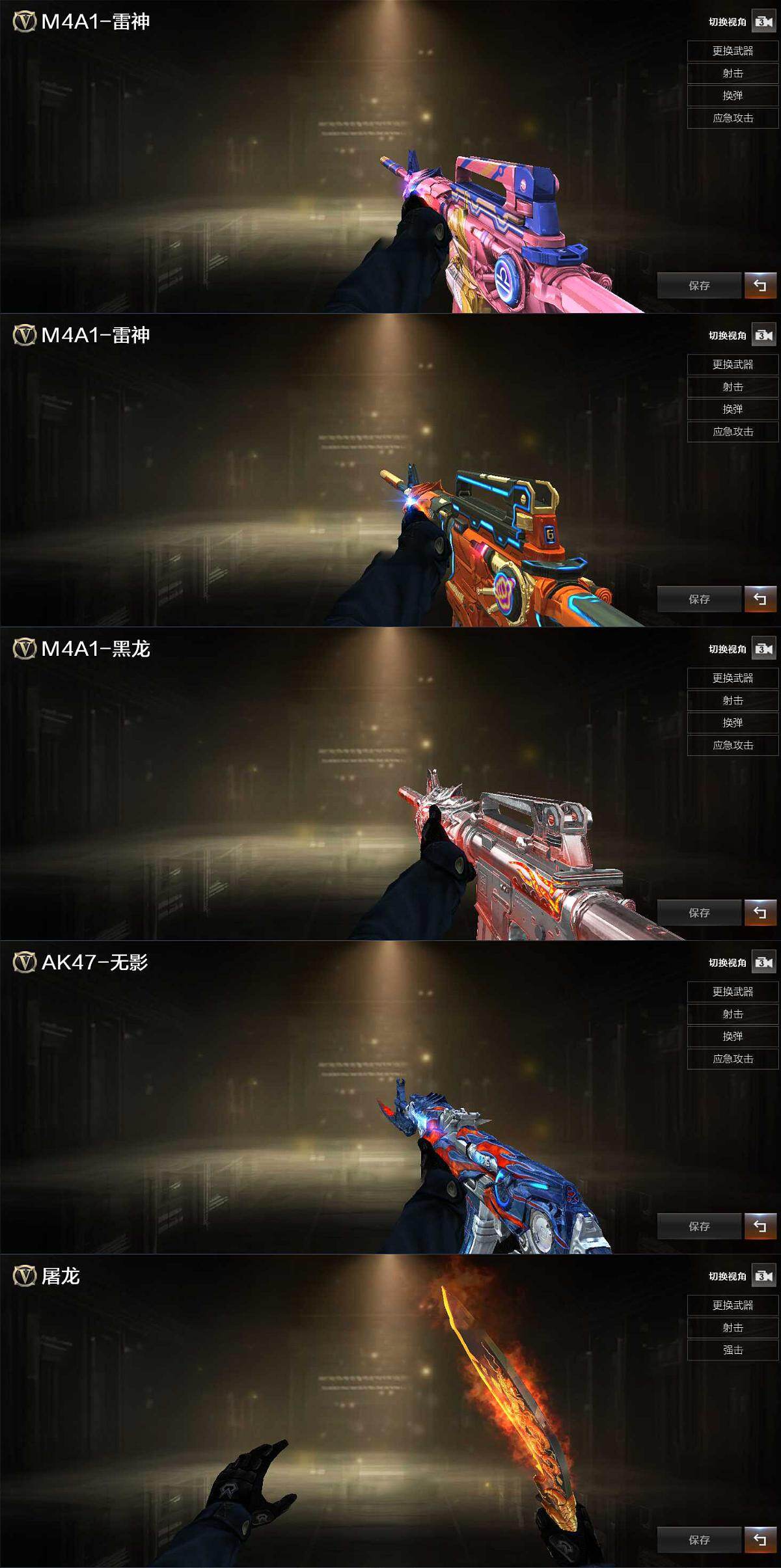 【热门武器】:QBZ03-金色蔷薇,Scar Light-白虎,青龙之魄,M4A1-黑骑士,加特林-炼狱*2,沙鹰-修罗,炽芒蝶刃