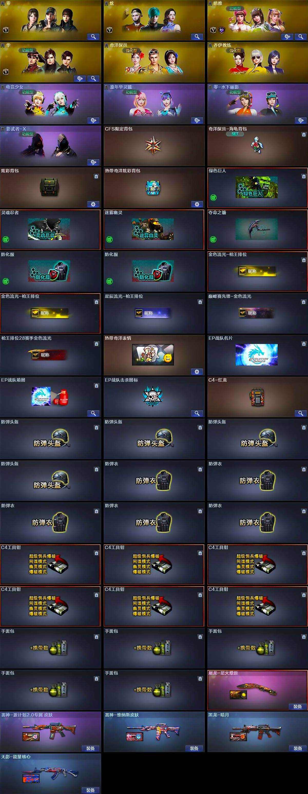 【皮肤】:雷神-维纳斯皮肤,雷神-源计划2.0专属 皮肤,黑龙-暗月,无影-能量核心,屠龙-星火燎原