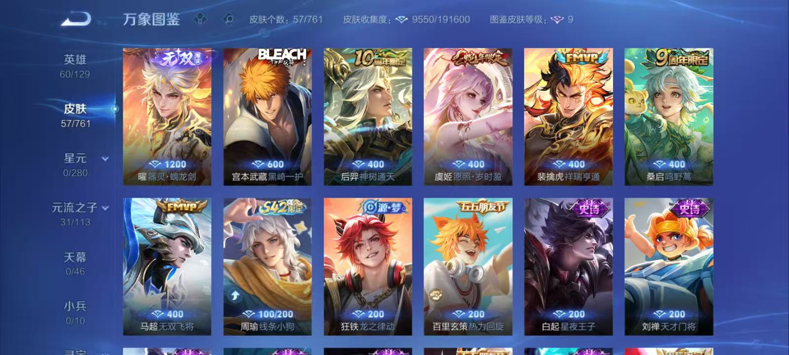 安卓微信区-曜无双-器灵螭龙剑自玩冲榜小号-曜历史战力九千-1珍品宫本武藏黑崎一护-后裔神树通天,桑启鸣野蒿,虞姬愿照岁时盈,裴擒虎祥瑞亨通,马超无双飞将