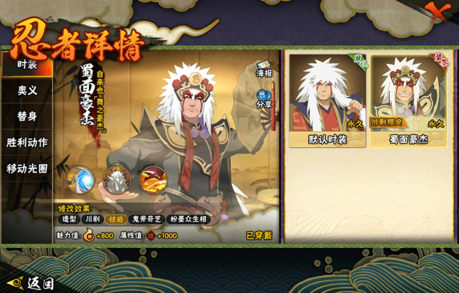 【S级忍者】:宇智波鼬「须佐能乎」(3星),自来也「舞之豪
