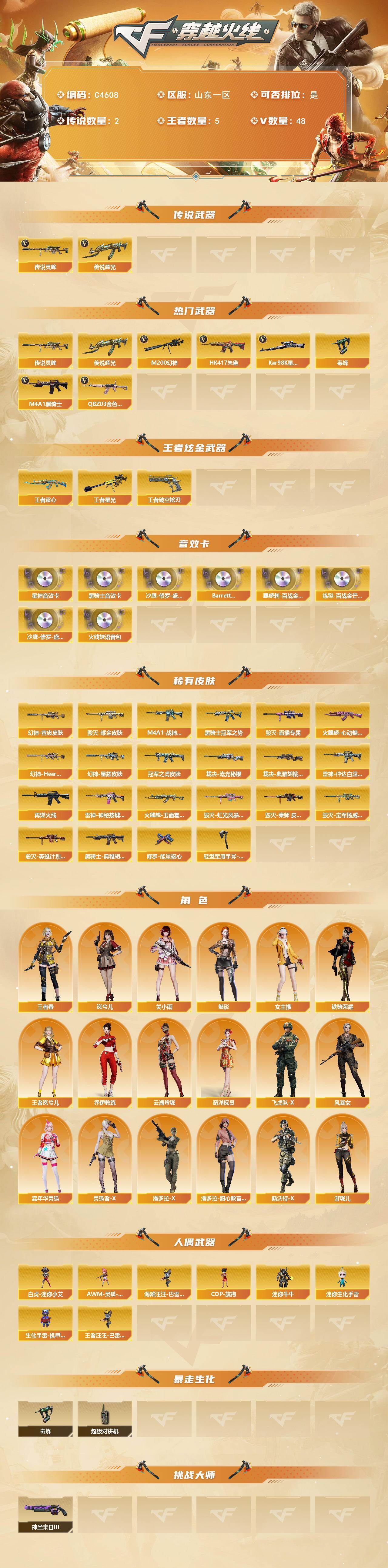 【C4608】山东一区-47V-5王者武器数-0炫金武器数