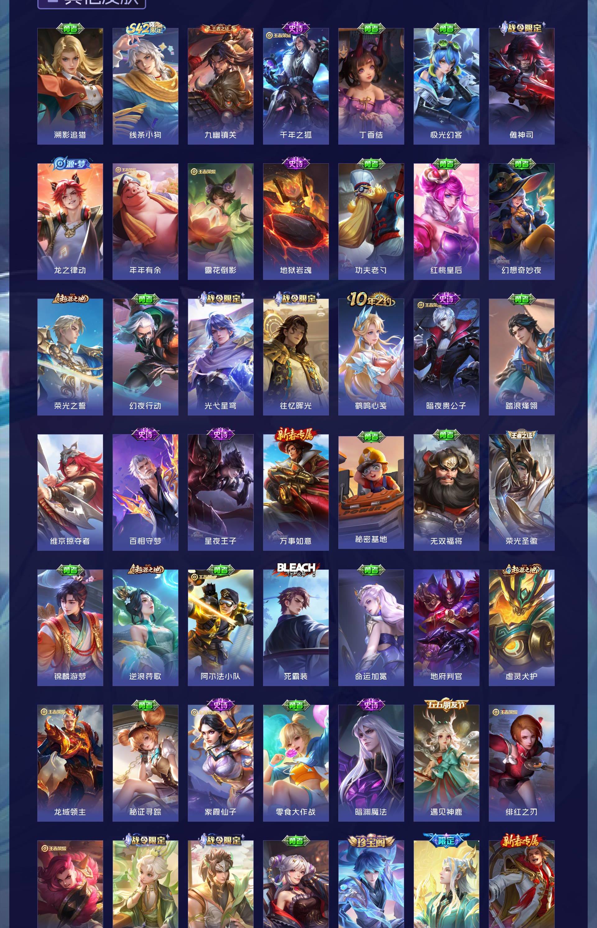 V7 皮肤242 英雄127 至尊星耀 无双皮肤3 珍品传说3 传说14 其他皮肤228