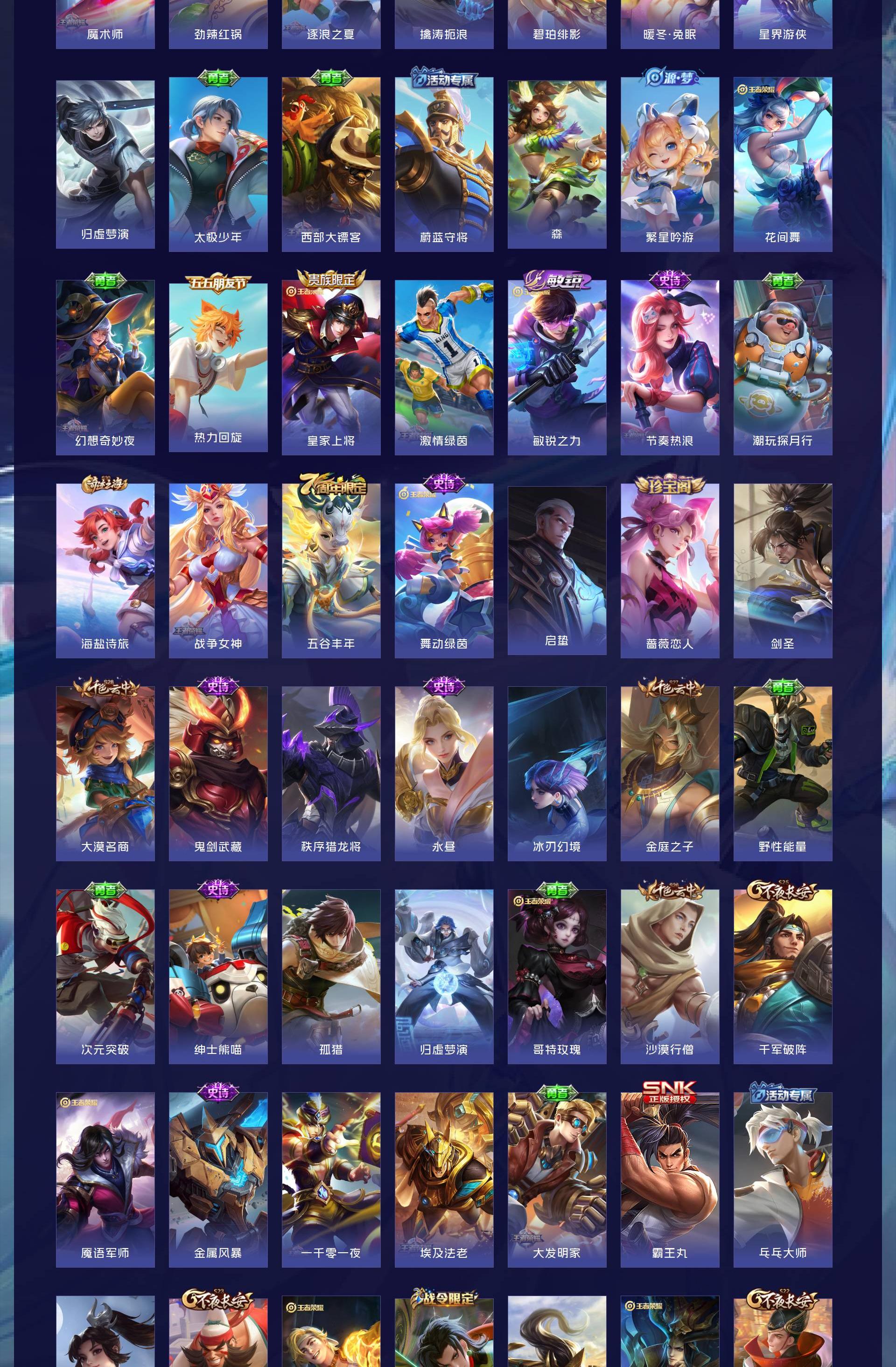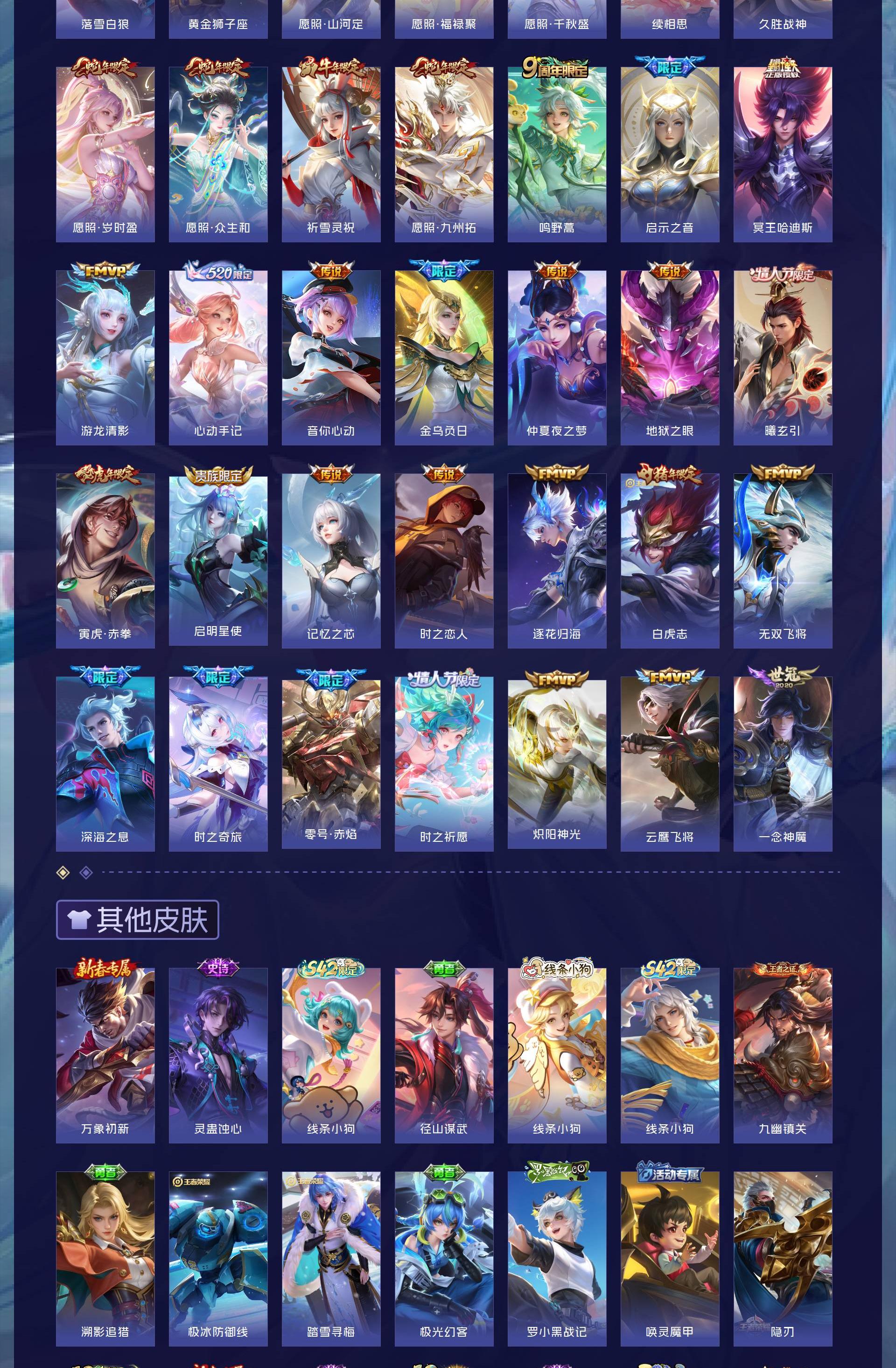 V9 皮肤375 英雄127 至尊星耀 荣耀典藏4 无双皮肤4 珍品传说2 传说35 其他皮肤334