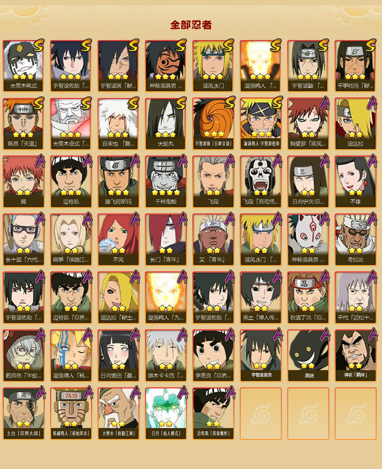 【HYN5165】V11/战力643W/S忍14/A忍39/通灵兽17/4星干柿鬼鲛/2星大野木「侠隐江湖」/侠隐江湖-纲手/疾风传-我爱罗/死司凭血-飞段/忍者之路-神秘面具男/大筒木桃式/六代目水影-长十郎/四代目土影-黑土/秽土转生-迪达拉/半蛇斗篷-药师兜/飞段/2星神农「羁绊」/万花筒写轮眼-宇智波佐助/2星黑绝/迪达拉/九尾查克拉-漩涡鸣人/不缘/忍界大战-日向宁次/永恒万花筒-宇智波佐助/大筒木金式/青年-长门/蝎/天道-佩恩/3星漩涡鸣人·宇智波佐助/波风水门/九喇嘛连结-漩涡鸣